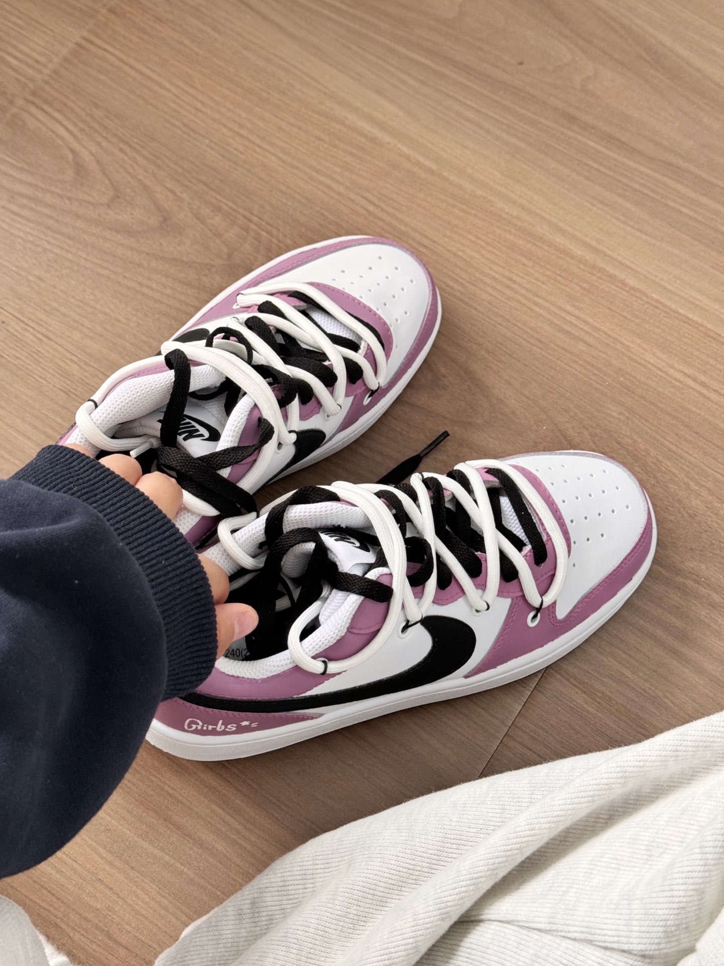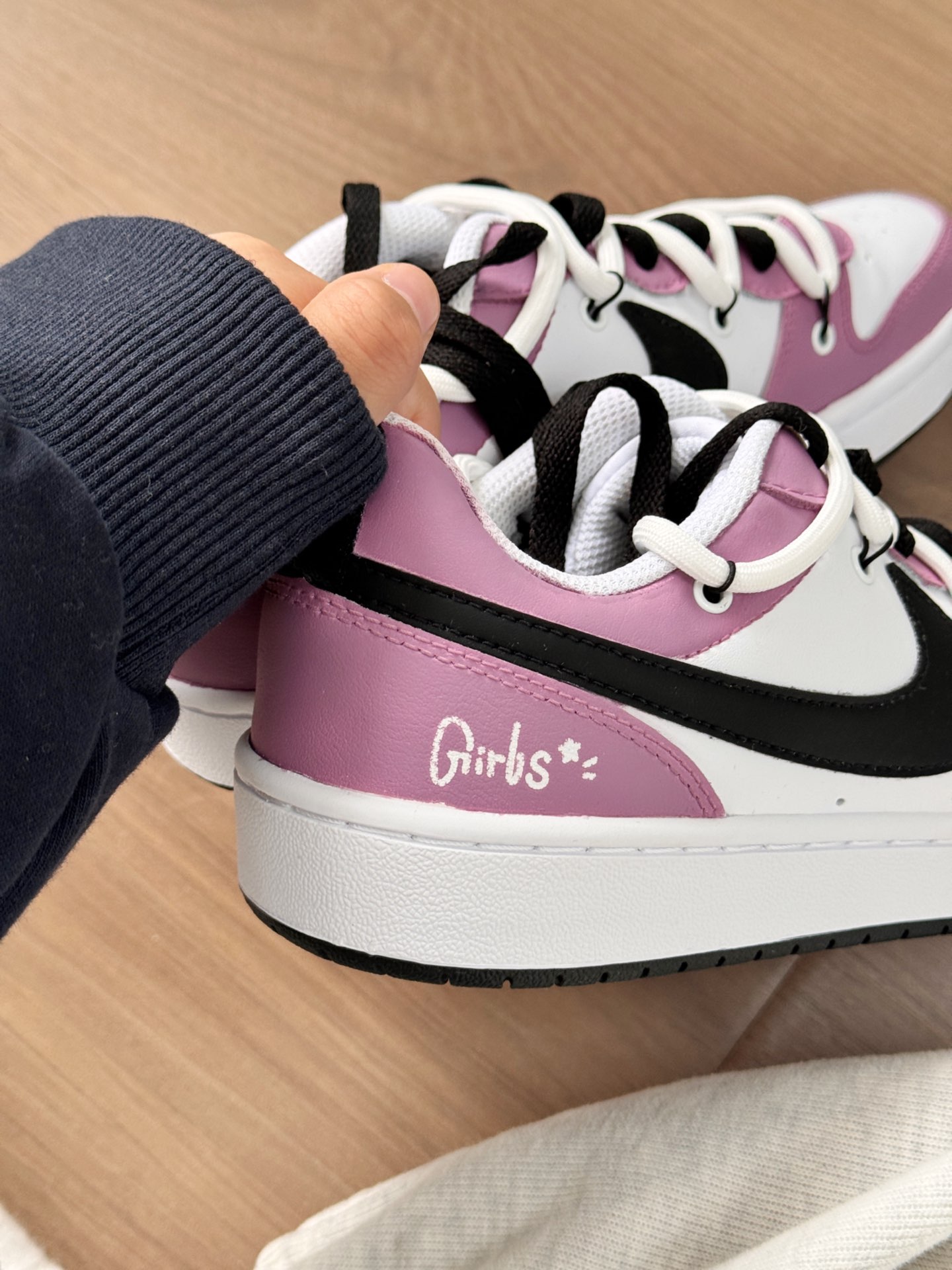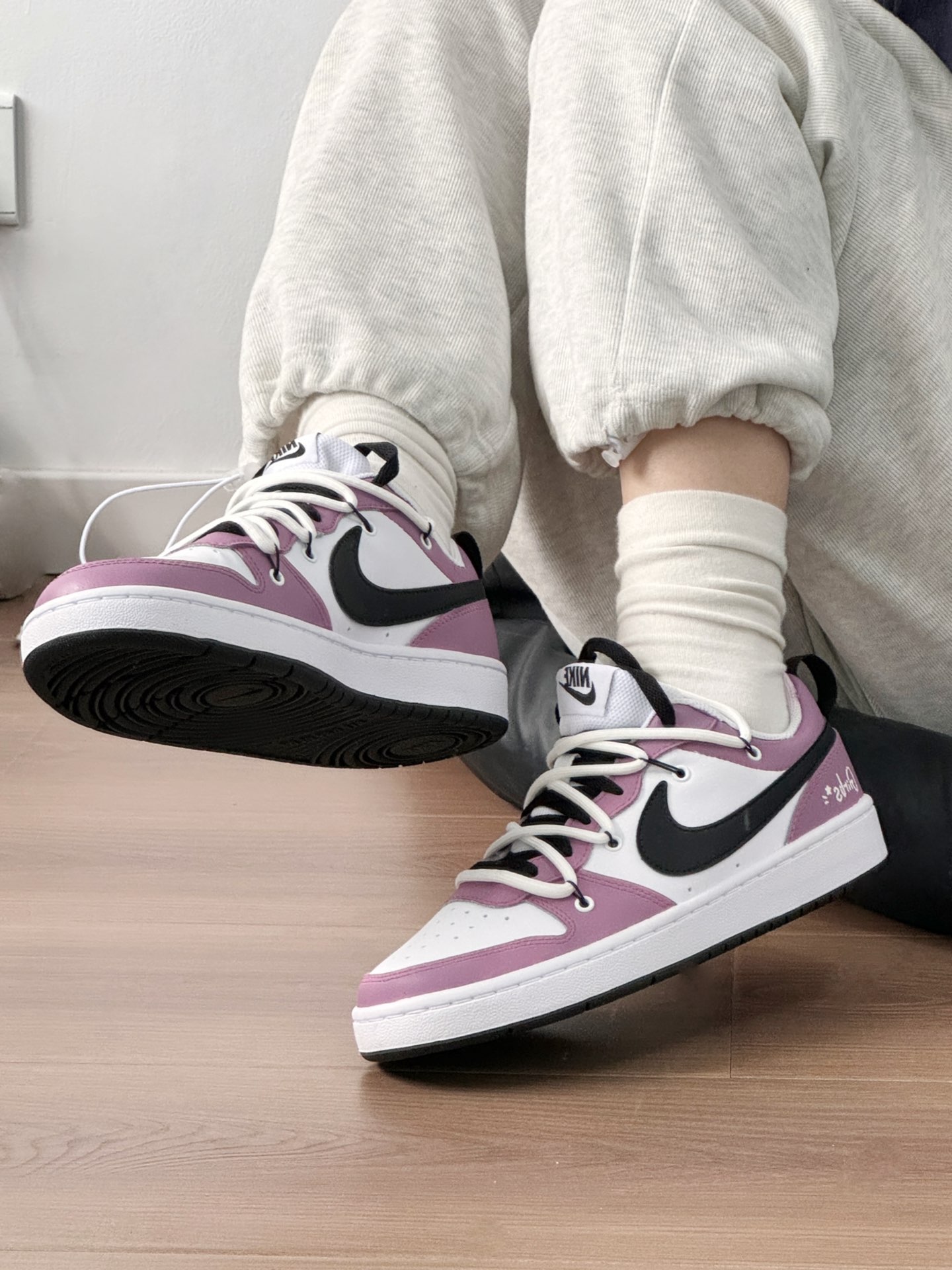 芋泥紫尊的很心动 色系是比较温和的色系 上脚很好看,搭配浅色系裤子对比感会强一些 很适合上学的宝子们 因为这双鞋校园感十足呀 也很适合做学校穿哟! 反正我是越看越喜欢,紫色控表示真的好喜欢这双鞋!!