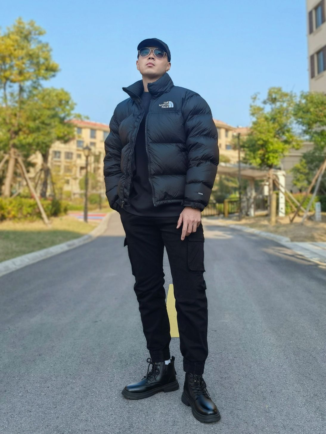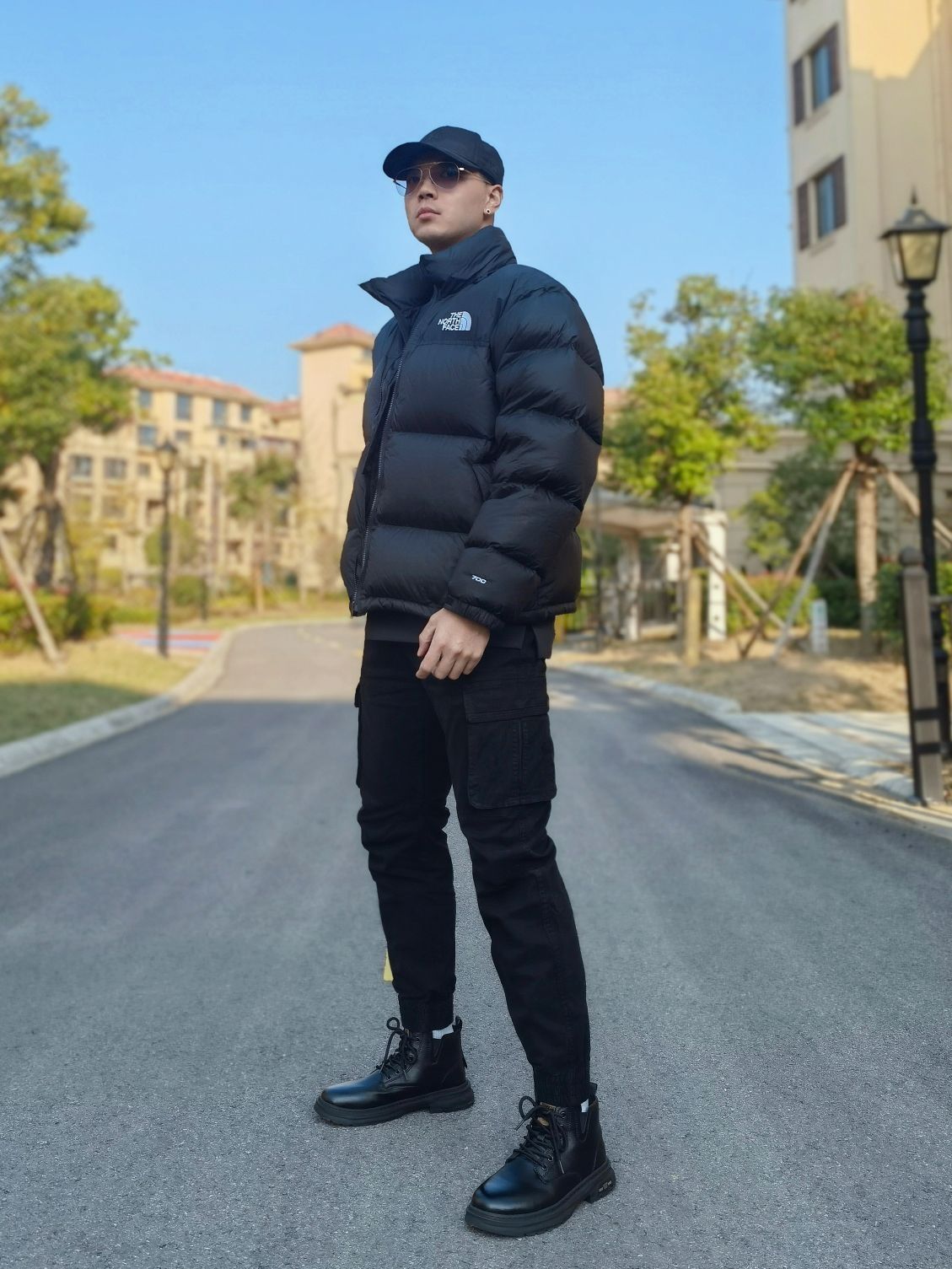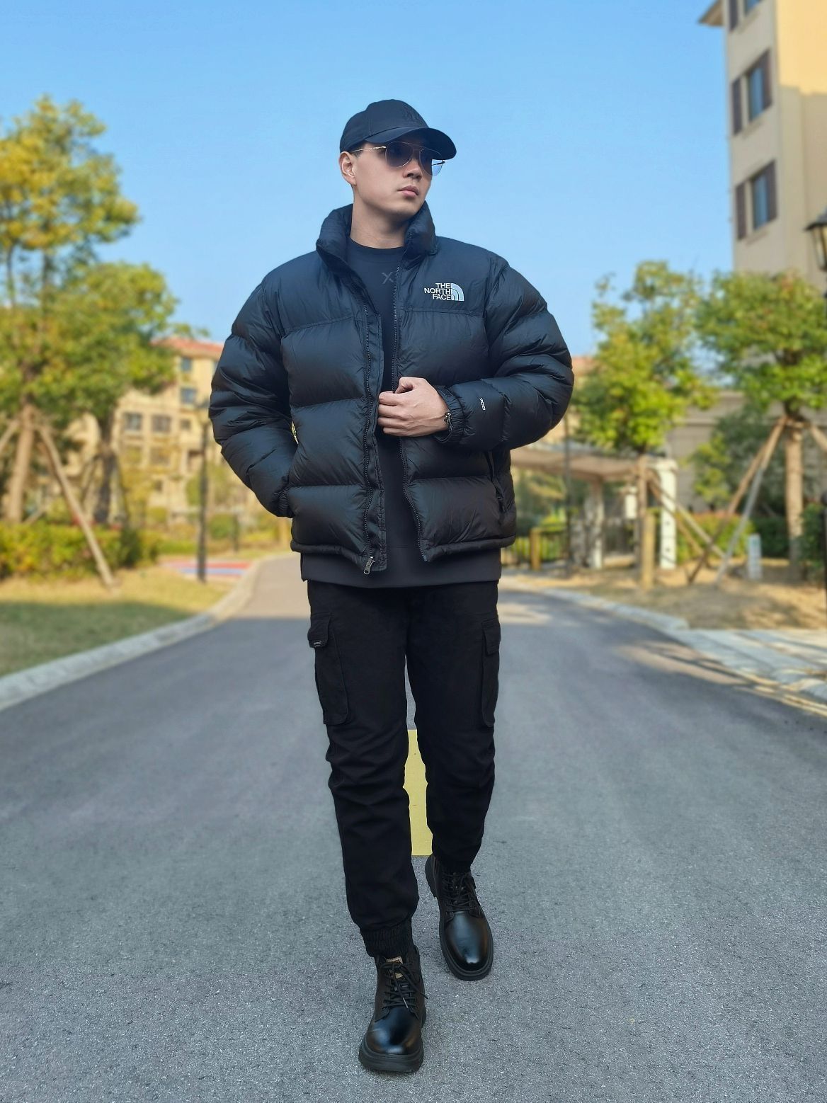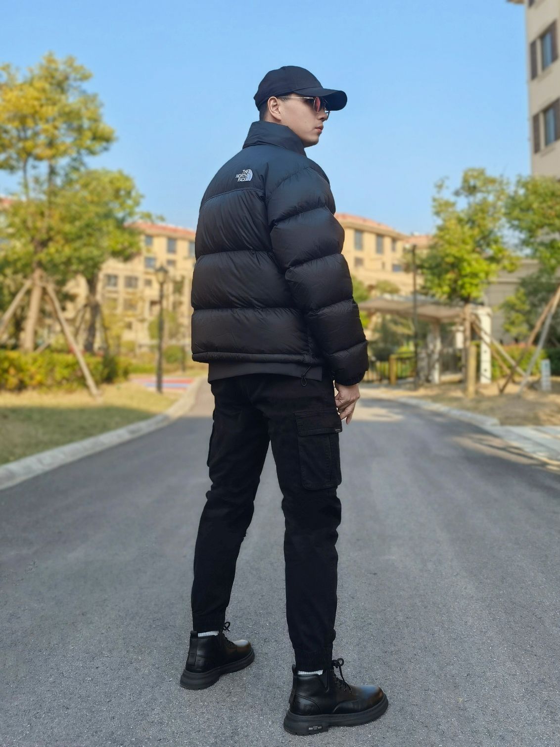 hello 大家好,这里是撒旦锅锅 💗179cm/80kg 🌞今日穿搭偏潮酷休闲风格 搭配类型:羽绒服+工装裤+马丁靴 今天上身搭配黑色美版北面1996羽绒服,下身搭配多口袋束脚工装裤,显腿长,最后搭配黑色马丁靴,整体做一个黑色系呼应,整体潮酷休闲风十足,不论是上学还是通勤工作都可以穿搭,十分推荐💯