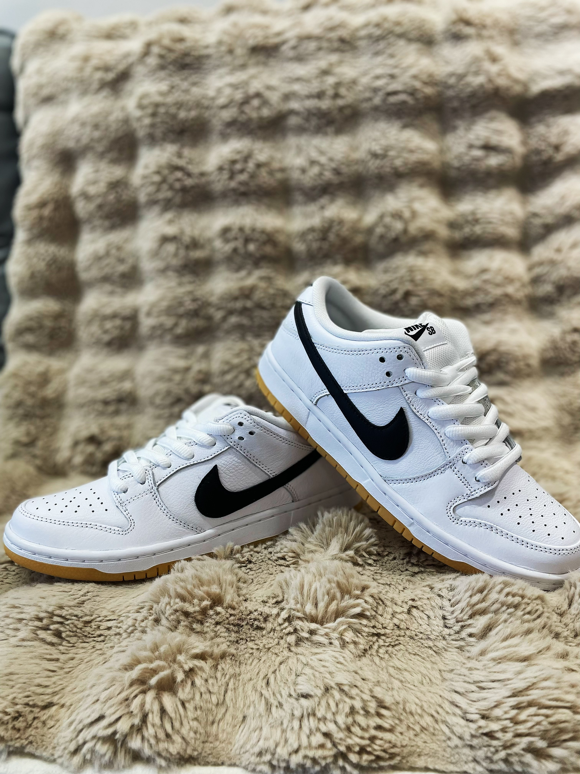 复刻的白生胶,把价格给打下来。Dunk系列的高人气,白色的配色系,真的是百搭好看,杠杠的。 💖SB系列,相较于普款,更高品质。加厚的脚踝和鞋舌。合成革材质的鞋面,防滑大纹路橡胶底。白色主色,黑色对勾,颜值还是很不错的。 💞鞋的整体包裹性非常突出,质感非常好。不错的脚感,百搭的款式配色,超级高的颜值,相对较低的价位,使得这款鞋具有非常好的性价比。
