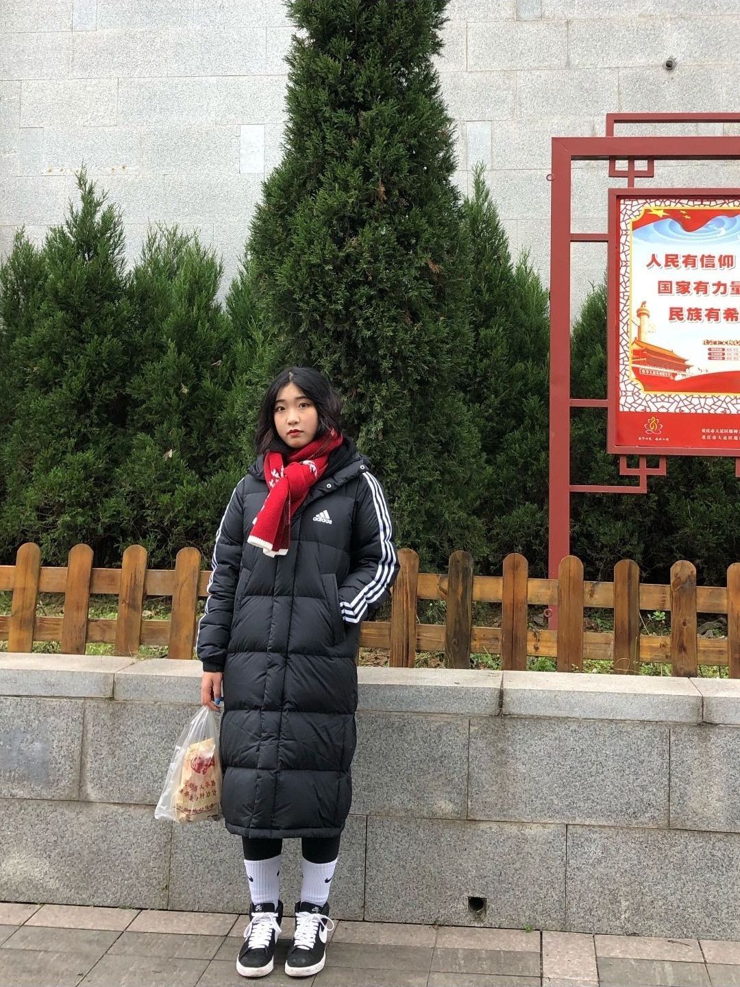 🍑:今日份的ootd来了 阿迪羽绒服来了 身高168 体重116 试穿m码