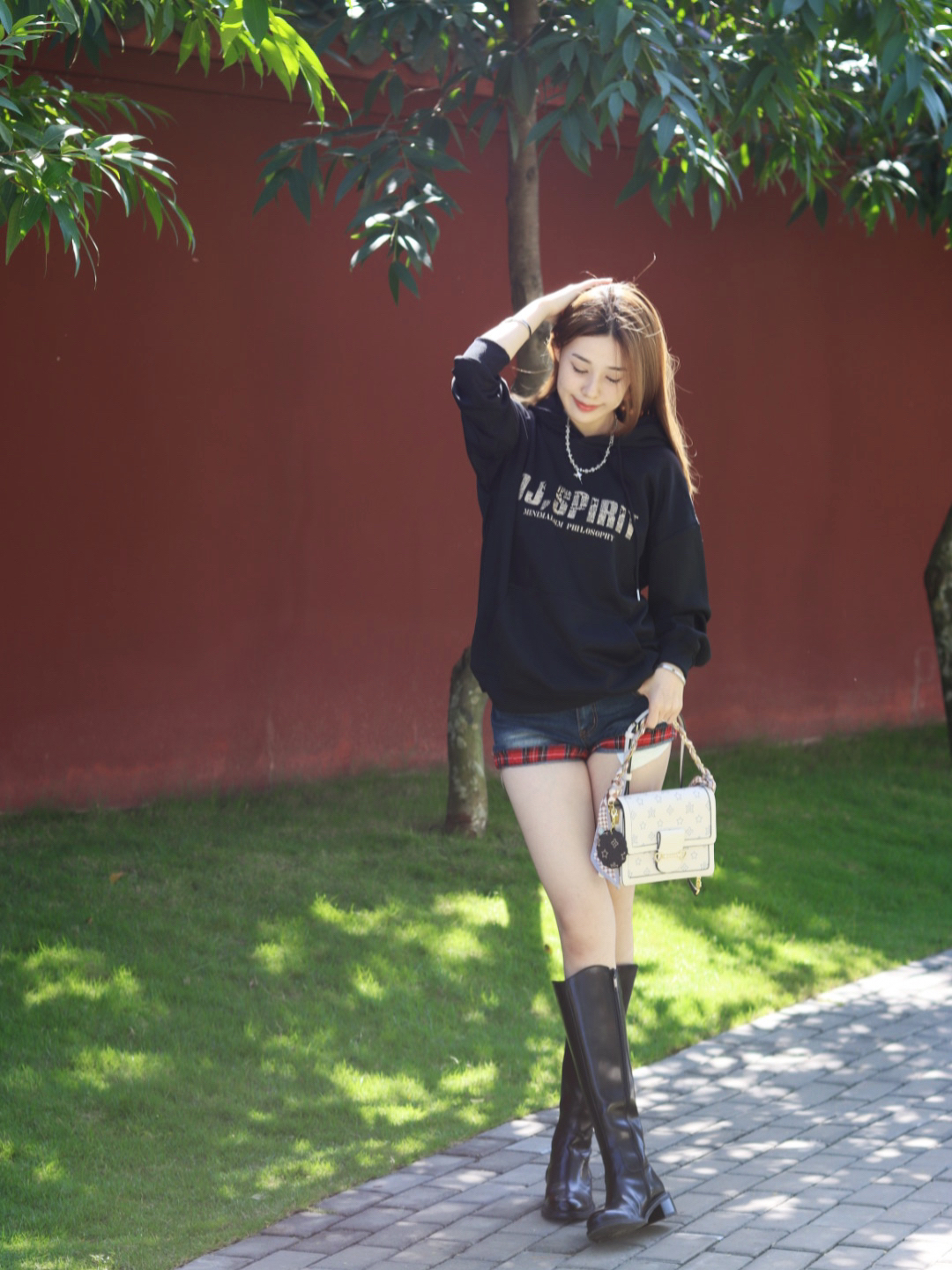 最近的天气好适合city walk 卫衣加长靴,出门认真感受秋天 黑色卫衣真的超级显瘦又好看 Oversize的版型 不挑身材 可以闭眼放心冲 搭配了偏酷一点的骑士长靴 入秋穿搭轻松拿捏住了 包包 JUST STAR欧时纳 靴子 思加图/staccato 卫衣@DJSPIRIT