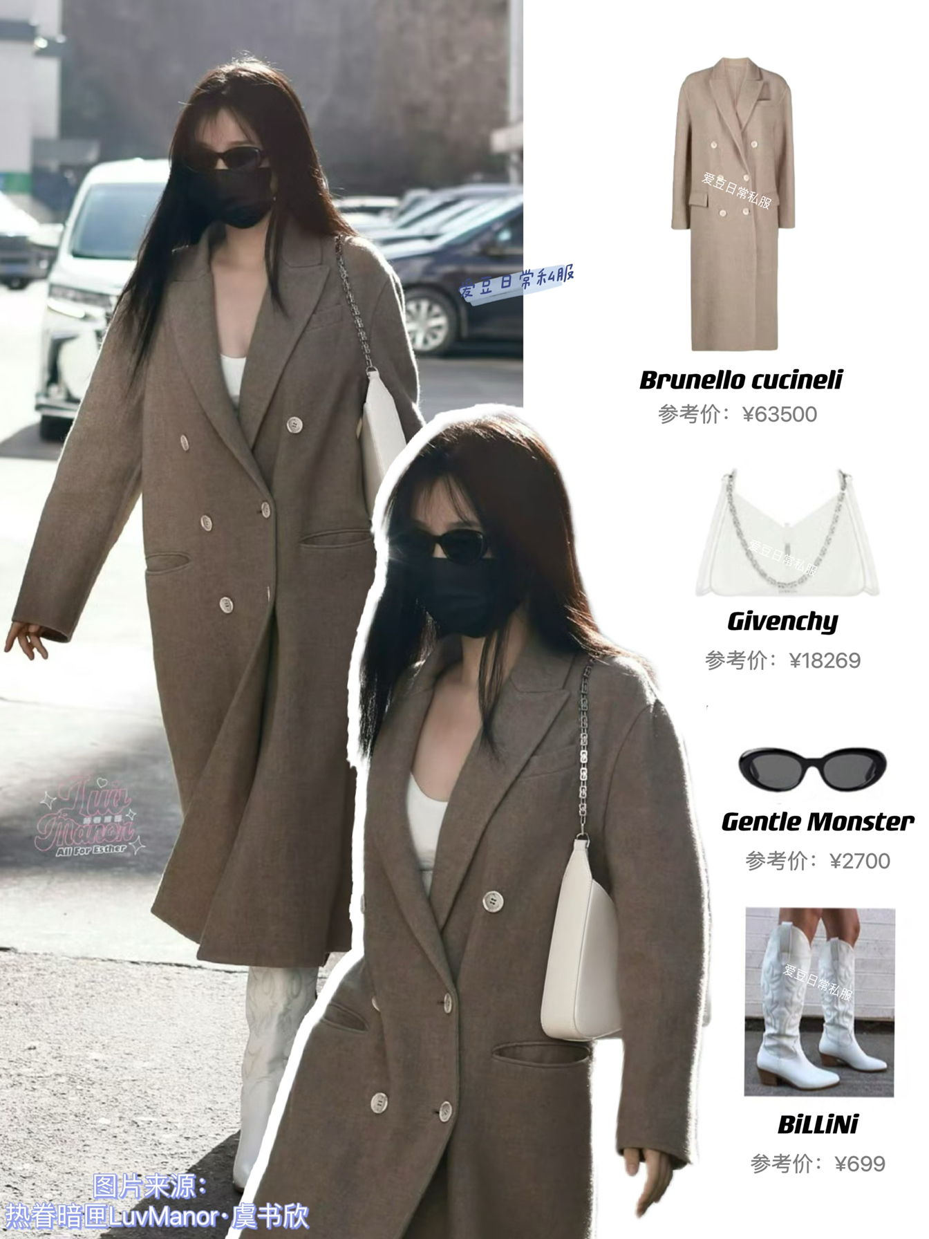 虞书欣更新了11月19日上班穿搭,千金羊绒大衣下搭白色高筒靴、温柔又气质、尊嘟太喜欢任何风格都信手拈来的宝宝了! 外套: Brunello Cucinelli 靴子:BiLLiNi 包包: Givenchy 墨镜: GENTLE MONSTER 图片来源:热眷暗匣LuvManor·虞书欣