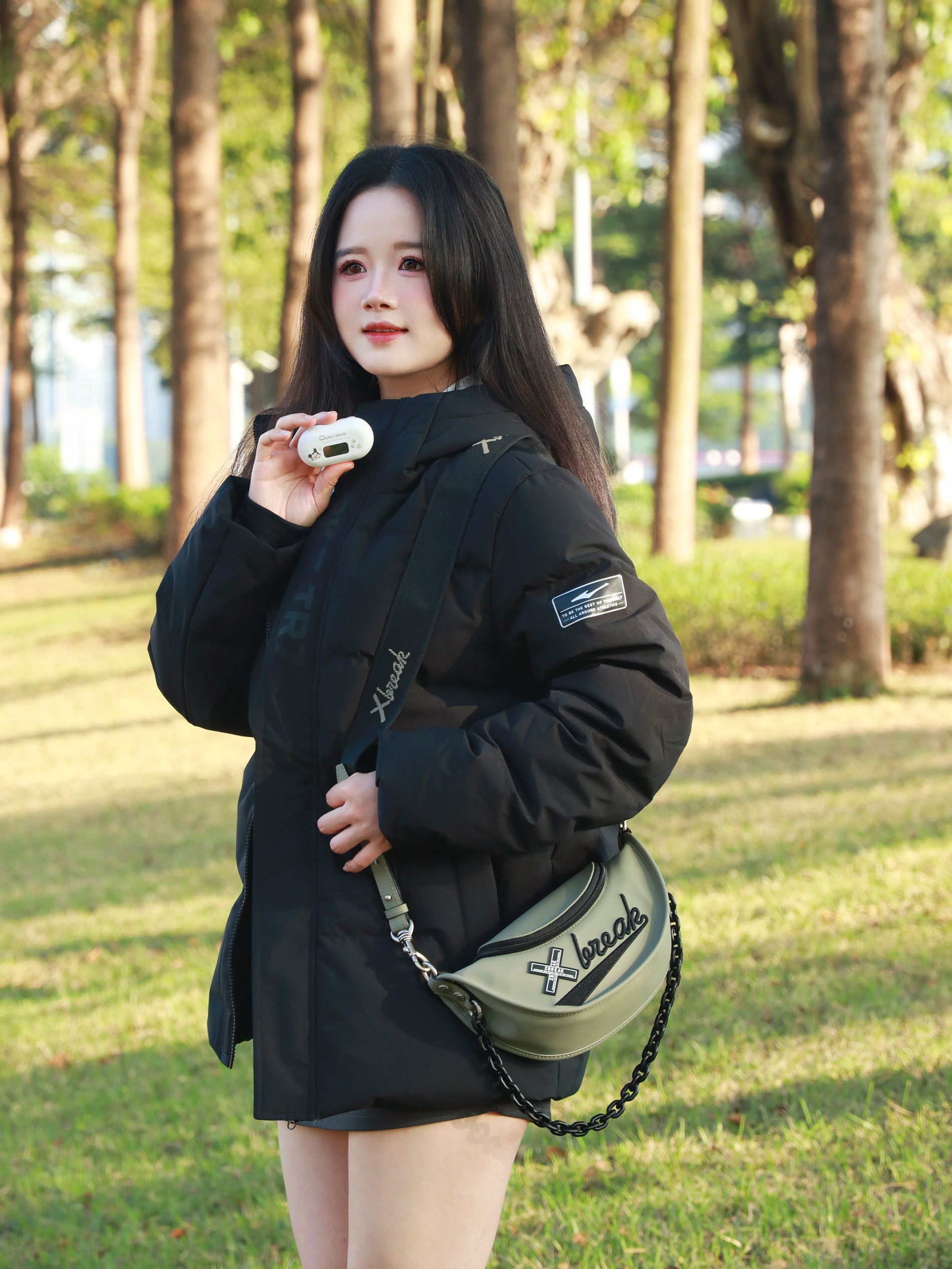 秋冬季这样穿 !! 街头感十足的酷飒穿搭 ! 羽绒服+裙子+球鞋 出门我喜欢戴上耳机🎧 Disney迪士尼 蓝牙耳机 ENC降噪与超长续航更是方便日常携带 !! 鸿星尔克 羽绒外套给予冬天提供舒适的保护 !! 三防系列有效抵御严寒风雨 !! 保暖加厚连帽设计给足户外的勇气!! 搭配上xbreak单肩斜挎包包 !! 一整个街头感十足✌️