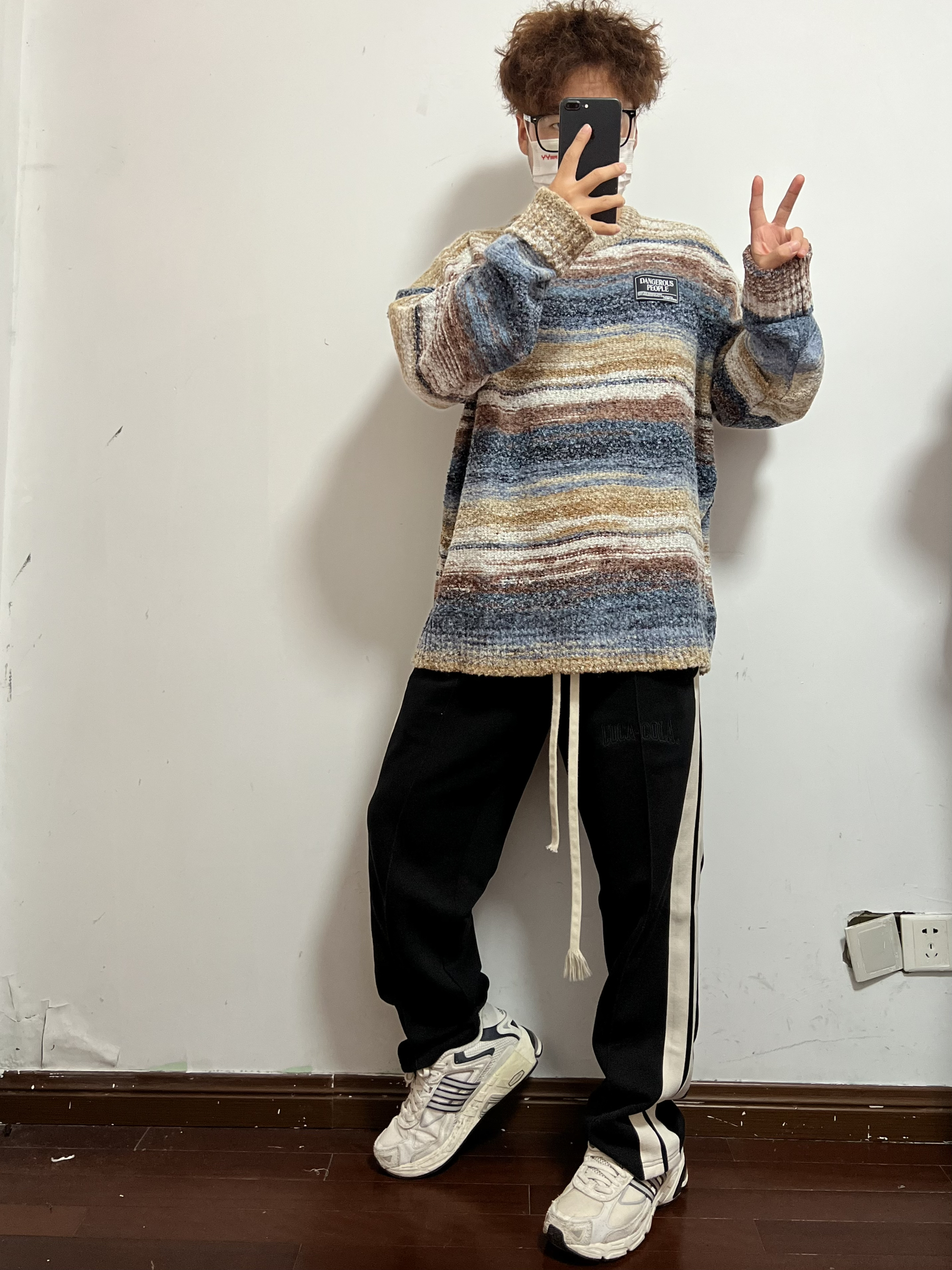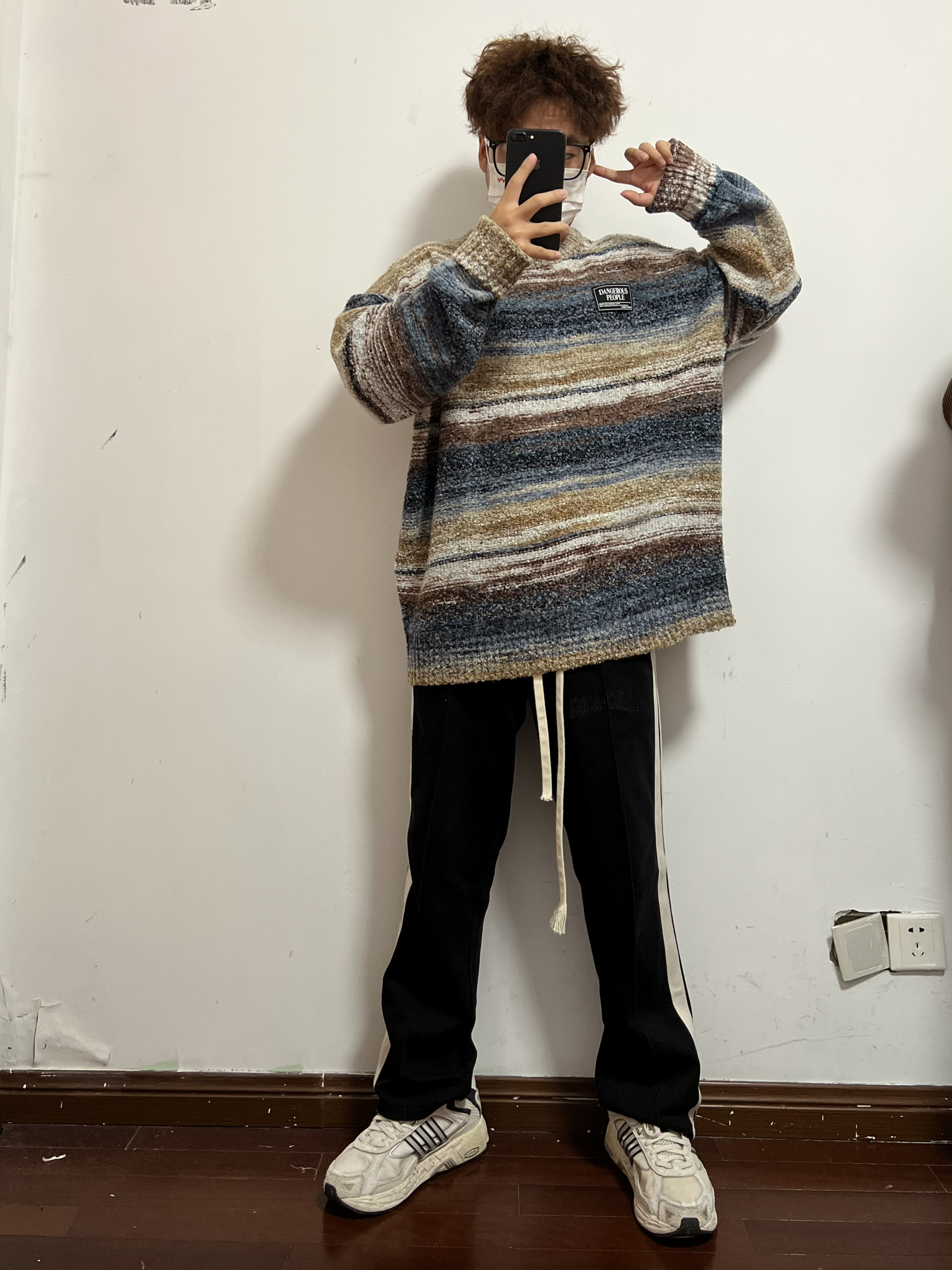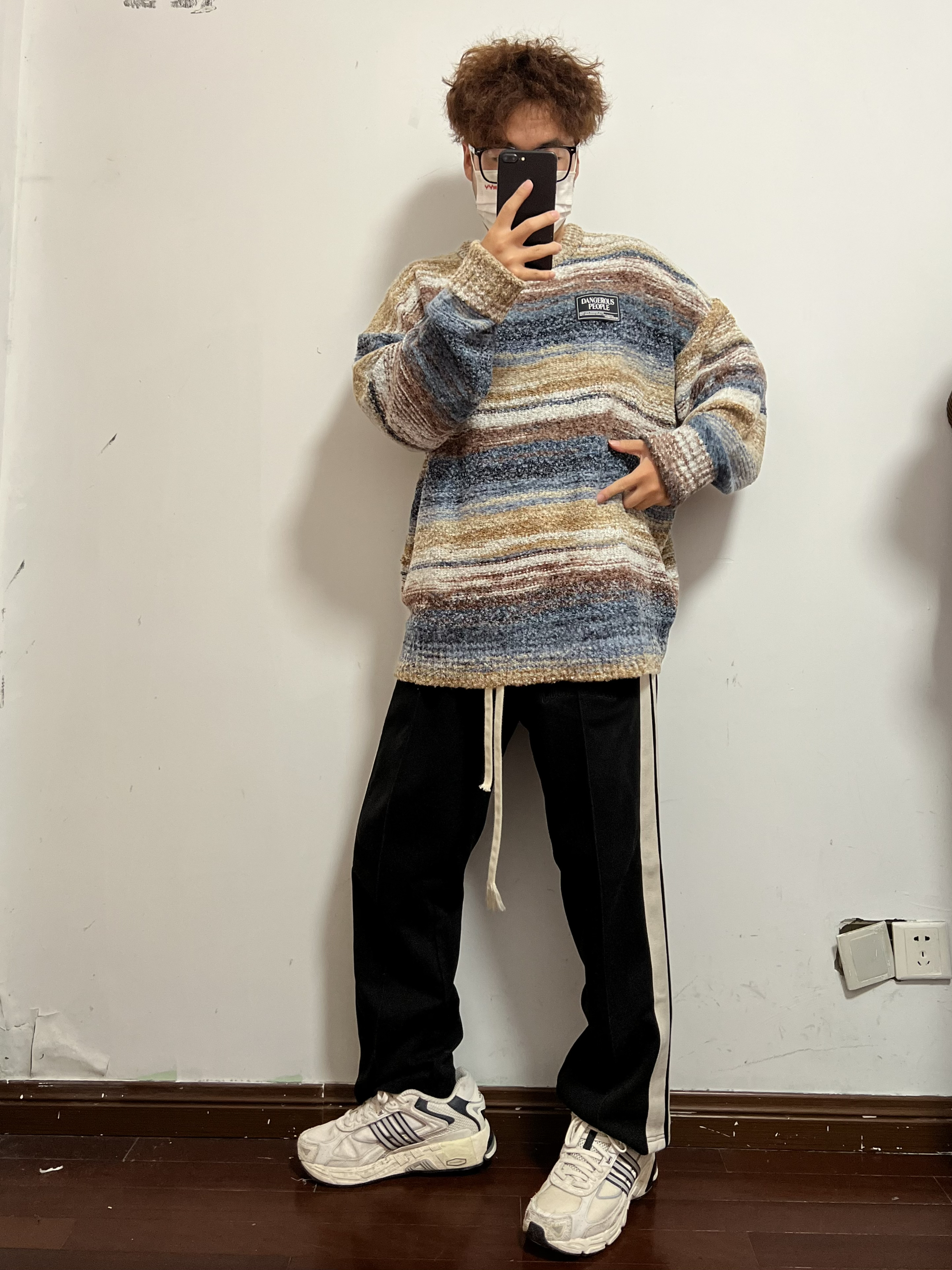 今日份穿搭分享🎉 DANGEROUSPEOPLE 彩色条纹毛衣 这种五彩斑斓的毛衣少见好看 不管是单穿还是内搭都超棒 氛围感毛衣这不就来了嘛🉑️ 显瘦真的超显瘦很难不爱哦 搭配一条黑色长裤就OK 再来一双Adidas老爹鞋 男生穿搭就是这么简单帅气 👔 DANGEROUSPEOPLE 👖 黑色长裤 👟 Adidas 🙋♂️ 170/120斤 L 持续带来最真实的穿搭体验和球鞋开箱 喜欢的可以...