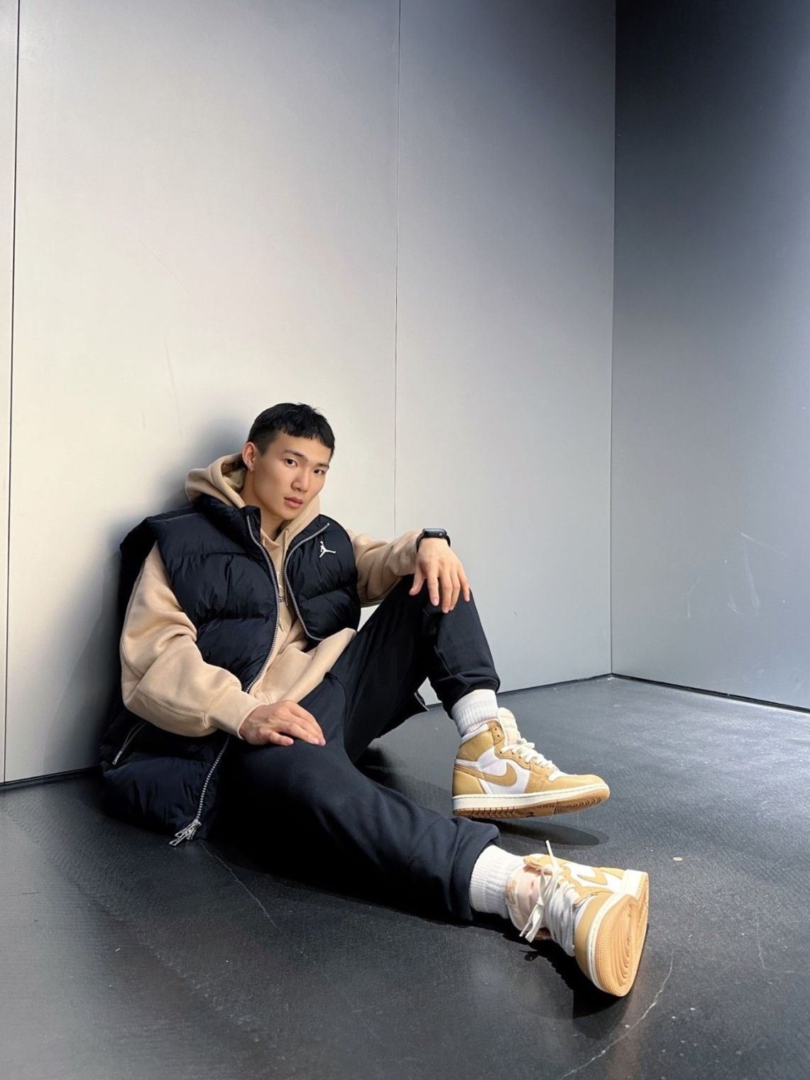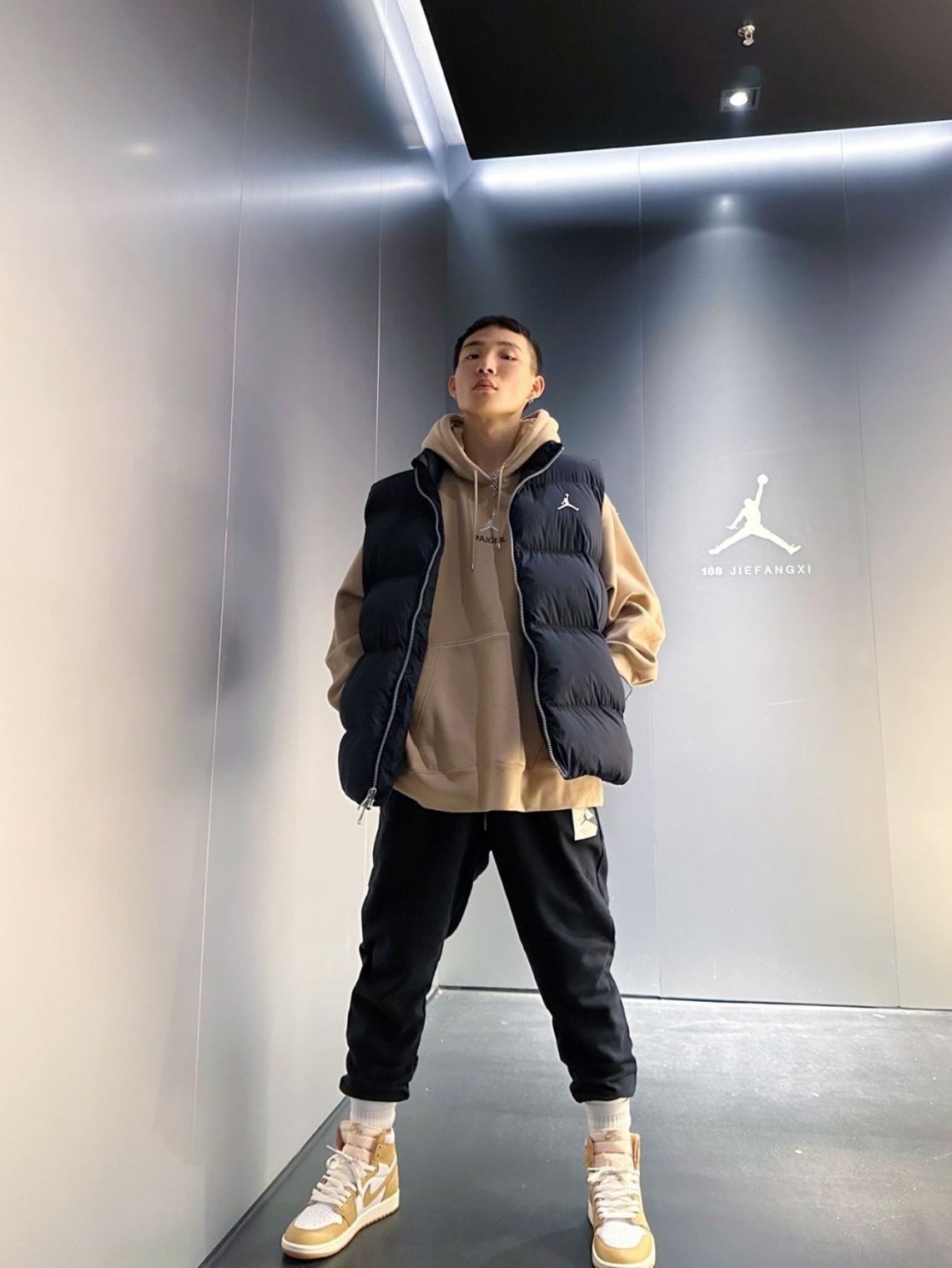 全身的单品都没有过多的装饰 最普通的色彩搭配在一起,就可以很好看! 上衣和裤子的版型很好,很显身材的 同时还很保暖,过冬完全没有问题~ 马甲搭配卫衣就是很不错的常规穿搭 还有相近的黑色卫裤的搭配 图源网络侵删