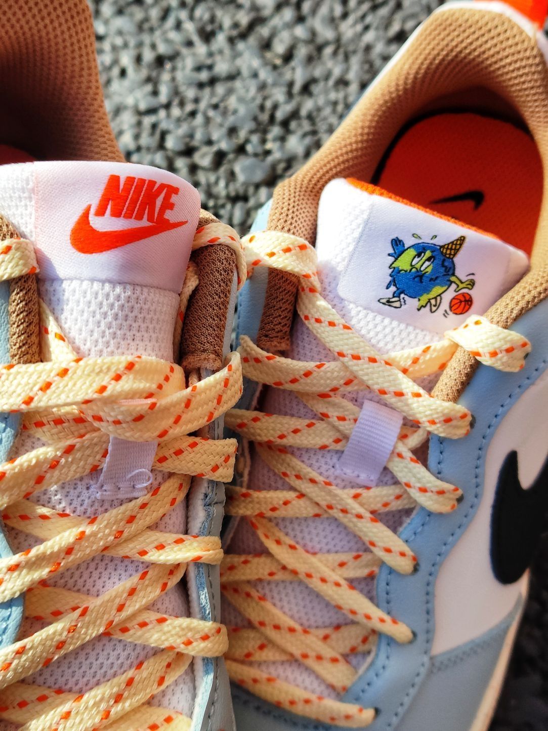 这双Court可谓是天花板了,做工,细节都很棒,性价比超高。 🍦首先就是这个配色,很鲜艳但是不夸张组合的很好,看上去不别扭。鸳鸯的鞋舌,一边是橙色的Swoosh徽标,一边是主题卡通人物“打着篮球的甜筒冰淇淋”。 🍦然后就是鞋垫是橙色,上面印着两个“冰淇淋卡通人物”非常的可爱好看。与橙色的大底形成呼应。泼墨版的彩色中底,更加的吸引人注目,可谓是整双鞋的点睛之笔。 🍦可是说见过这么多Court系...