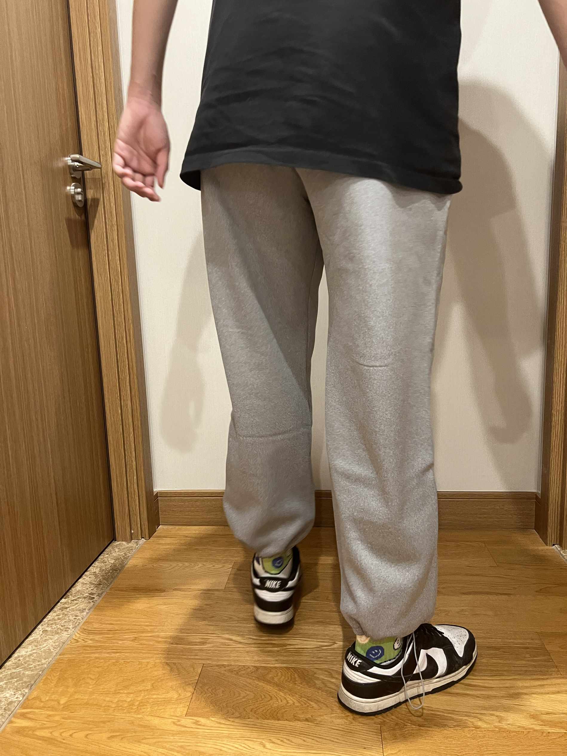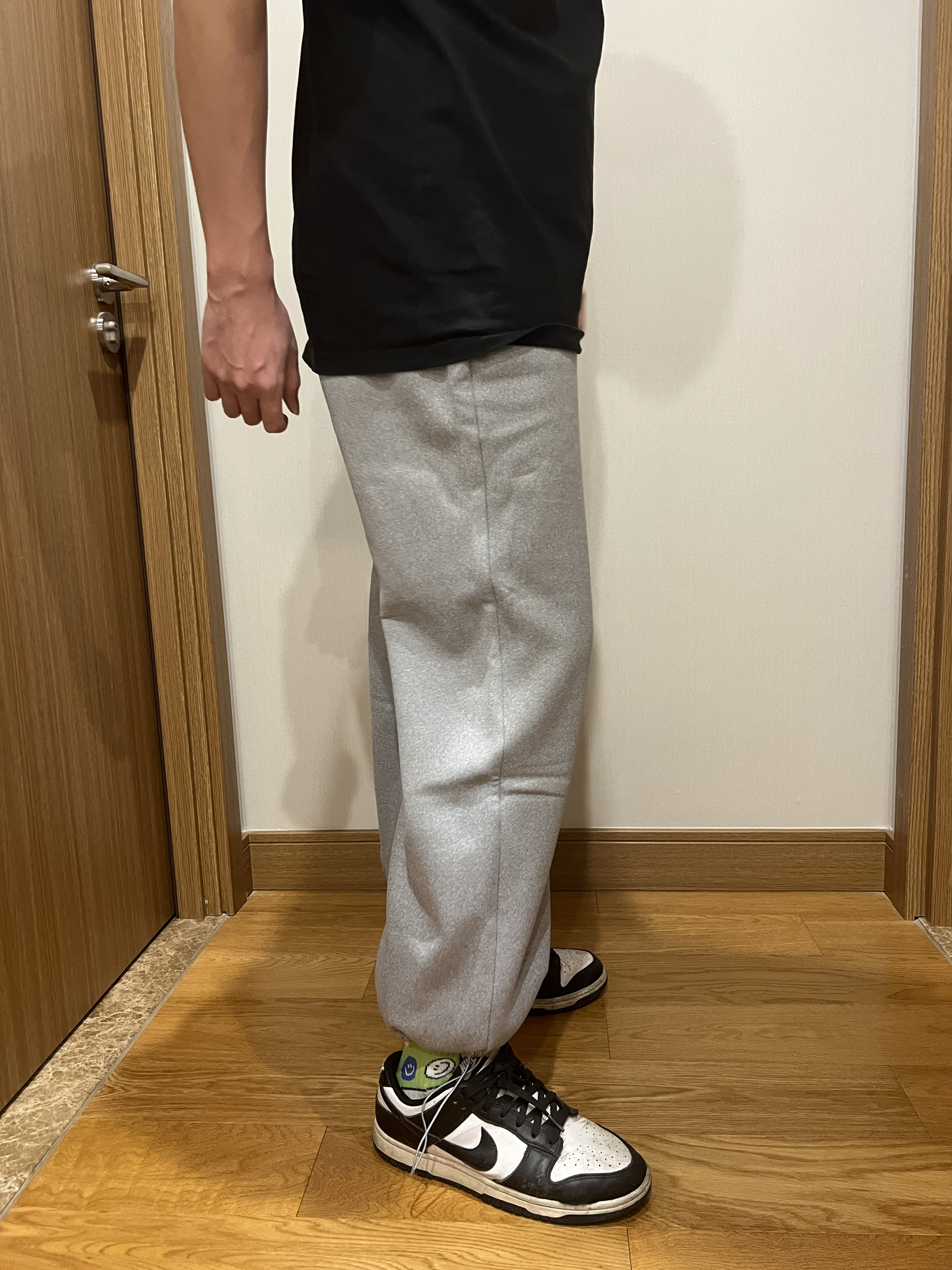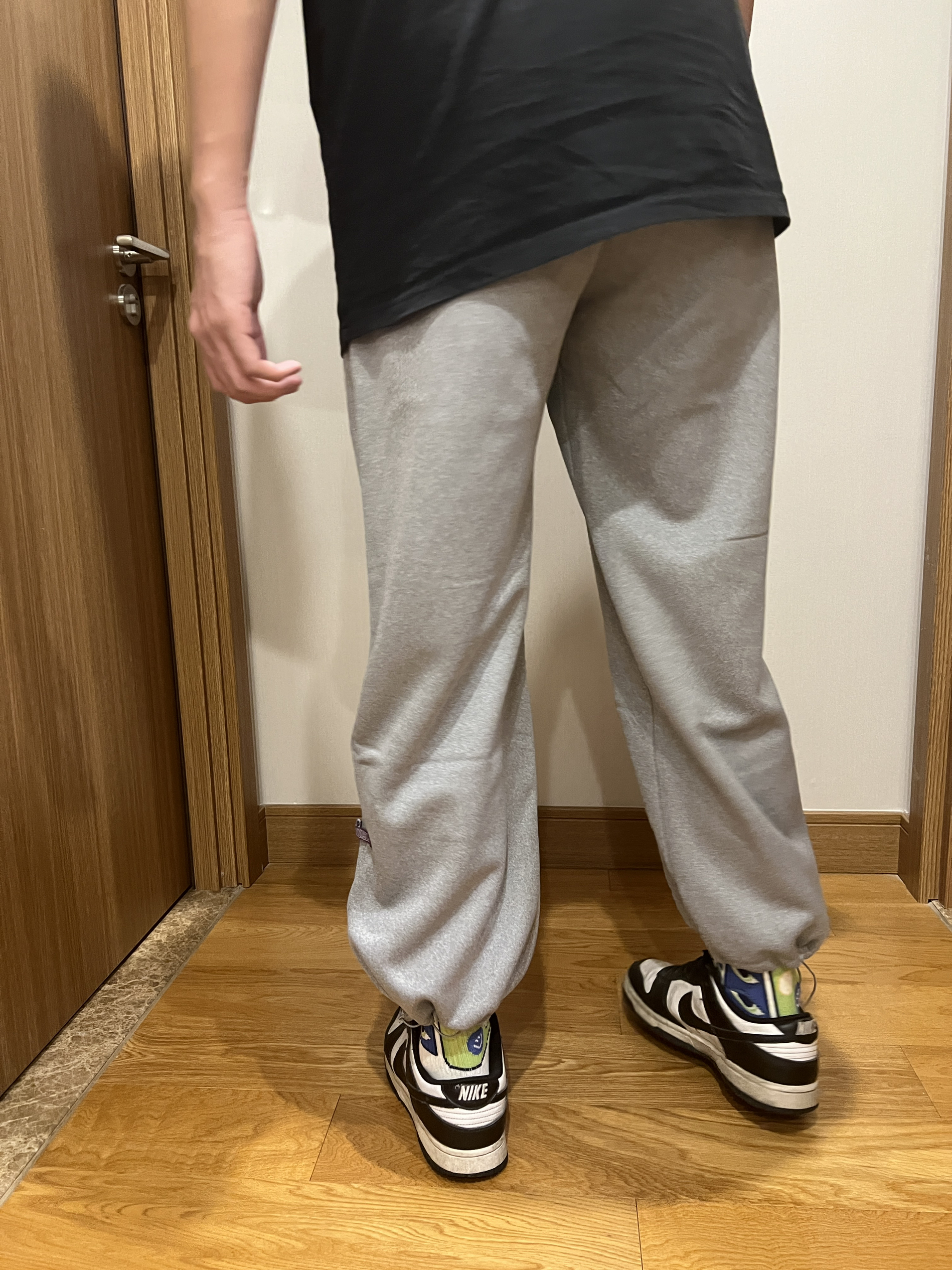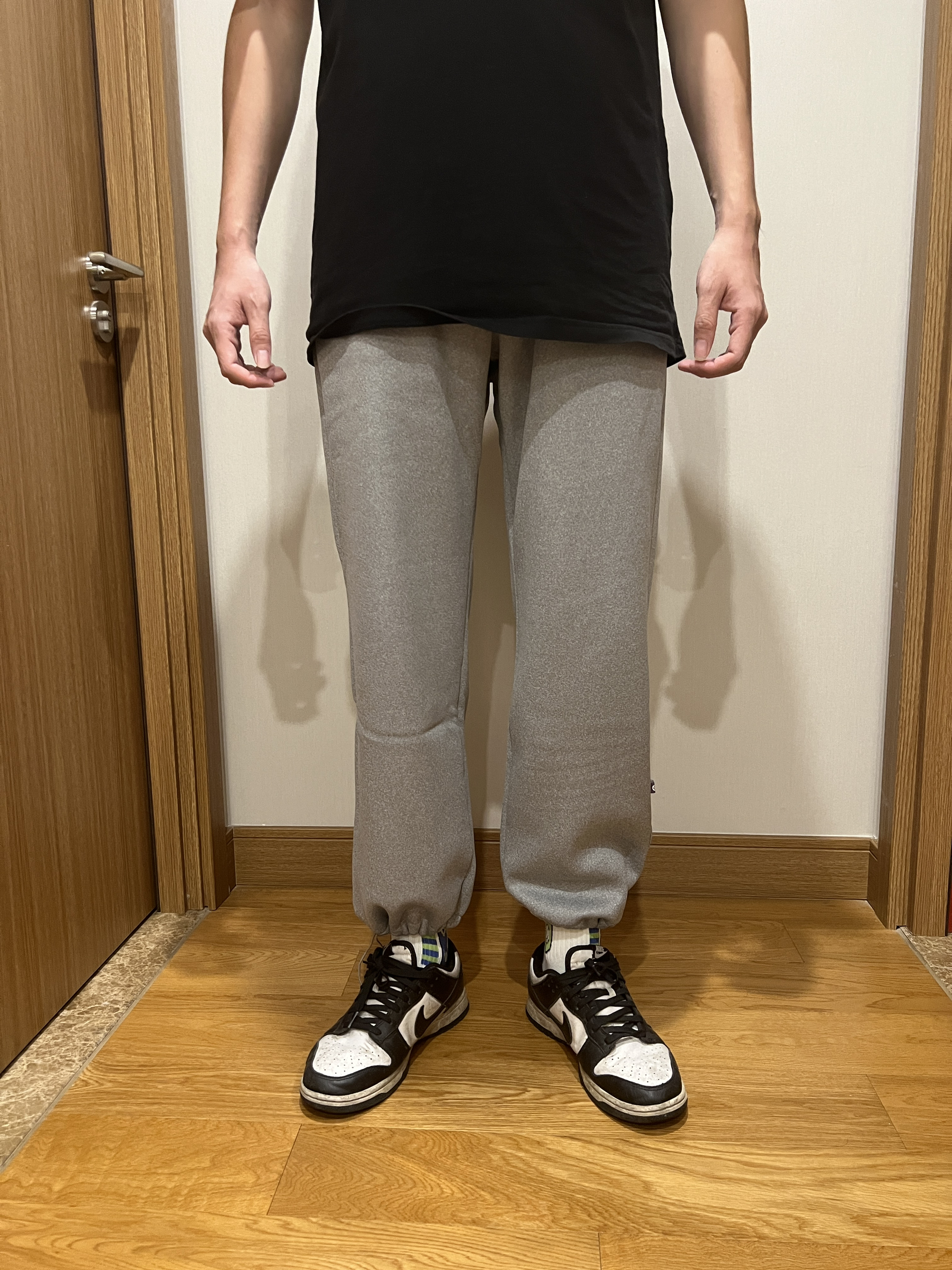 身高:178cm 体重:68Kg 天气已经有点凉了,不爱穿秋裤的可以试试这条加绒卫裤,配色为灰色,上身百搭好看,材质为纯棉材质,贴身舒适