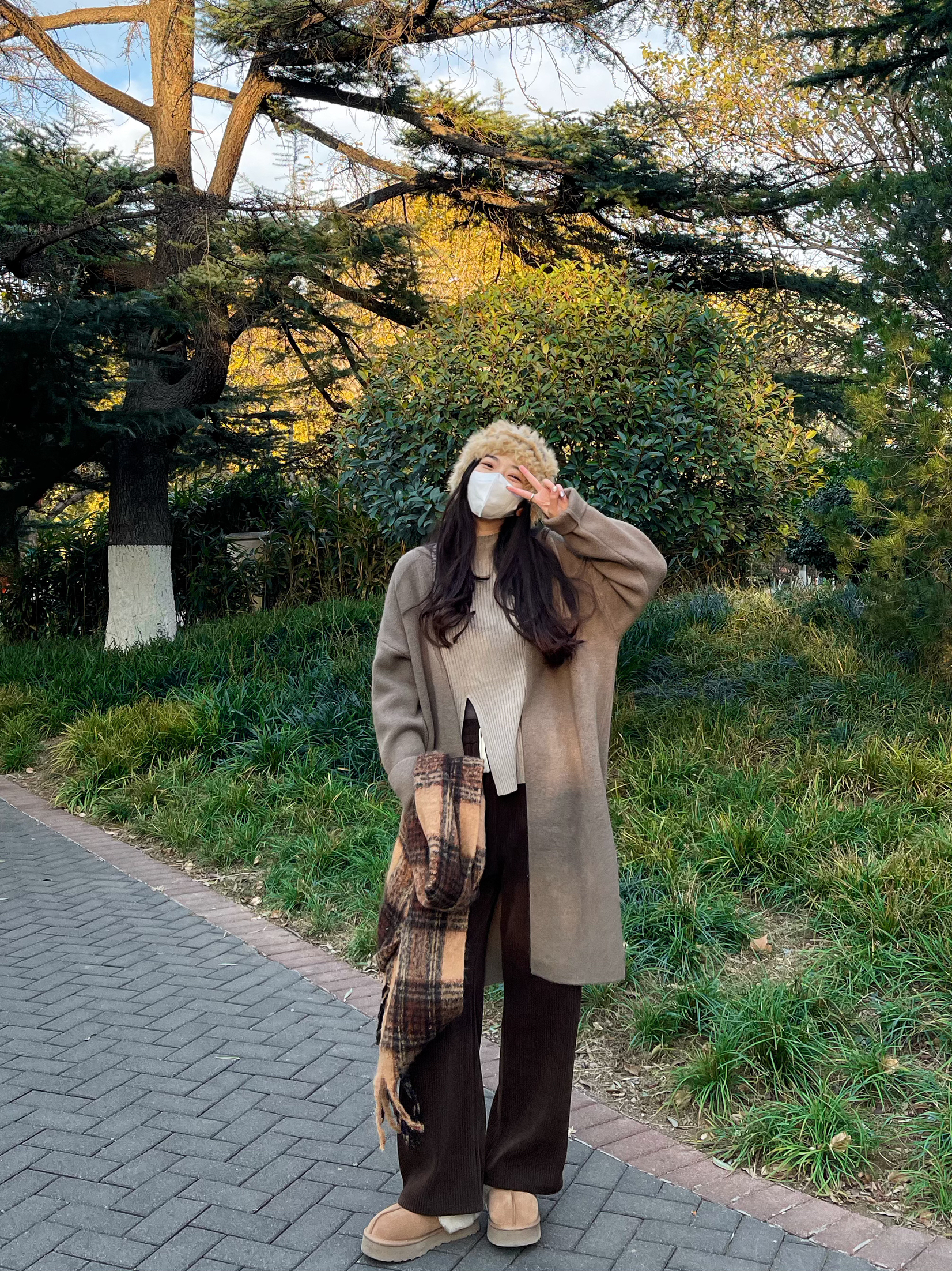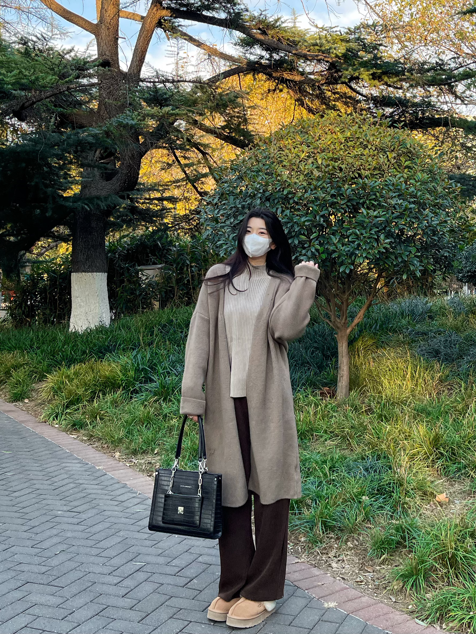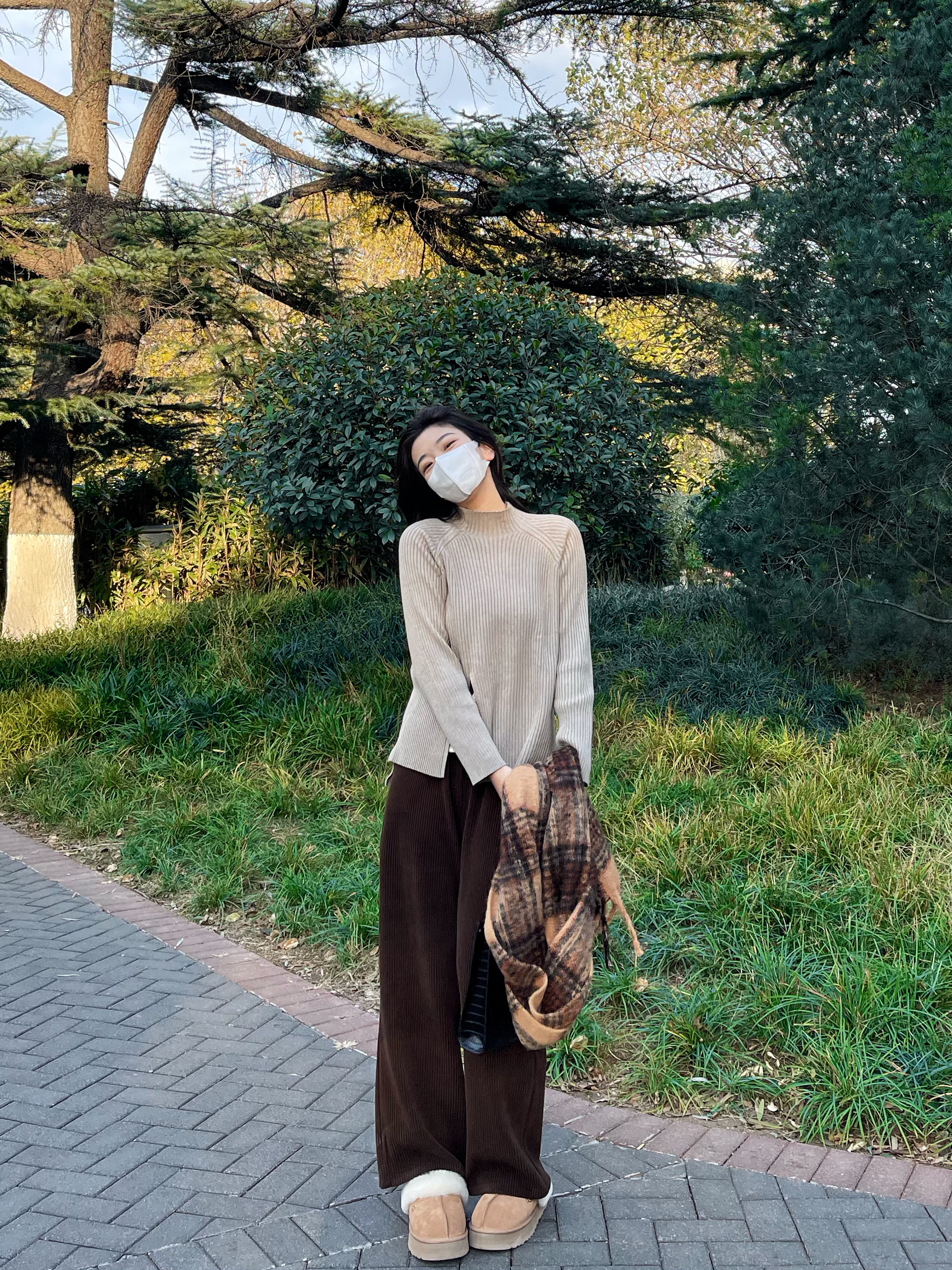 👔 上衣:针织外套太显瘦啦 👖 下装:灯芯绒阔腿裤 太舒服了 👟 鞋子:ugg星拖 搭配衣服太哇塞啦