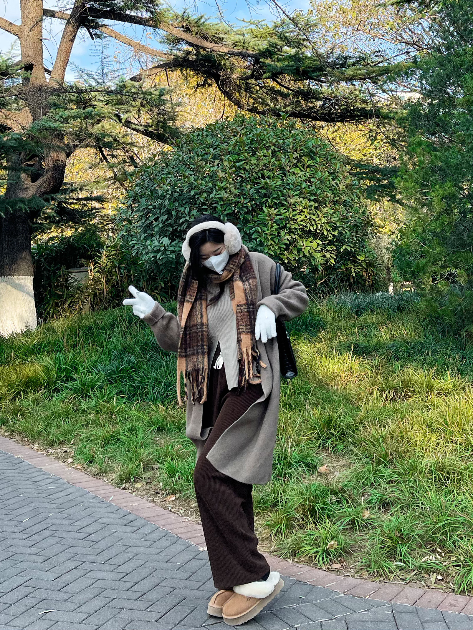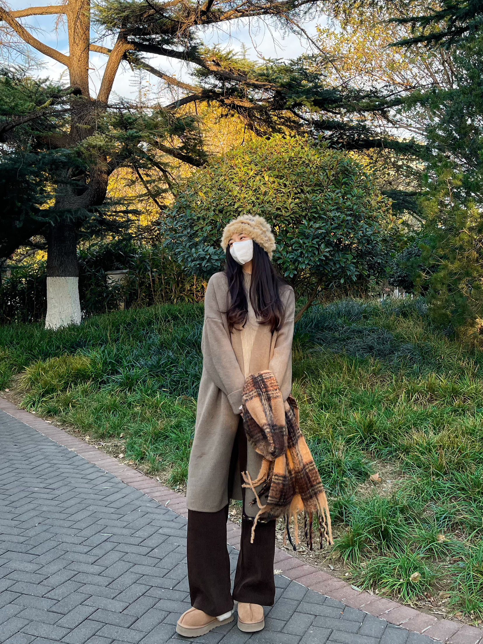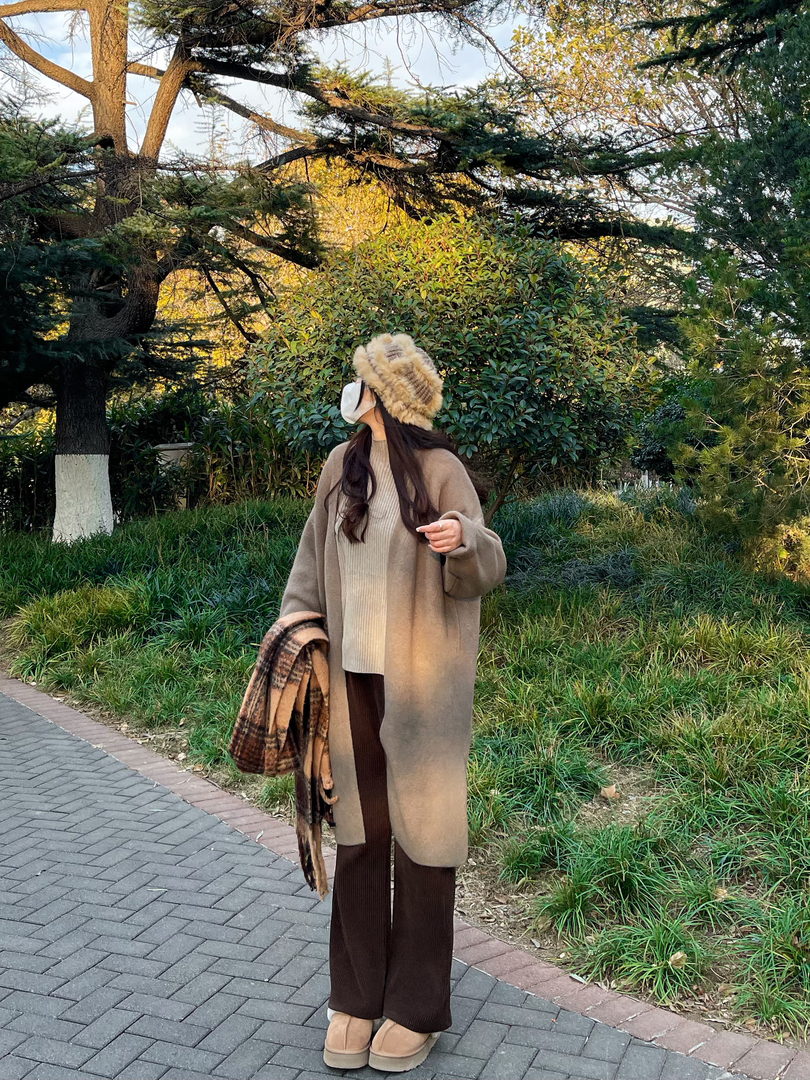 👔 上衣:针织外套太显瘦啦 👖 下装:灯芯绒阔腿裤 太舒服了 👟 鞋子:ugg星拖 搭配衣服太哇塞啦