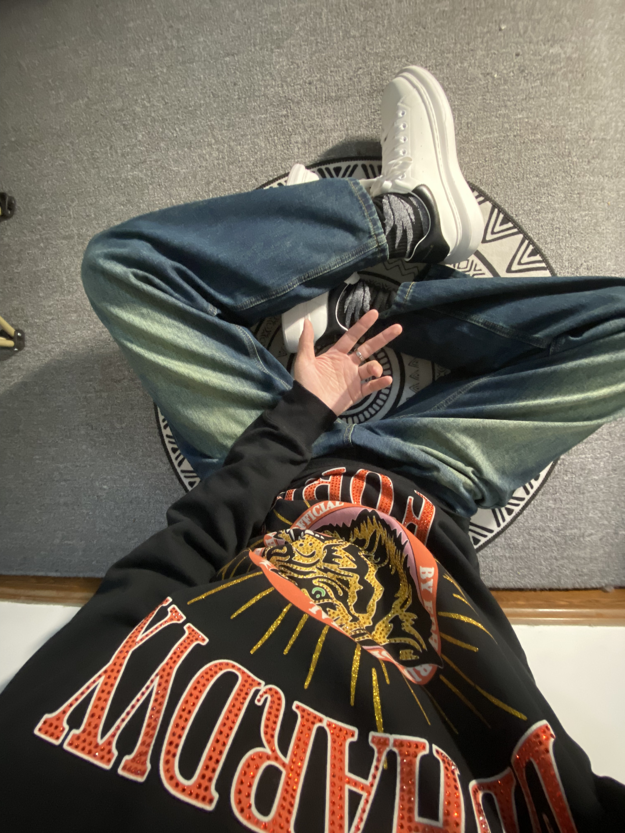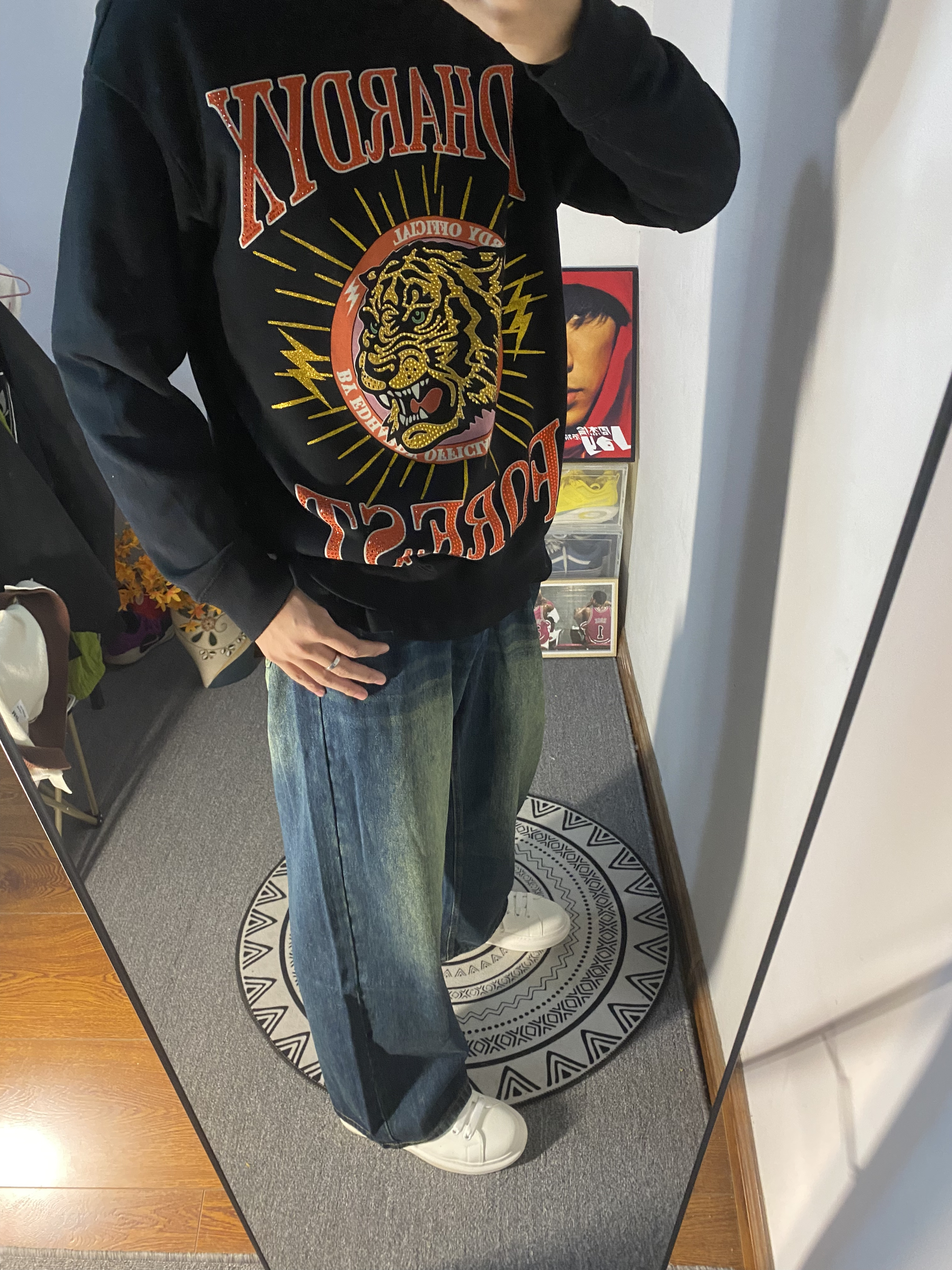 本篇笔记关联了【吴奇隆主理】ED HARDY X x ed hardy 虎头烫钻印花长袖T恤 男女同款 X1NCU727 黑、ProteusBoy 美式复古做旧阔腿拉链水洗直筒加绒牛仔长裤 23PB23KG8374 藏青色等商品,为用户提供真实的使用体验和购买参考。