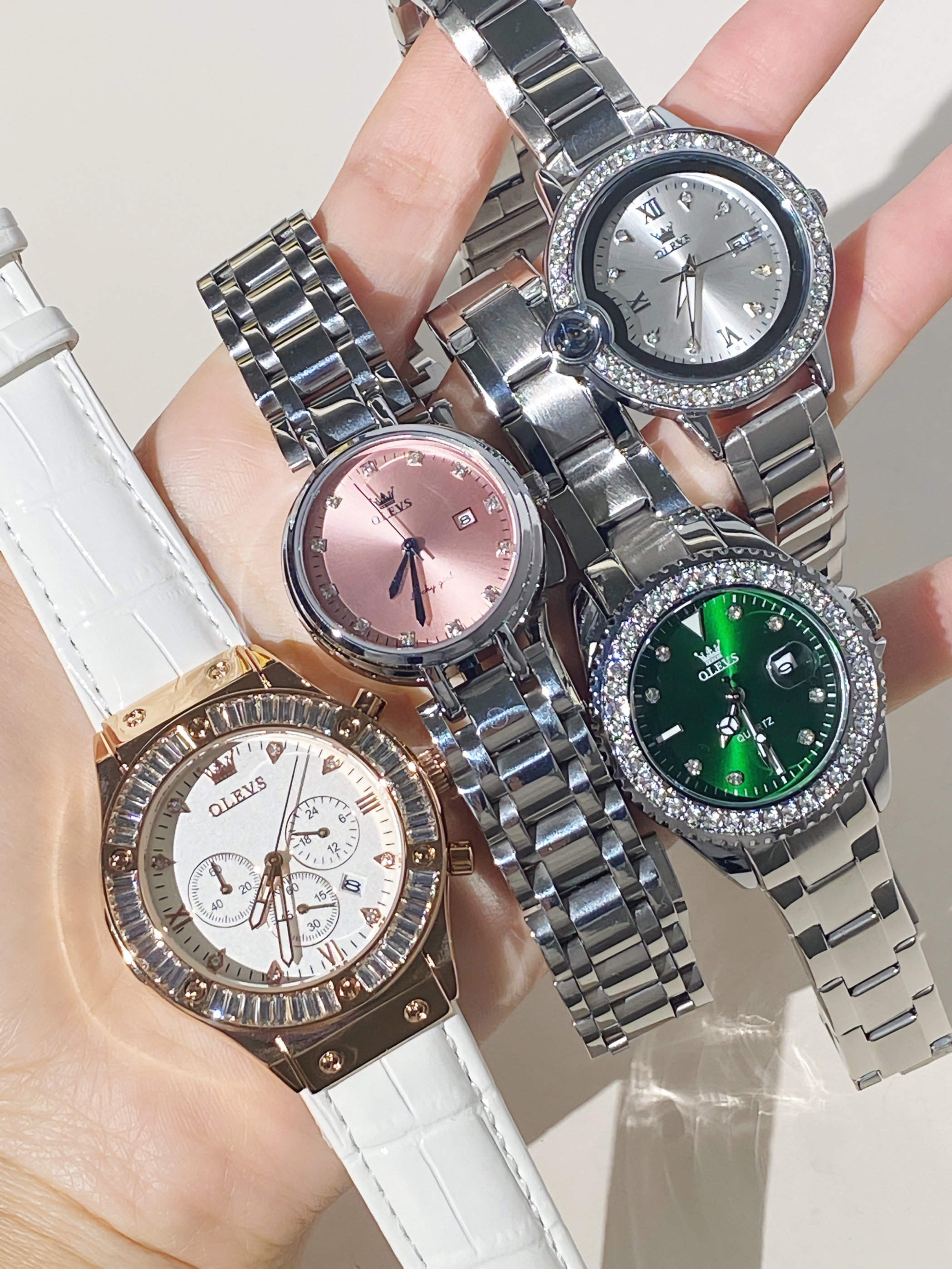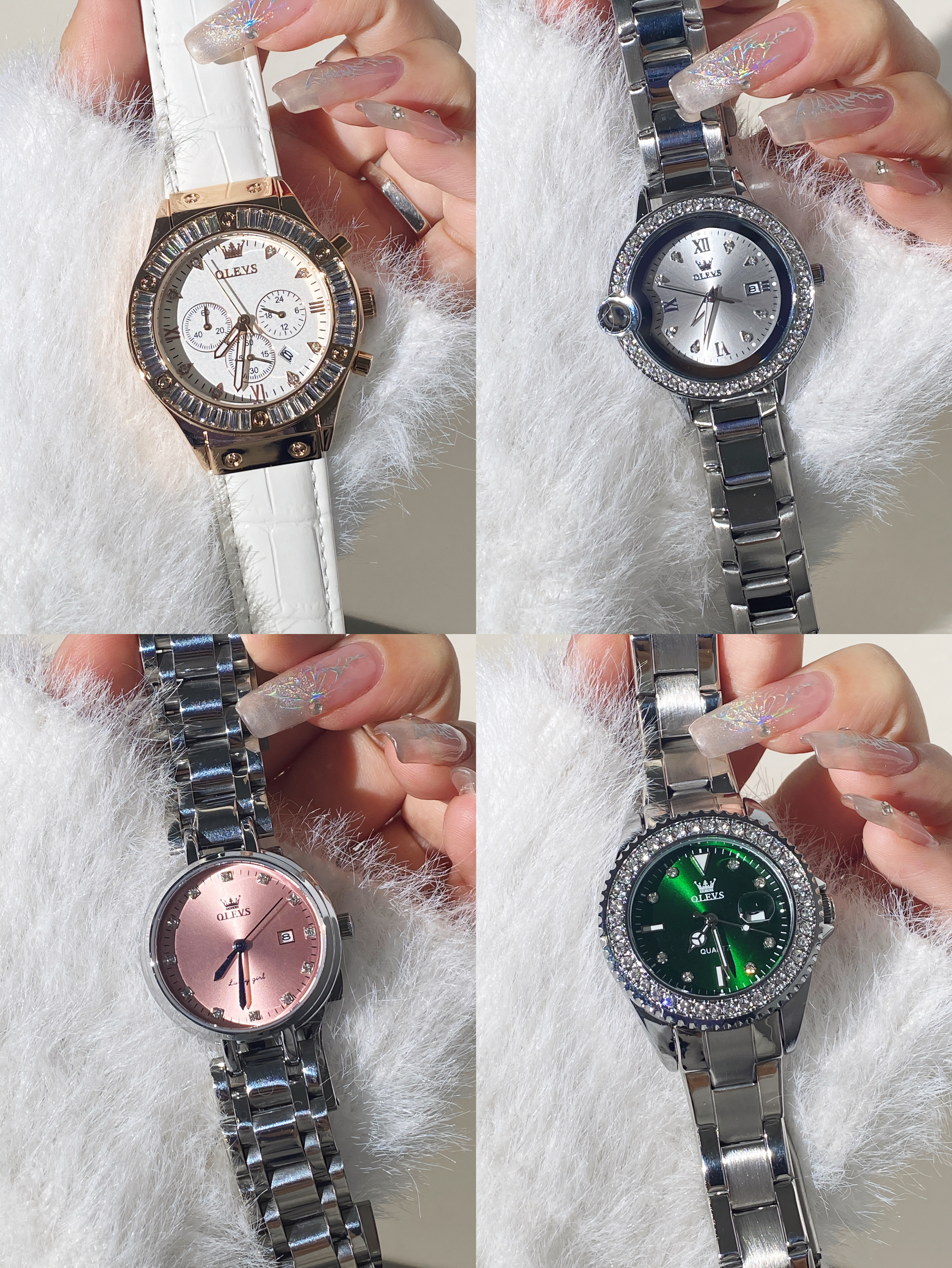 本篇笔记关联了OLEVS/欧利时 璀璨系列 轻奢华时尚简约满钻镶钻防水小巧石英女士手表 钢带本绿、OLEVS/欧利时 时尚轻奢三眼镶钻多功能夜光防水石英女士手表 【礼盒装】白皮玫白女、OLEVS/欧利时 小圆表 日历休闲ins风镶钻防水石英女士手表 【礼盒装】钢带本色粉面等商品,为用户提供真实的使用体验和购买参考。