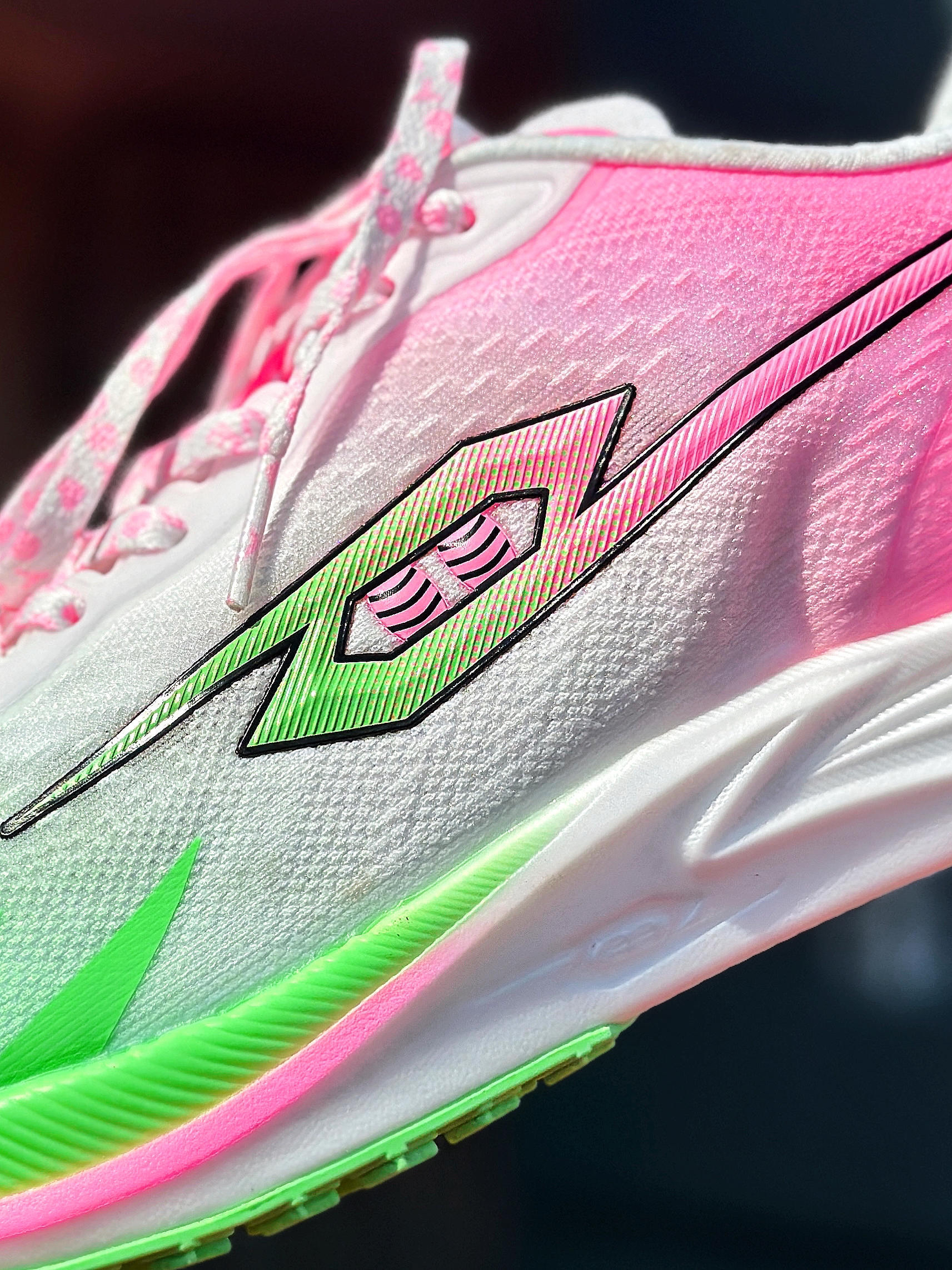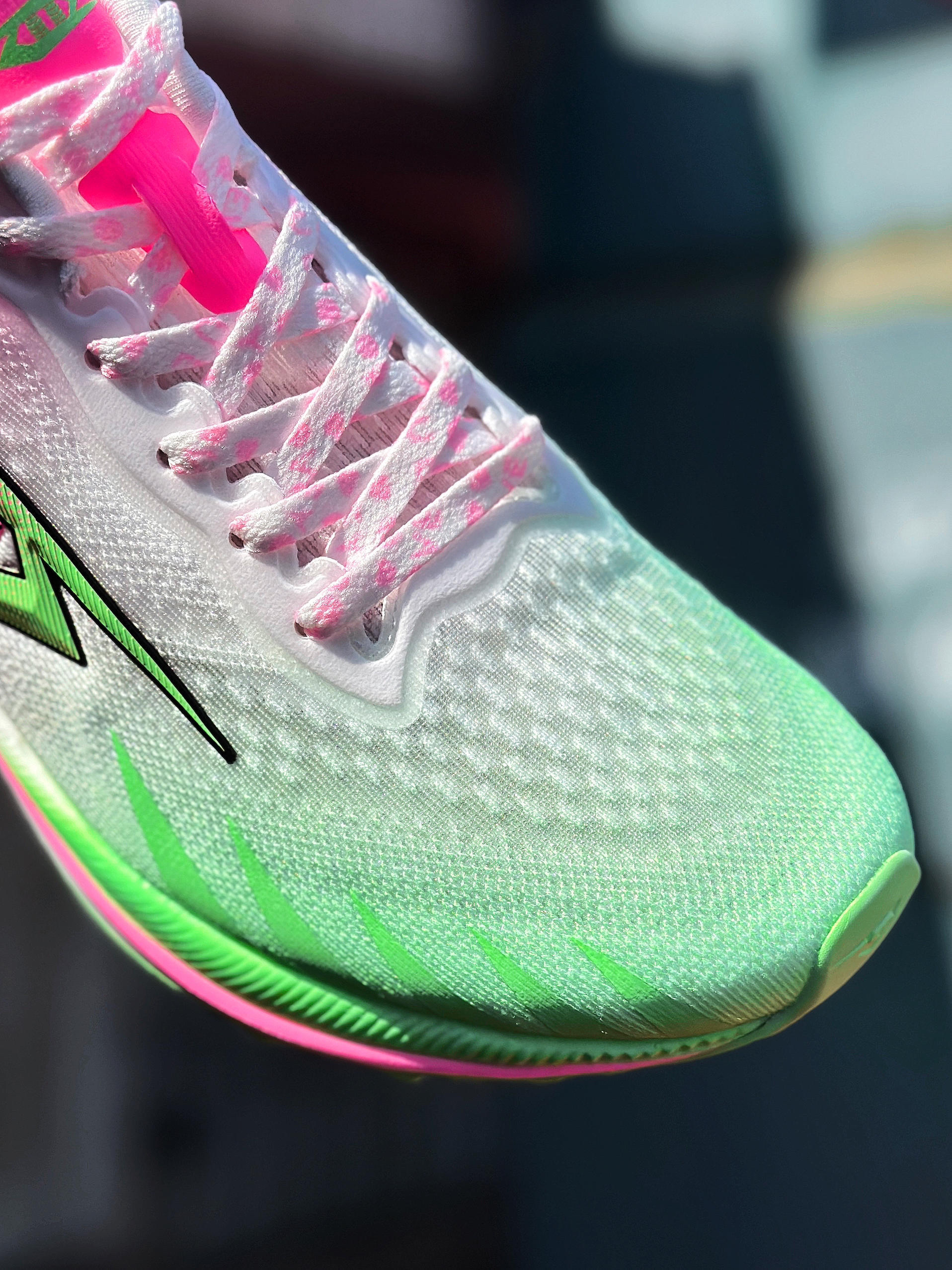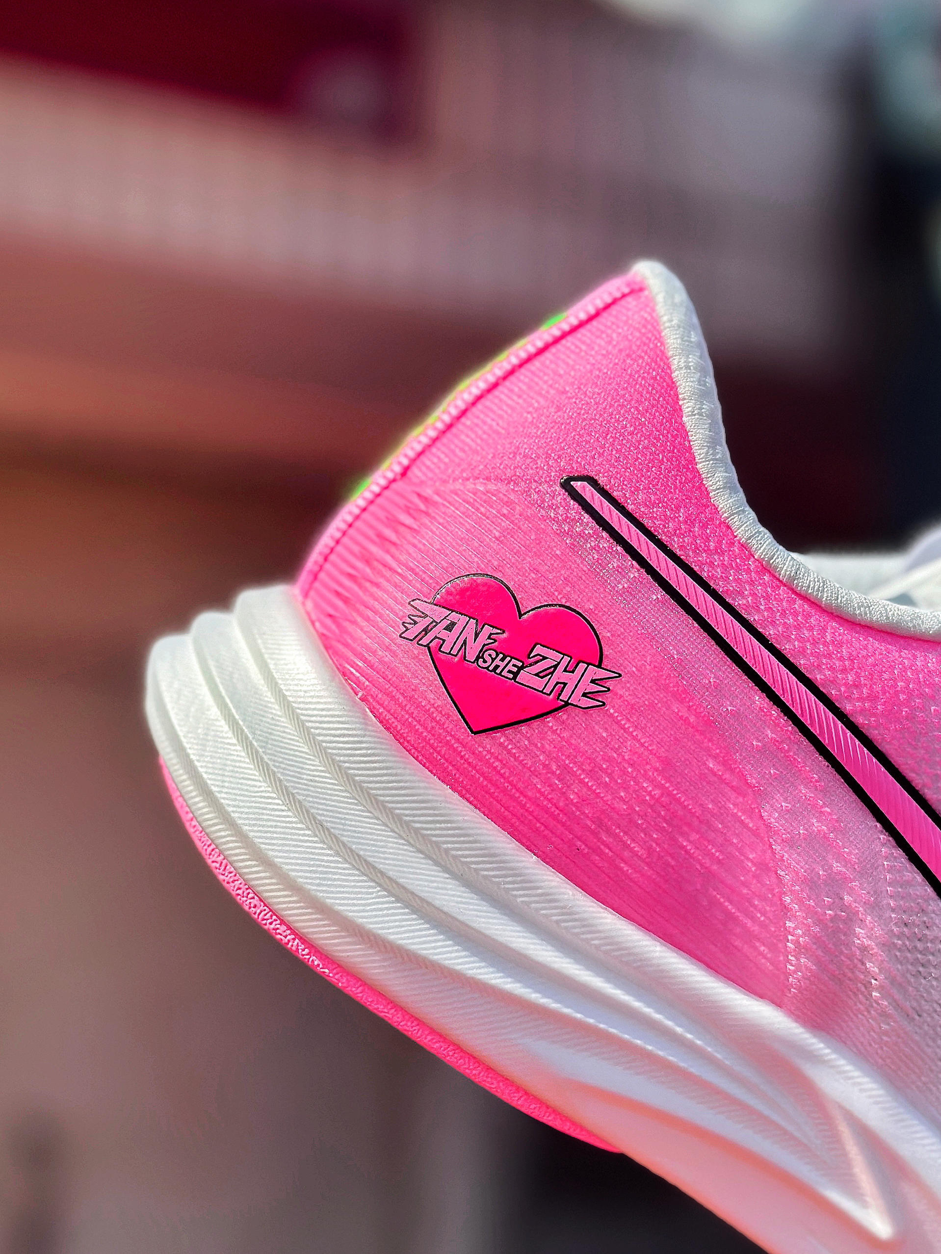 弹射者 黑马2.0 陪伴粉💕配色 今天给大家分享的这双来自于弹射者的“黑马2.0”我相信鞋型各位一定已经不陌生了,作为最早一批的网红碳板跑鞋品牌,在市场上的认可度还是很高的👍🏻 那么今天我们就主要来说一下这款全新发售的配色“陪伴粉”💕个人认为真的是最好看的一款配色了,,整体一个绿粉过渡渐变的效果,最出众的就是整双鞋许多的细节彩蛋🥚 侧跟的爱心💗鞋带部分的爱心💗后跟部分的爱心 到处都充满了心动...