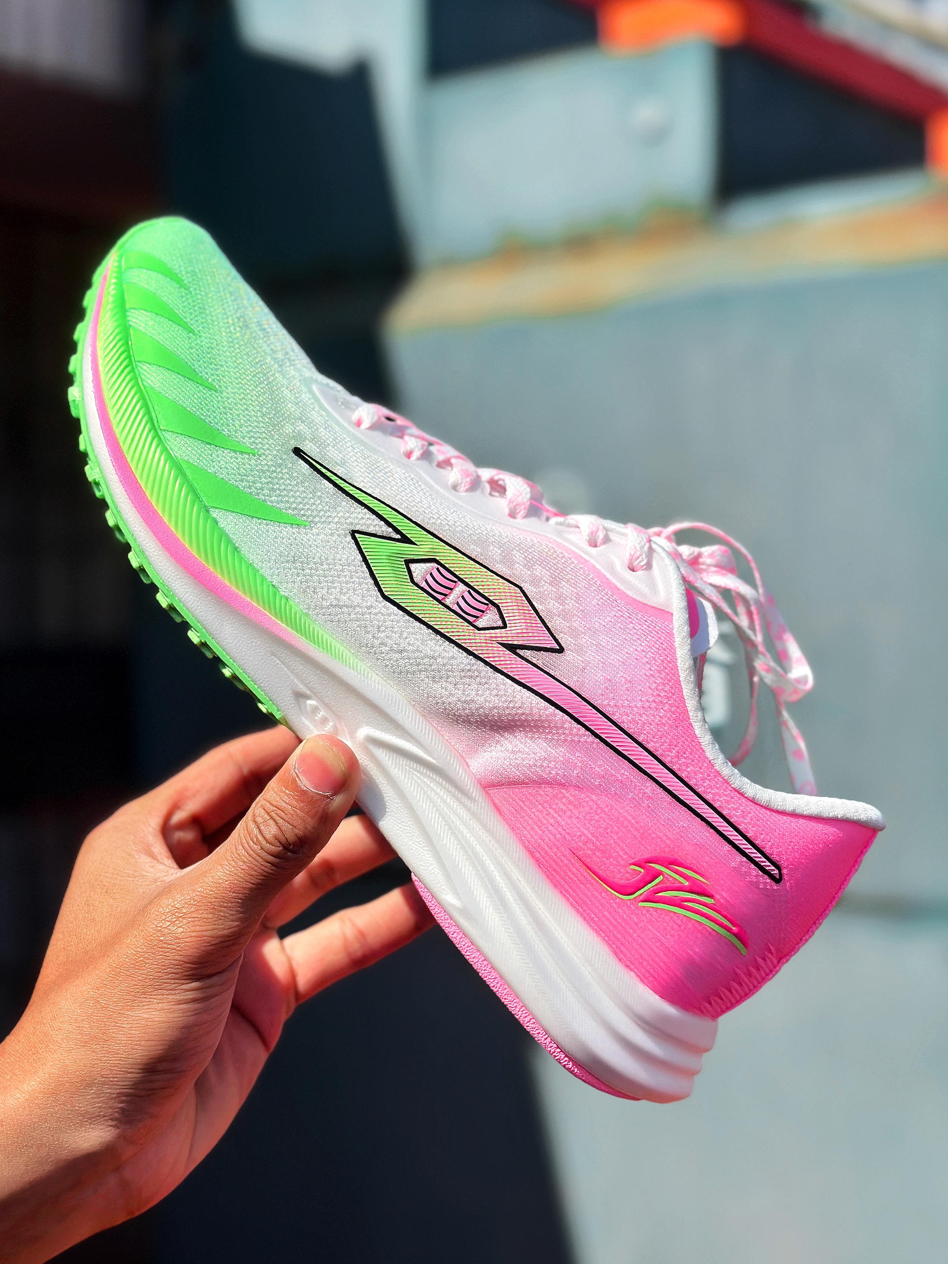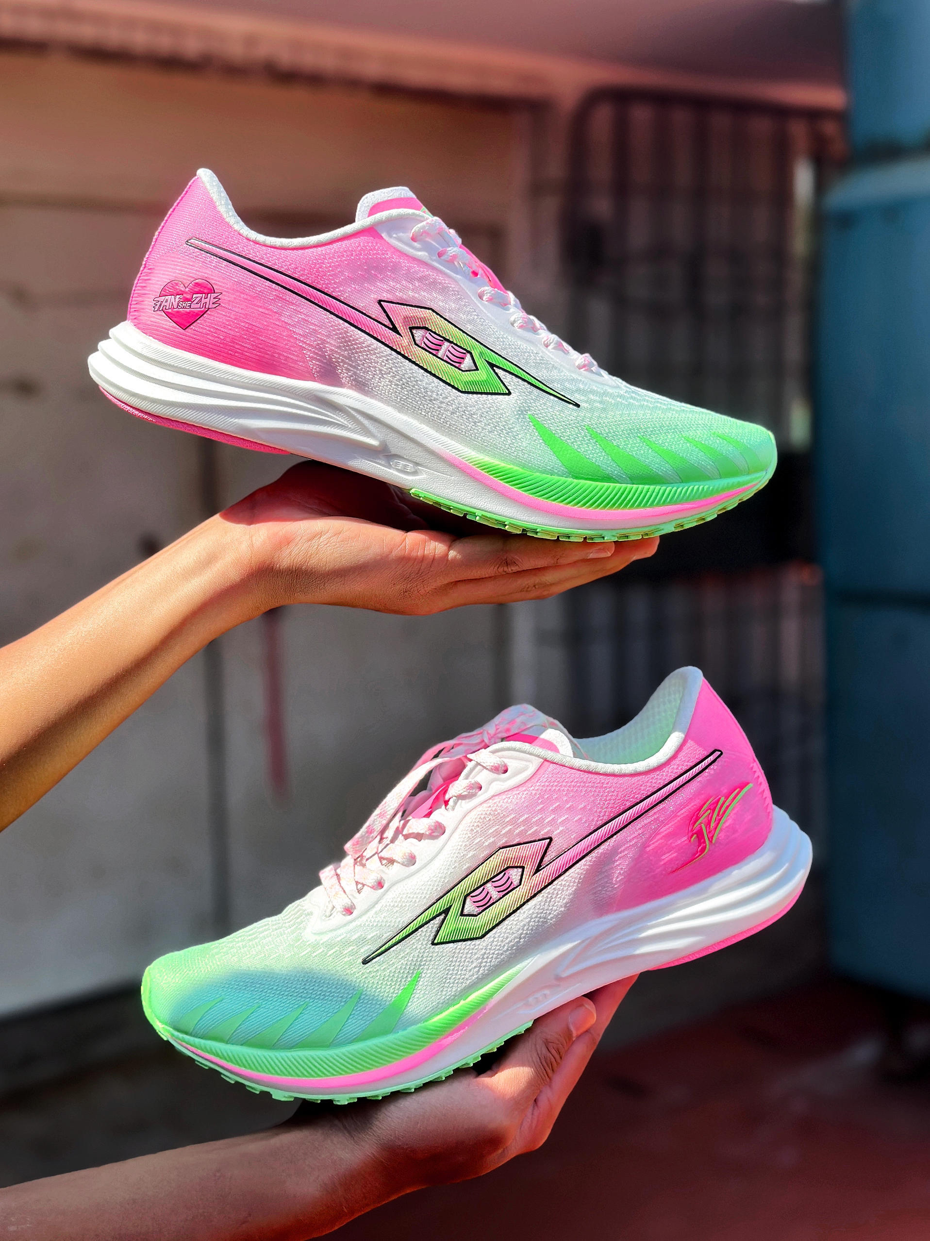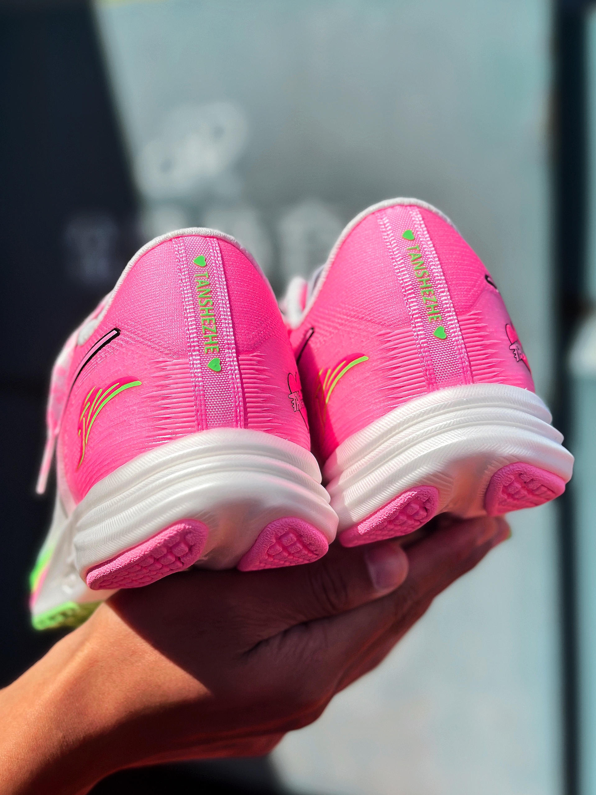 弹射者 黑马2.0 陪伴粉💕配色 今天给大家分享的这双来自于弹射者的“黑马2.0”我相信鞋型各位一定已经不陌生了,作为最早一批的网红碳板跑鞋品牌,在市场上的认可度还是很高的👍🏻 那么今天我们就主要来说一下这款全新发售的配色“陪伴粉”💕个人认为真的是最好看的一款配色了,,整体一个绿粉过渡渐变的效果,最出众的就是整双鞋许多的细节彩蛋🥚 侧跟的爱心💗鞋带部分的爱心💗后跟部分的爱心 到处都充满了心动...
