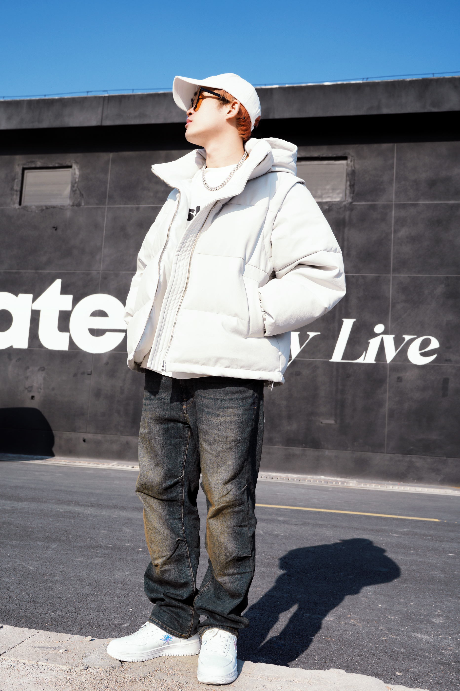冬季穿搭❗ 首先是保暖❗❗ 其次是潮流。 - 经典简约白T可以叠穿打底✔ 配合纯色拼接的夹克 上身的层次感一下子就拉满了! - 裤子可以利用深色系营造碰撞感❗ 视觉上看起来不会很单一 最后搭配一双干净百搭的潮流休闲鞋呼应下服装✔ 保暖舒适又有点小酷的型男户外穿搭 这不就搞定了? - #户外舒适穿搭
