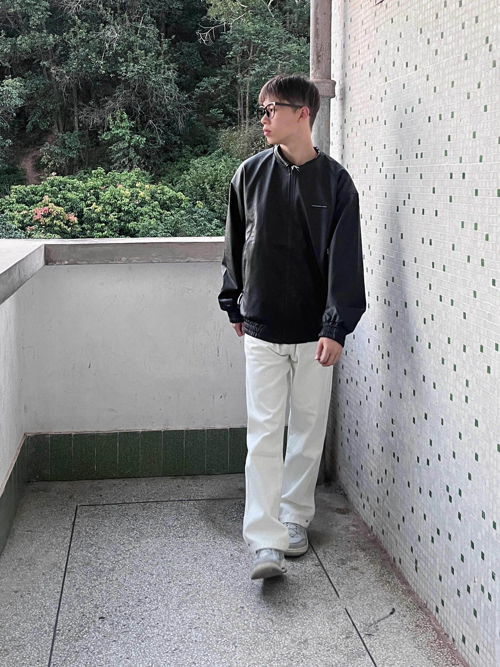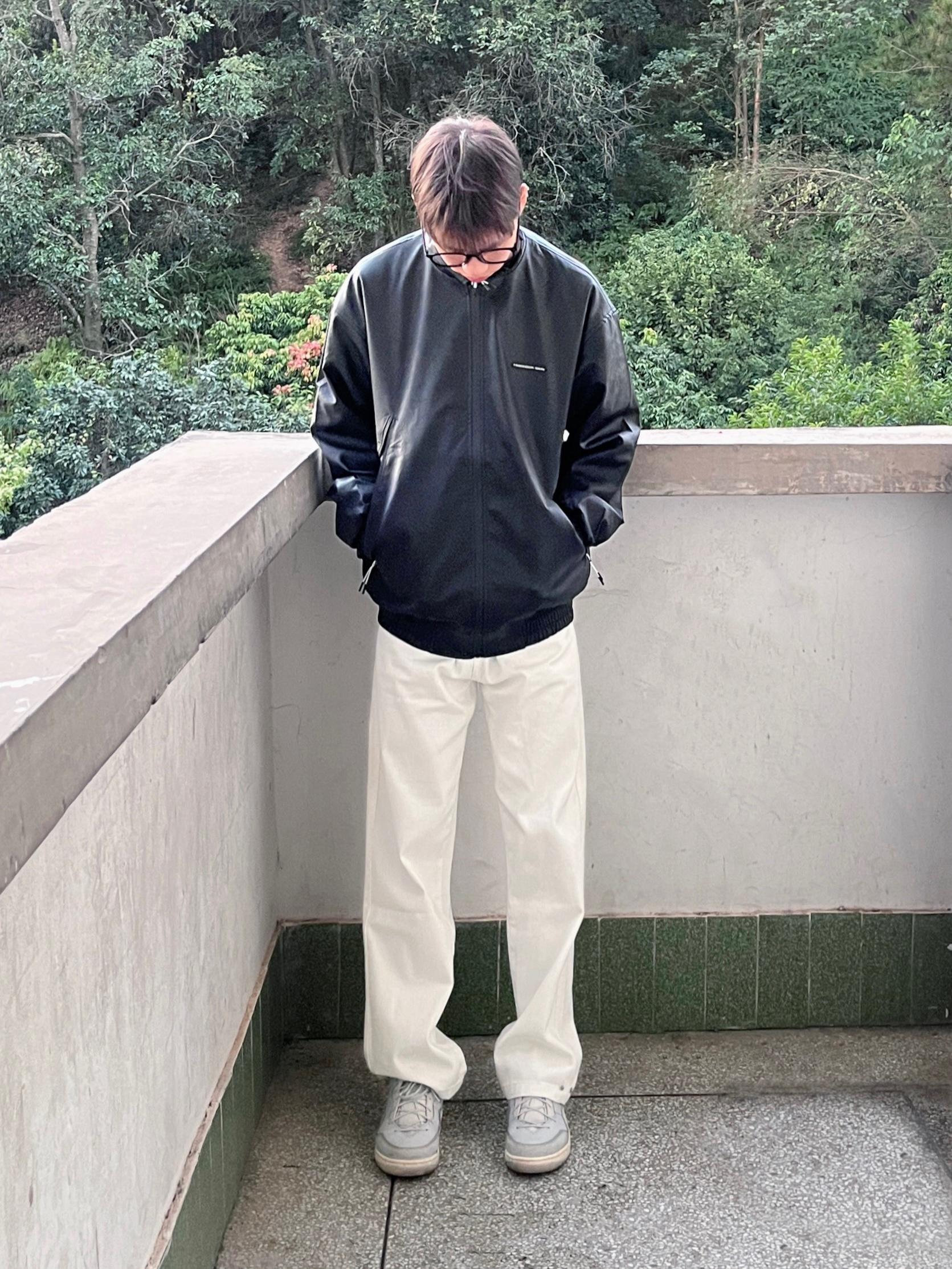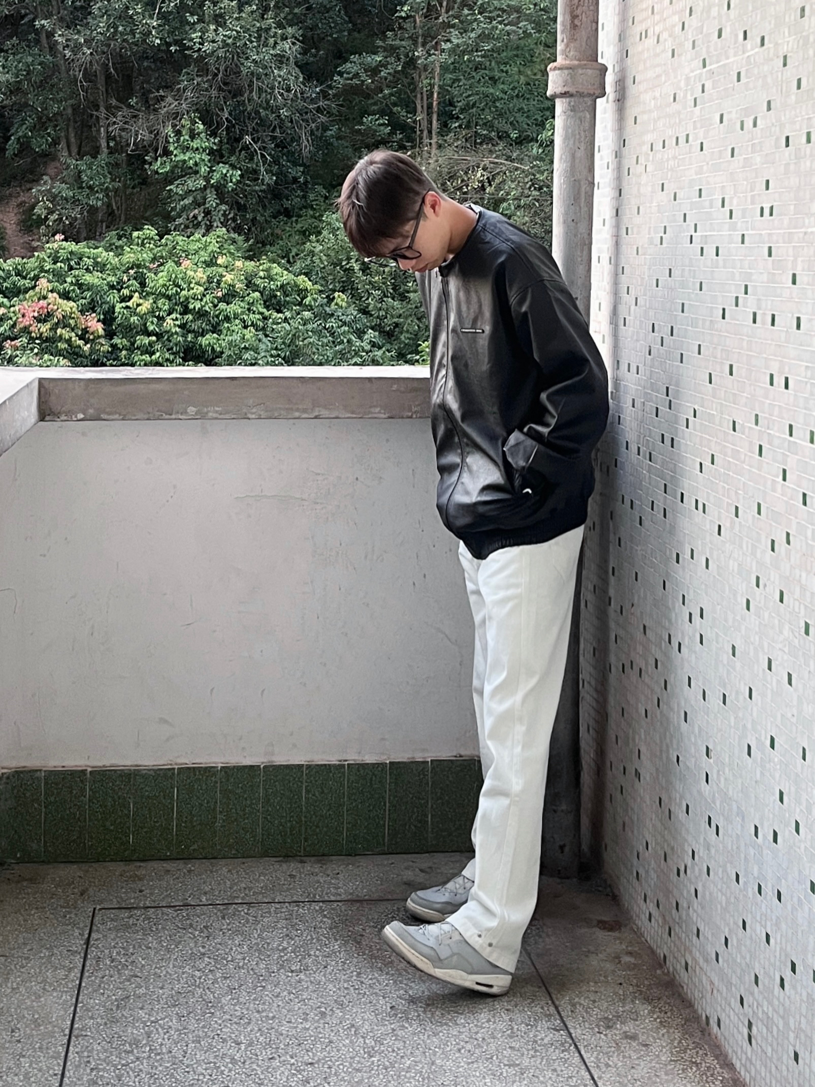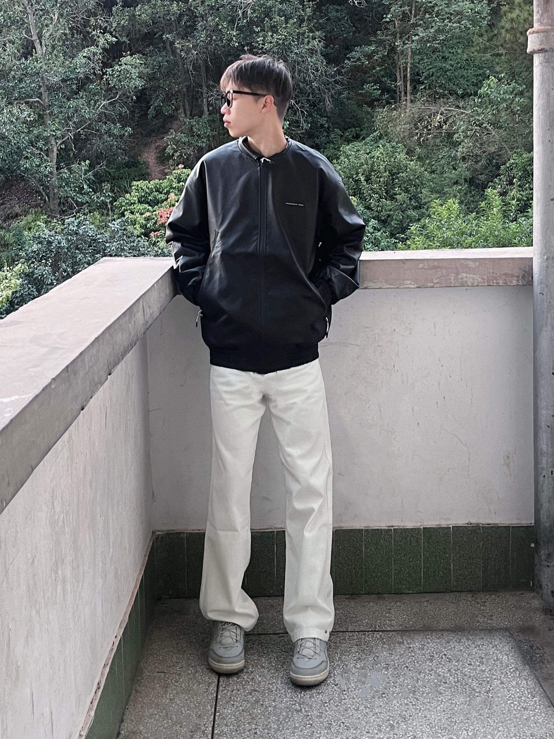 今日份穿搭look👀 衣服是美式复古的PU皮夹克外套 痞帅机车风满满 穿上后质感满满 高街风十足 裤子方面我选择搭配一条白色直筒牛仔裤 版型宽松显瘦 面料舒适细腻 再上脚一双灰色百搭板鞋点缀 颜值潮酷时尚 百搭无敌 脚感舒适透气 一套搭配下来 黑白配永远不会出错