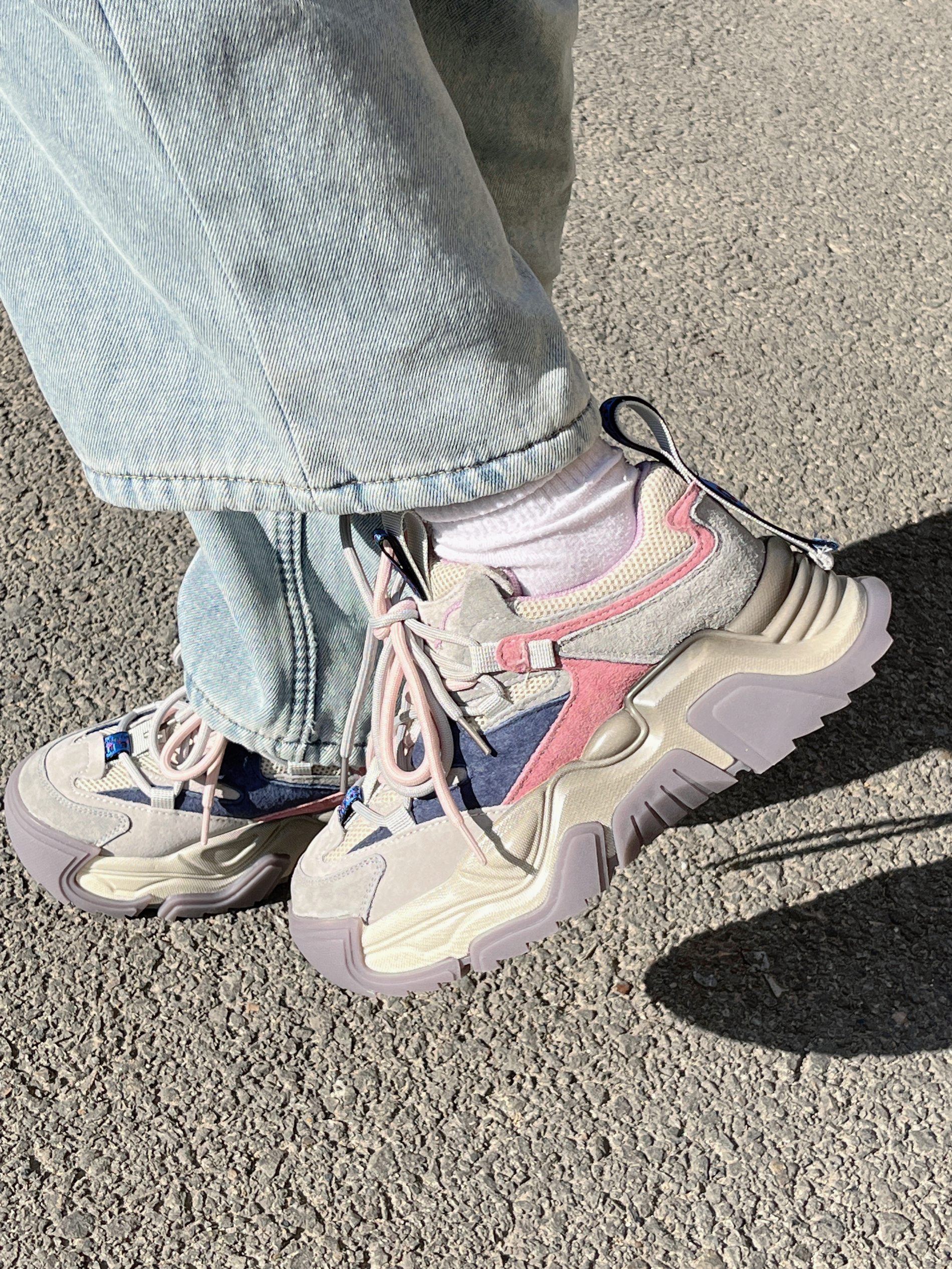 来啦💫这里是小奶冰🧊 今天分享的是一双老爹鞋噢 灰蓝紫🦋的新配色低调又不失时尚的感觉 上脚尊滴好好看💓好温柔啊 厚底的6cm增高效果不要太惊艳了吧 穿上炒鸡显身材比例 显腿长👍👍 鞋面还有网面的材质 穿着很舒适透气💨 这双尊滴是时尚达人的人手必备呀~ 尺码正 正码正拍