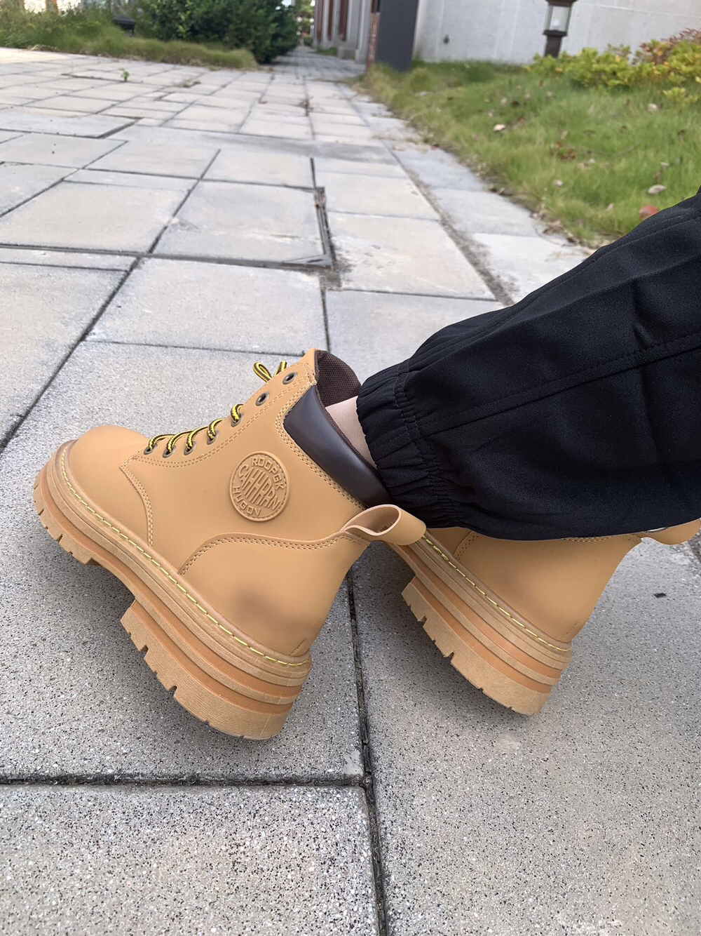 秋天必须给自己安排一双大黄靴靴~ 酷酷的马丁靴穿着让自己感觉就很酷耶。又是帅酷女孩的一天~ 华耐的这双黄色马丁靴就蛮亮眼的,也是秋天的丰收颜色~日常穿牛仔裤,运动裤子都很好搭耶。穿上增高5公分的鞋子,让我的短腿显的长啦。鞋子还是蛮轻的,穿着走了很久也不太累脚。鞋底也是比较耐磨的橡胶材质,再也不怕磨脚啦~