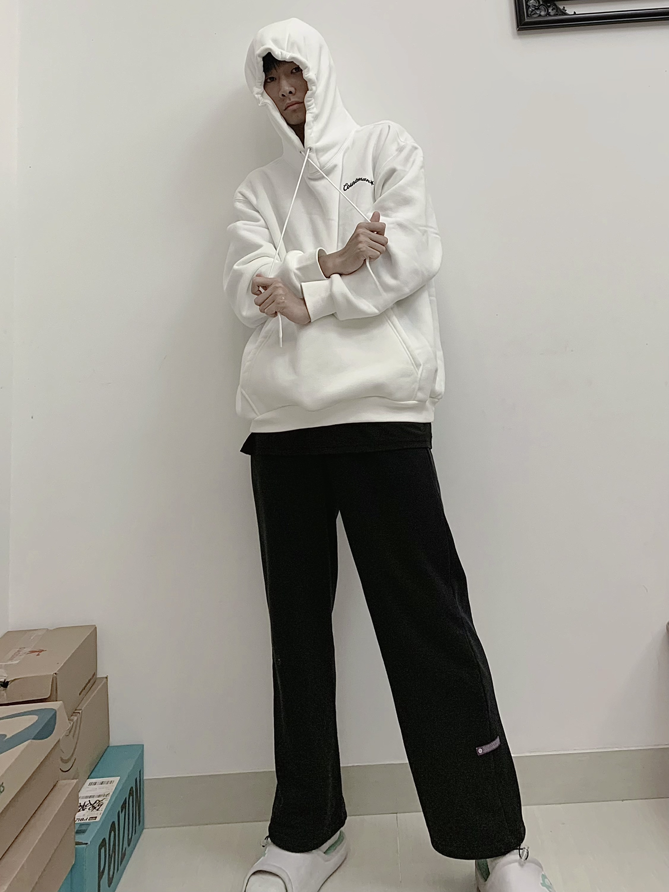 身高|体重:178/60 🧍♂️ 穿搭风格:球场运动风 👔 上衣:SLAMBLE秋季新款美式连帽卫衣长袖帽衫男女运动休闲宽松上衣外套 👖 下装:SLAMBLE秋季新款直筒毛圈运动卫裤男女篮球跑步百搭训练休闲长裤 👟 鞋子:态极洞洞鞋 🎒配饰: