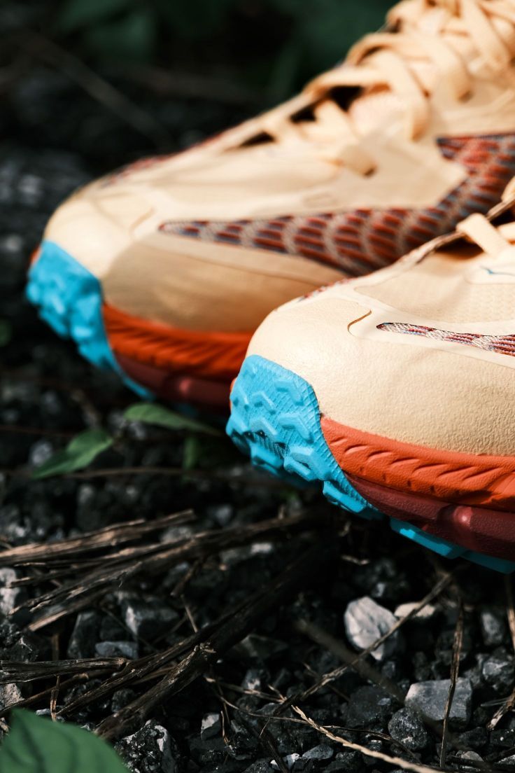 这双是跑过崇礼的大神的鞋 纯粹是借来拍个照片 当然也征得同意后上脚踩了下 非常柔软舒适 不仅仅是鞋底 鞋面也比较柔软 前掌略宽 没有越野鞋硬核的感觉 初上脚的感觉甚至比路跑鞋还要舒适 对大神来说会略微缺乏安全感 大神偏爱羚羊5多一些 但是对我这种小白来说还是很友好 不追求速度的时候还是很稳健的 这款配色也非常好看 艳丽的越野色彩 不仅亮眼 也为越野提供更多安全保障