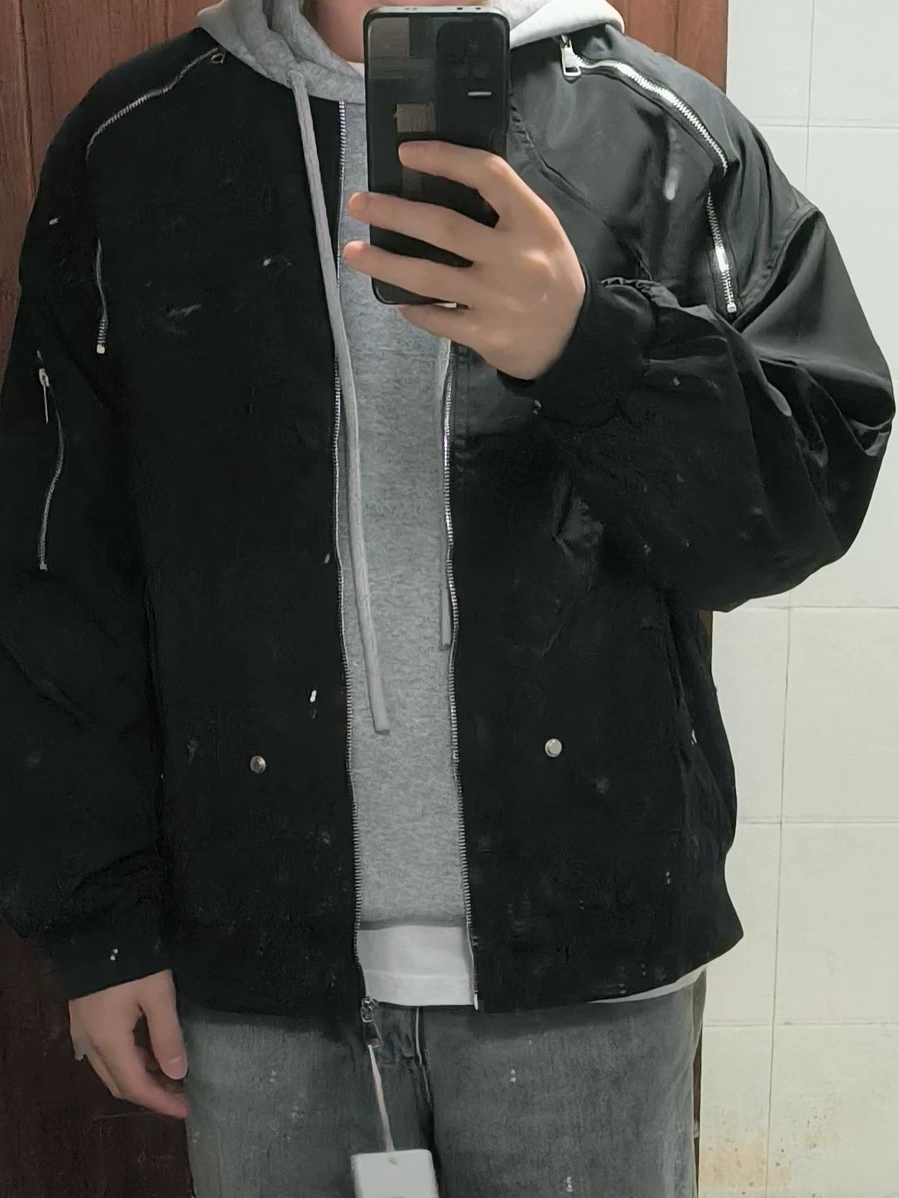 这件夹克质量没得说,质感也不错,黑色上身很显白,而且真的不会显得臃肿,很不错。面料做工都很好,很满意,衣服很合适。里面叠穿卫衣或者T恤都很不错,上身整个人都酷酷的~ (图片来自网络,侵删)