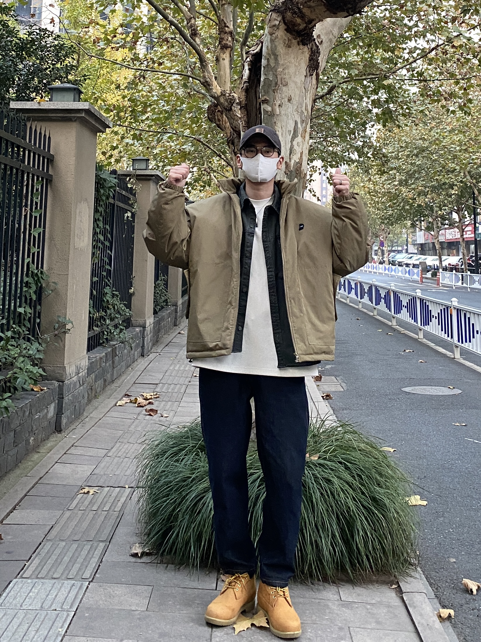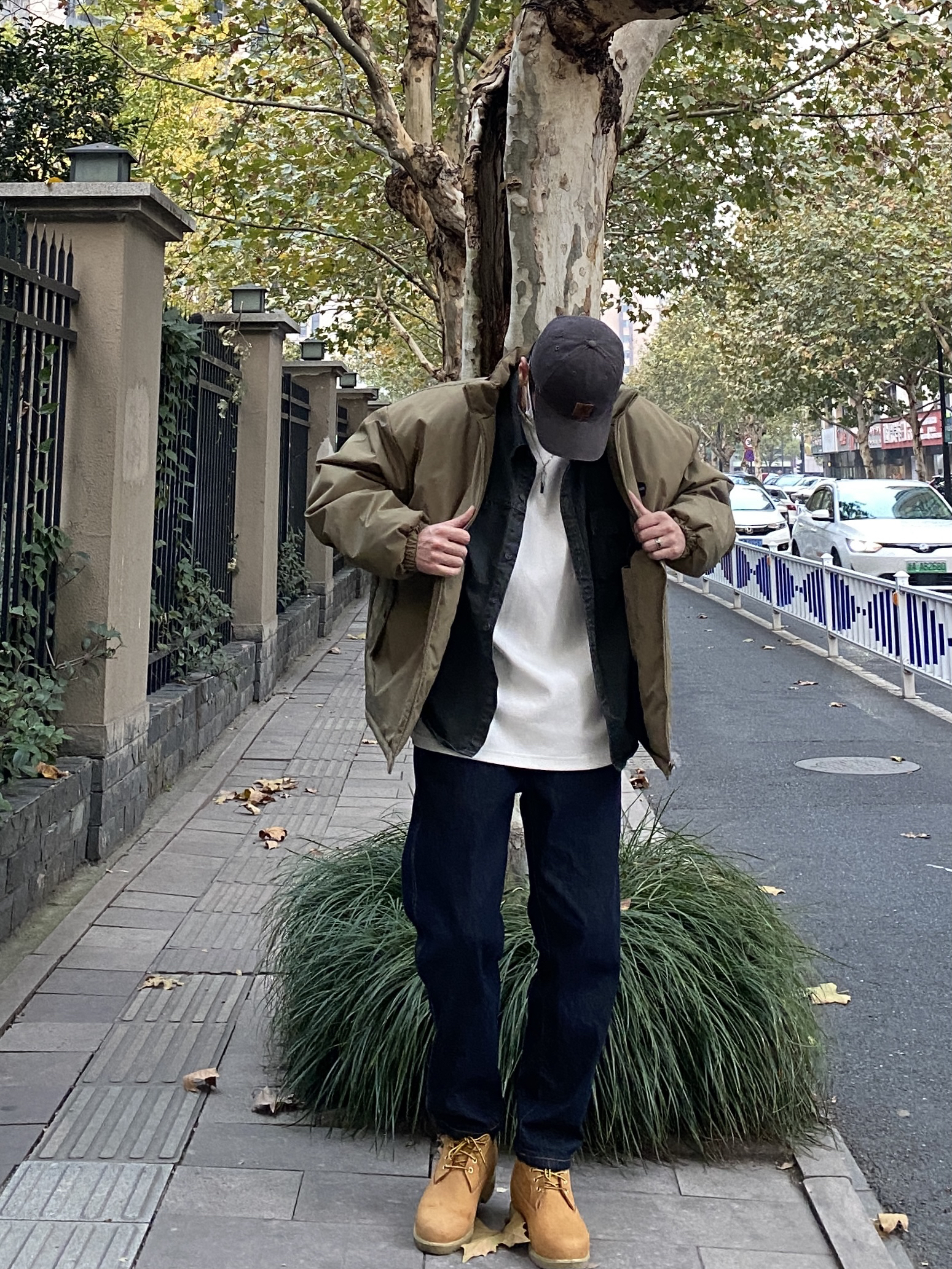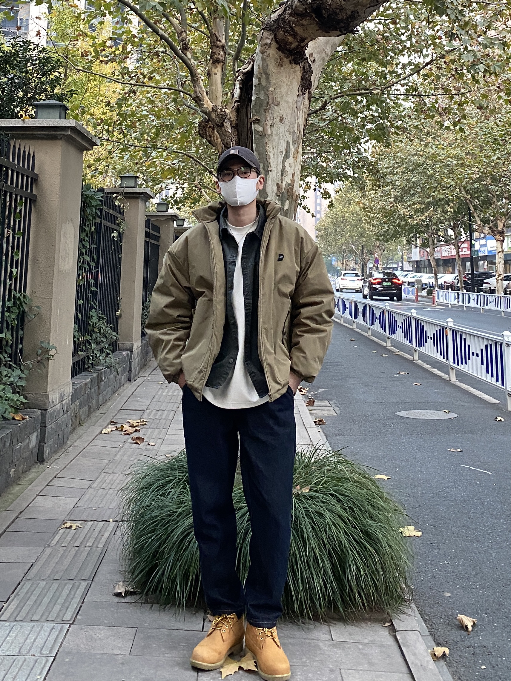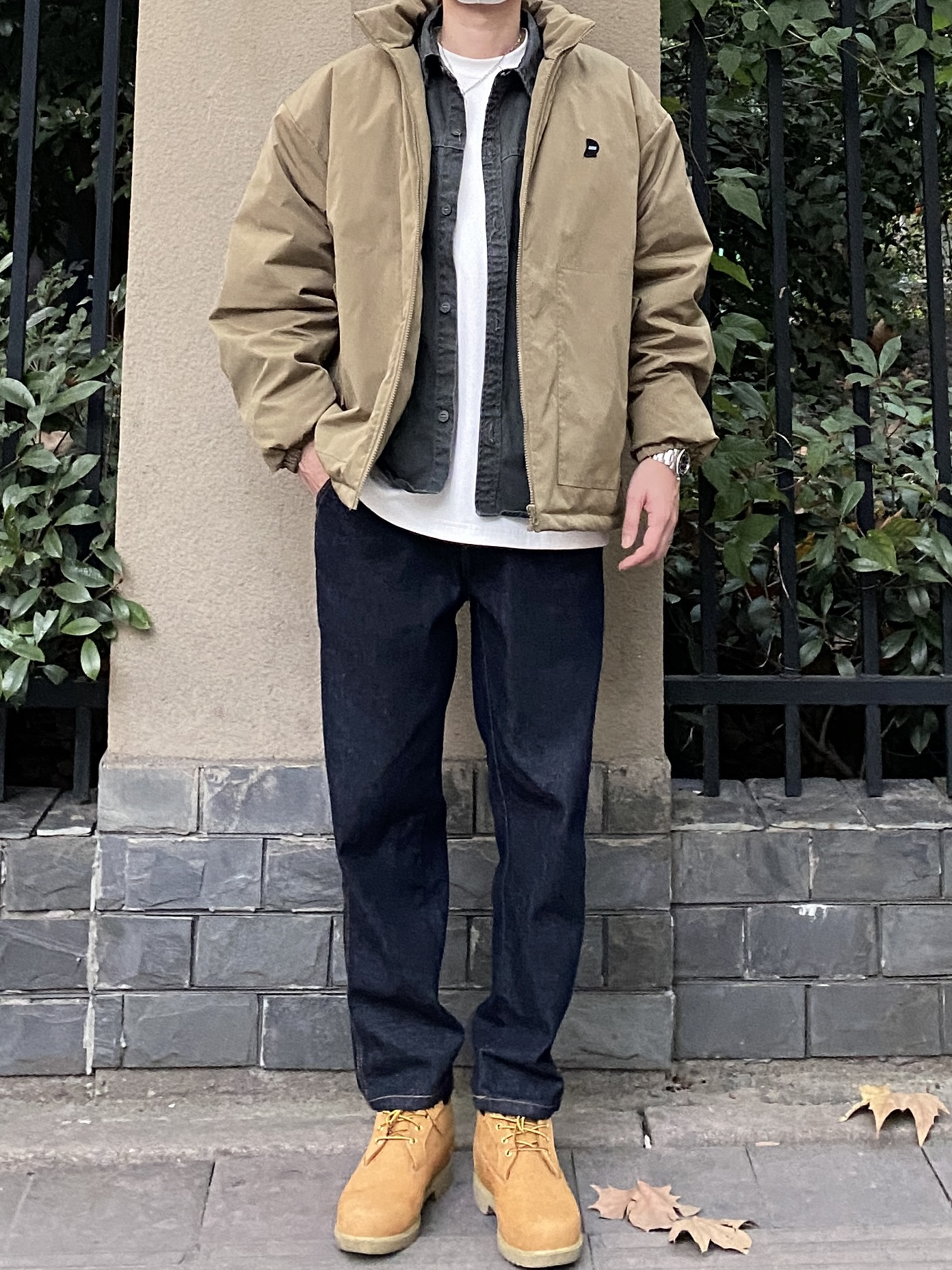 今天这套先用深灰色水洗工装衬衫做内搭,裤子选择不挑腿型的直筒原色牛仔裤,鞋子上脚硬汉必备的timberland大黄靴,接着套上绿色宽松阔版重磅立领棉服夹克,最后戴一顶卡哈特做旧棒球帽,OK,出门看看搭配效果吧! - 今日穿搭 衣服裤子:NICE LILI 鞋子:timberland