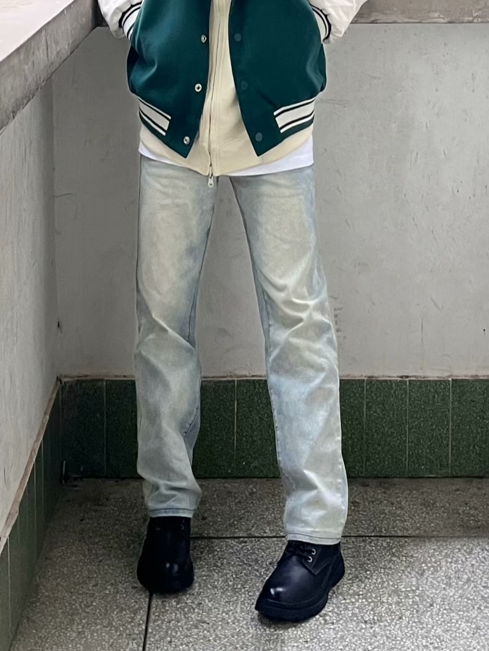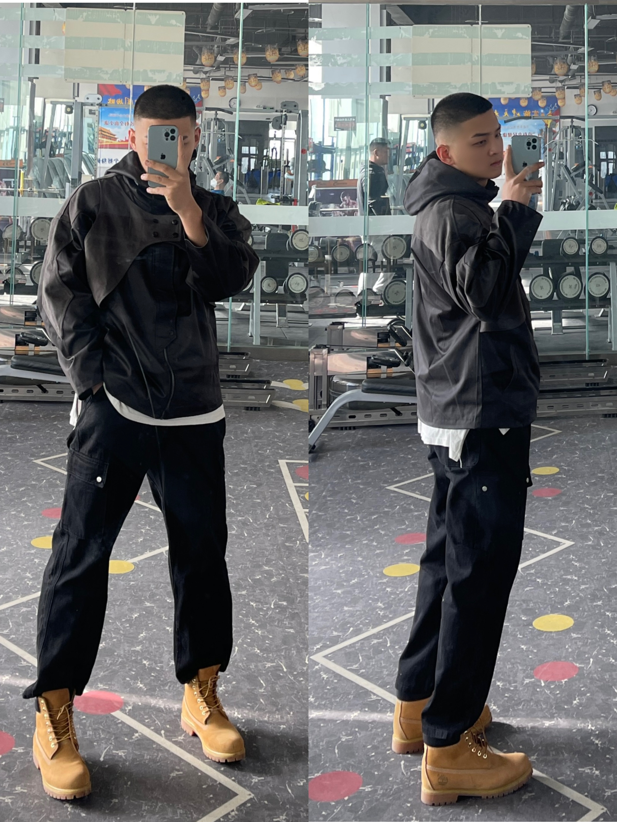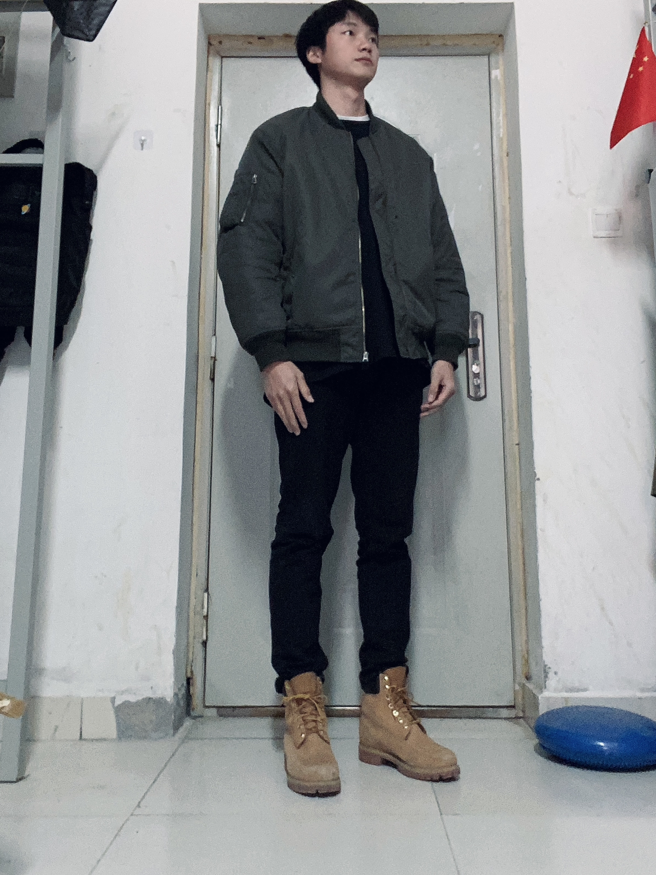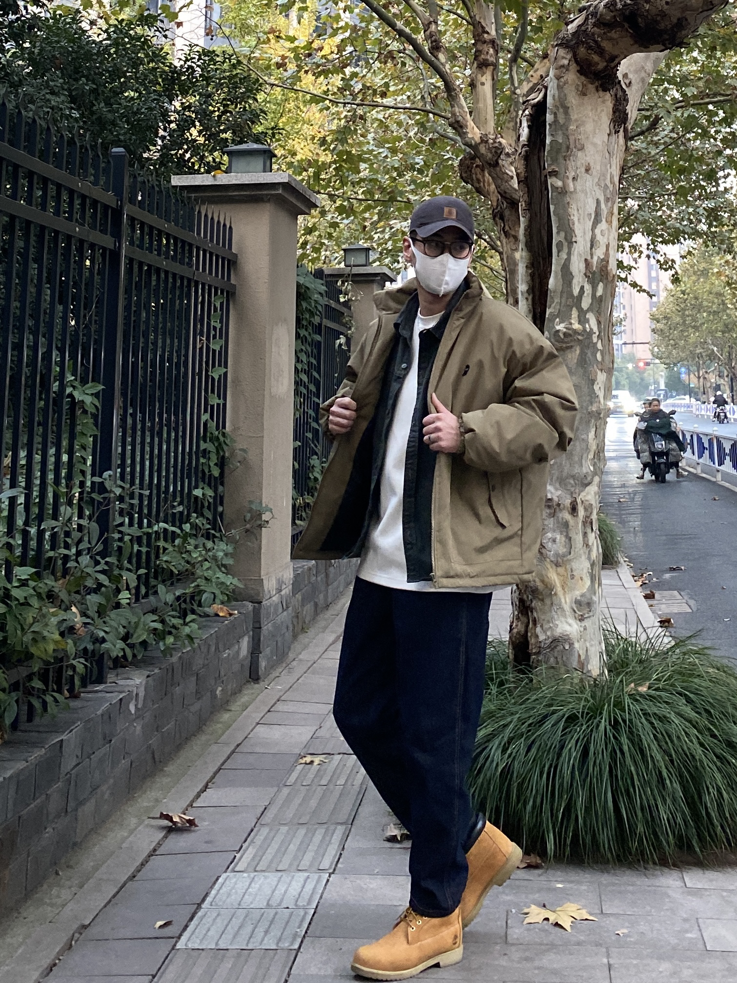 今天这套先用深灰色水洗工装衬衫做内搭,裤子选择不挑腿型的直筒原色牛仔裤,鞋子上脚硬汉必备的timberland大黄靴,接着套上绿色宽松阔版重磅立领棉服夹克,最后戴一顶卡哈特做旧棒球帽,OK,出门看看搭配效果吧! - 今日穿搭 衣服裤子:NICE LILI 鞋子:timberland