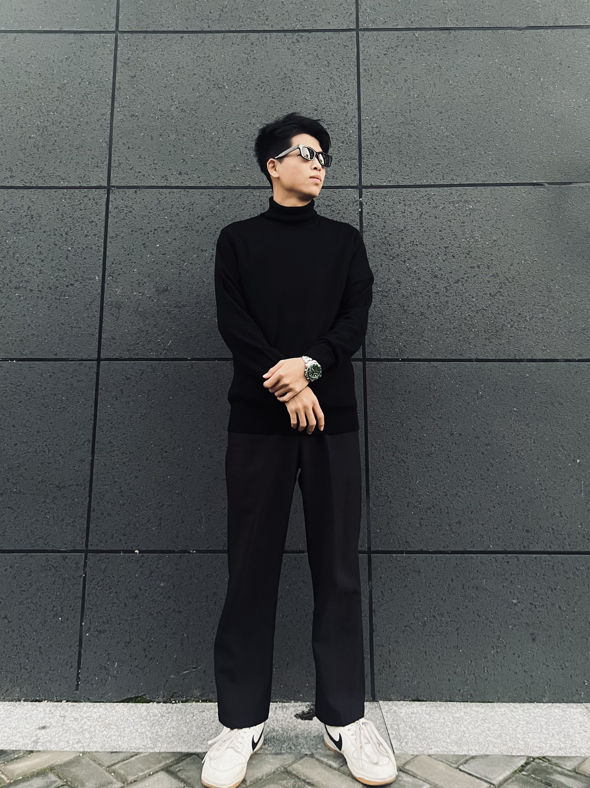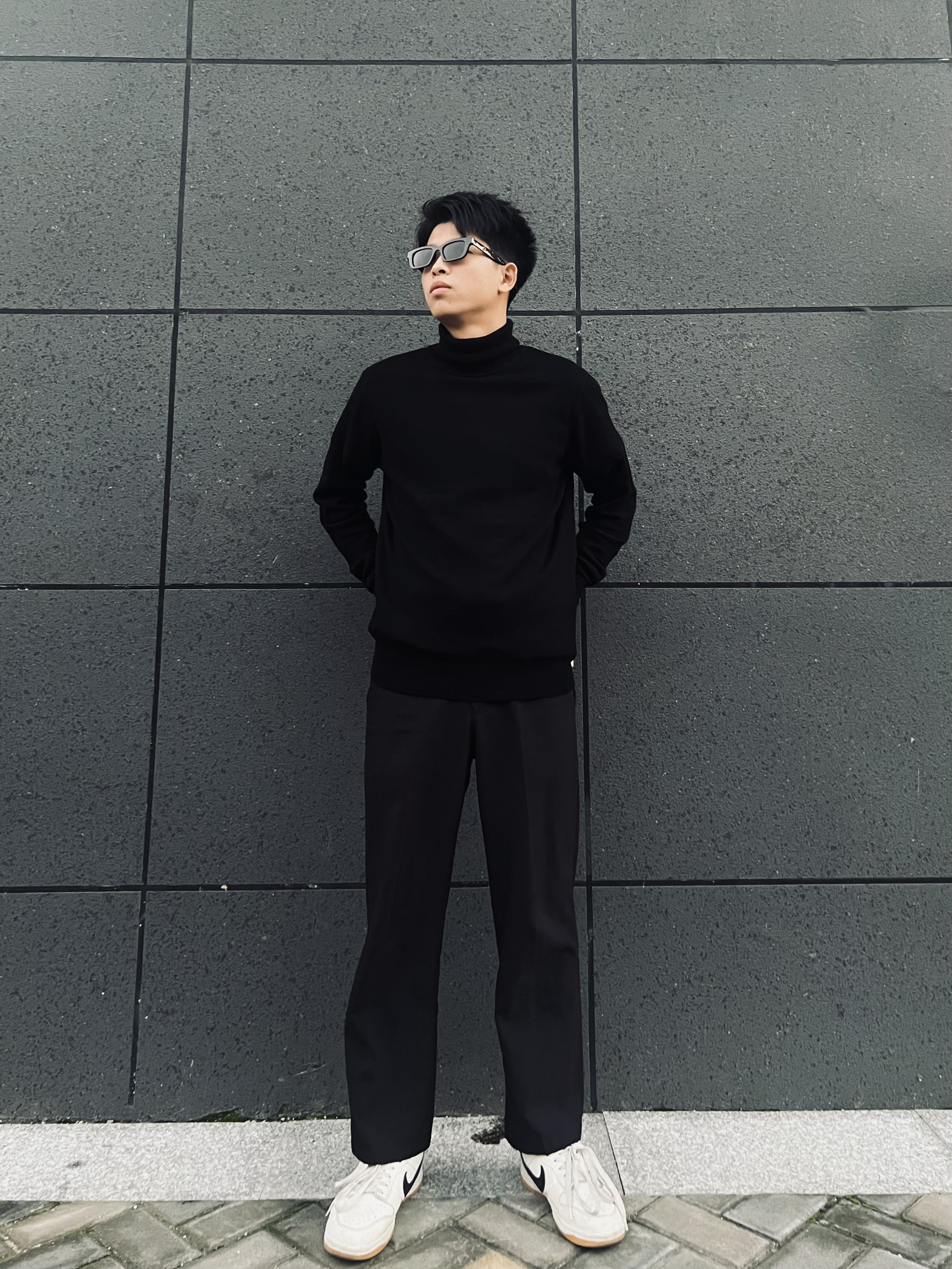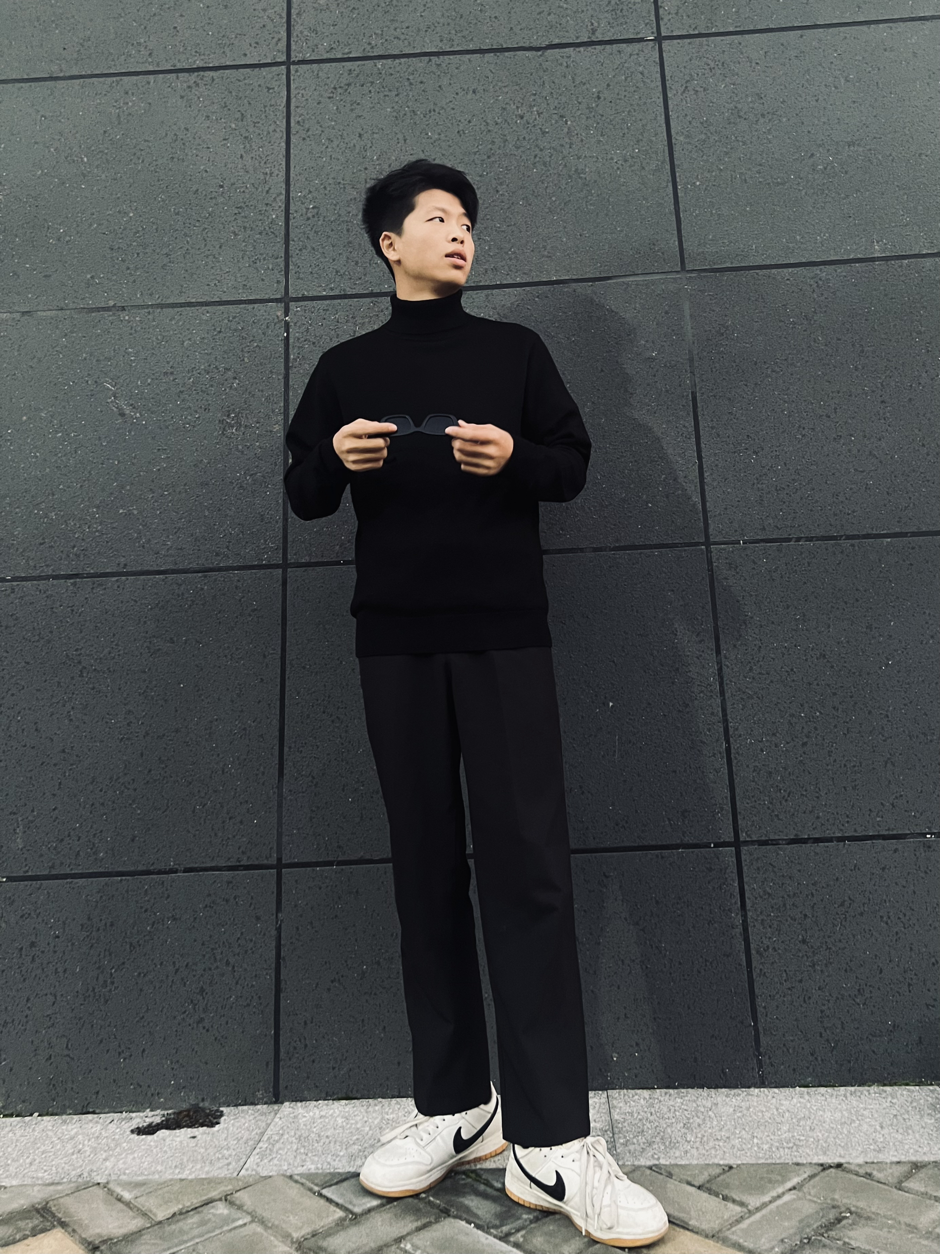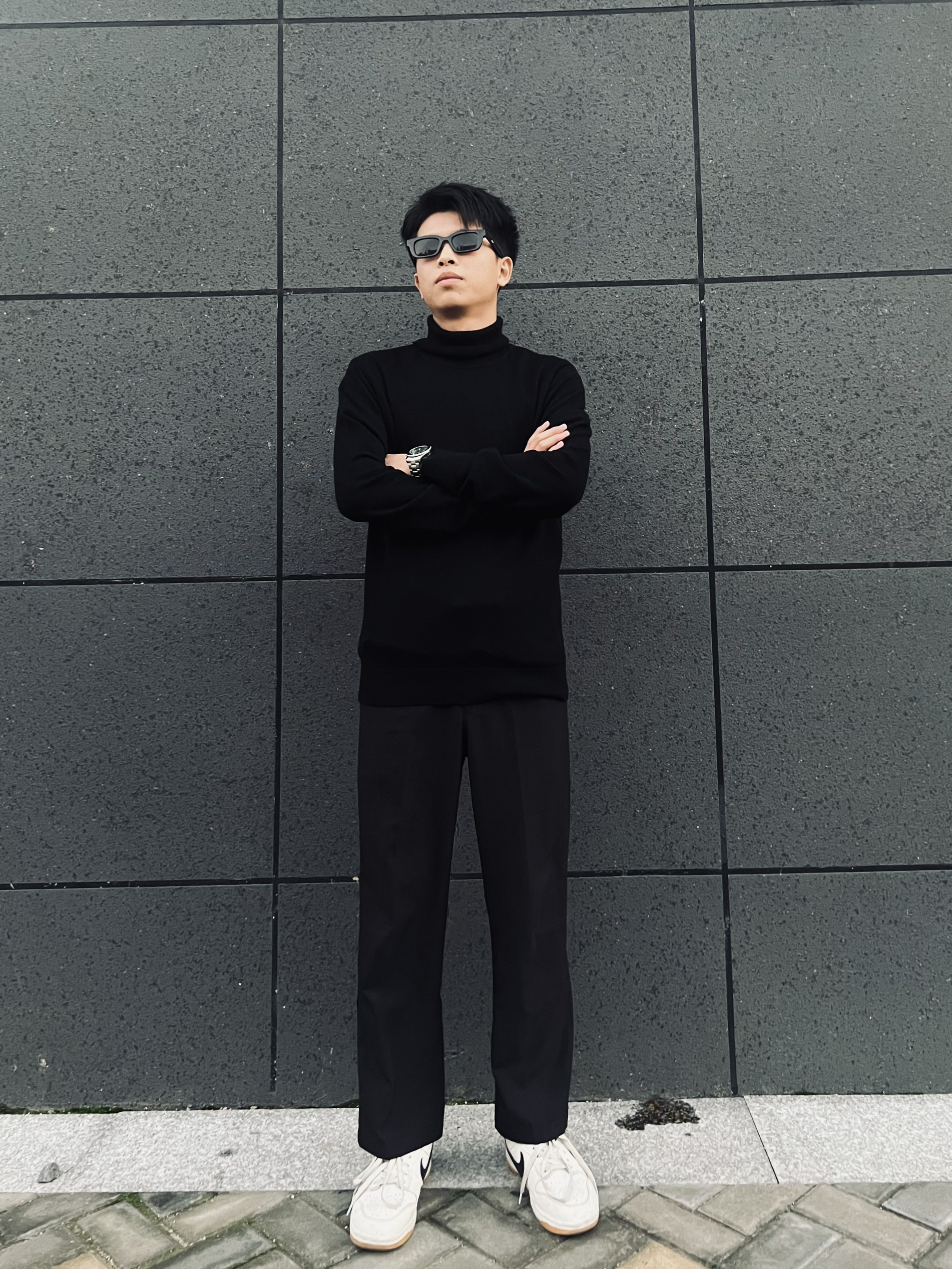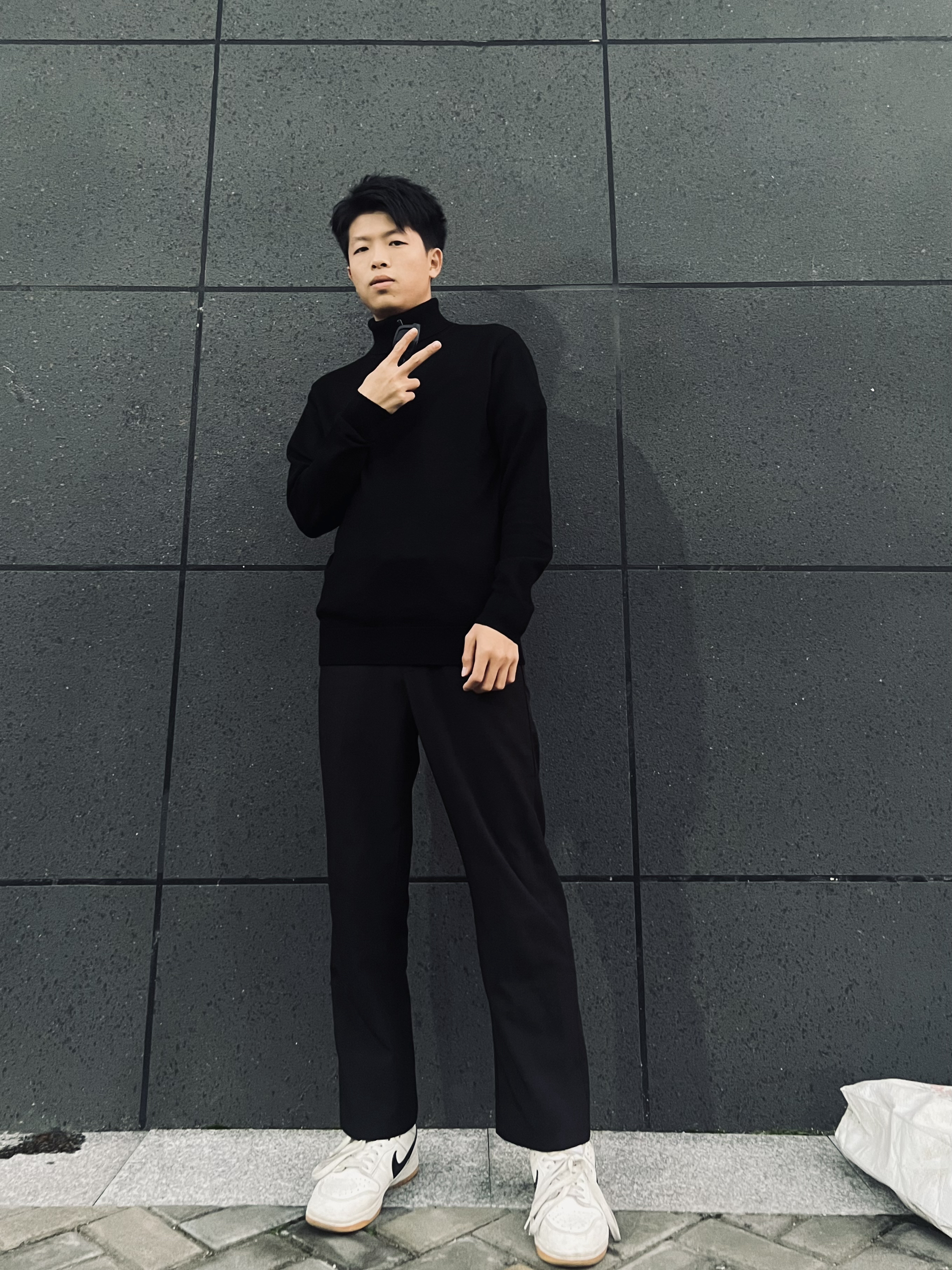 哈喽👋大家好,这里是挽晨 今天搭配一套商务休闲风 上衣👔搭配的是七匹狼的高领休闲长袖毛衣,衣服版型比较贴身,早秋穿毛衣还是比较合适的,高领的防风设计,好看也实用 裤子👖今天搭配的是黑色的西装裤,西装裤不仅可以搭配西装,这样搭配也是酷酷的呀,百搭西装裤、版型嘎嘎正! 鞋子👞搭配小白鞋即可,让整体闲的不那么单调