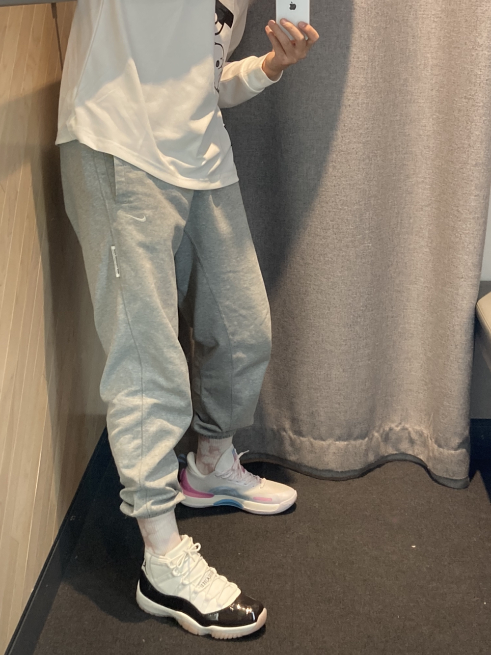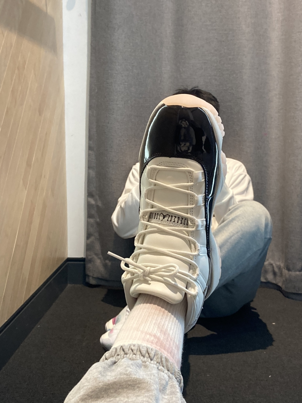 兄弟们这谁还不是个猛男? aj11樱花康扣太有细节了 鞋底樱花🌸加上漆皮鞋面巧克力色 漆皮面积也刚好 搭配束脚裤和小粉色袜子🧦 尺码正常和平时板鞋都一样 秋冬穿yyds今年过年🧨就他了