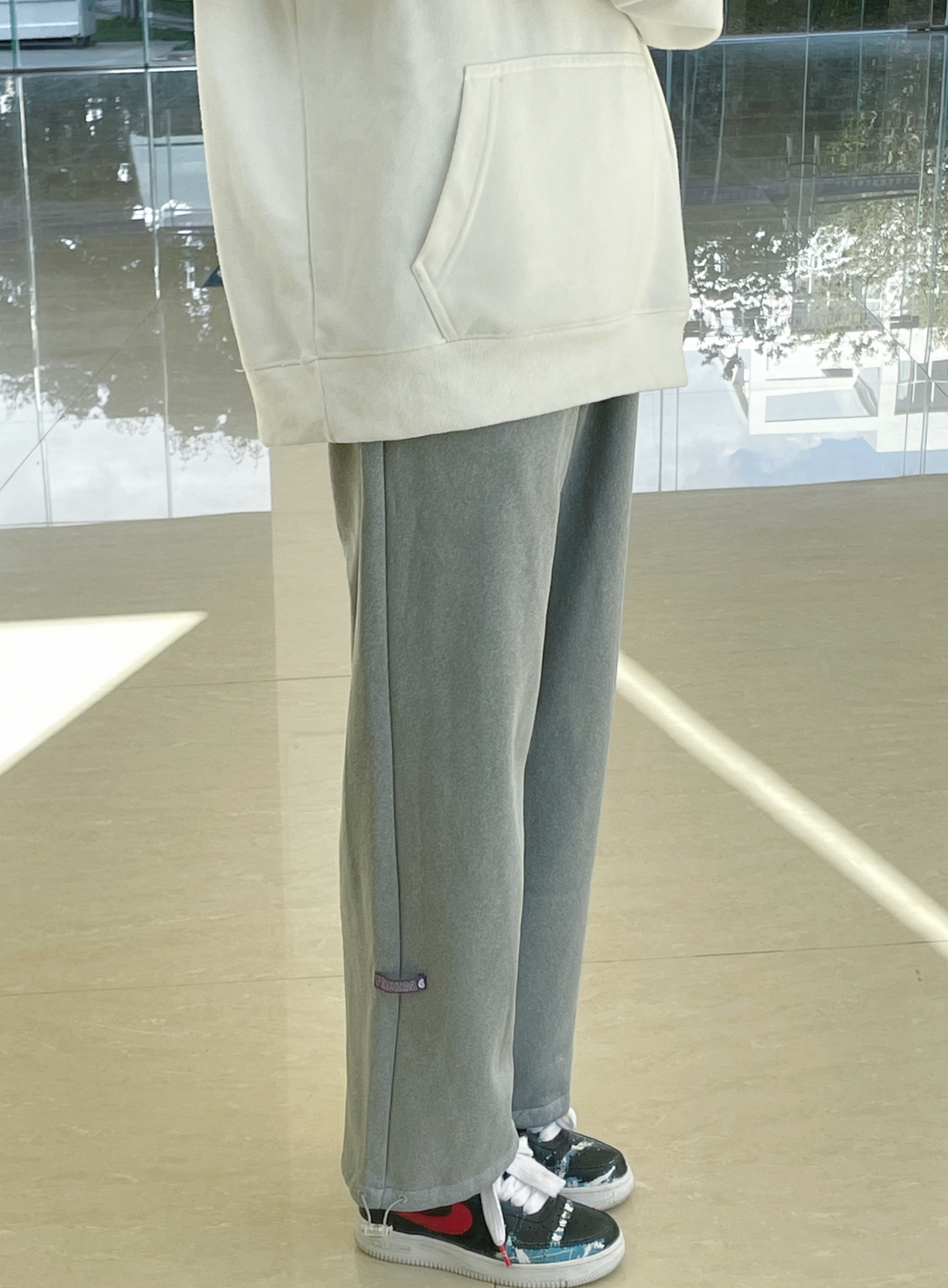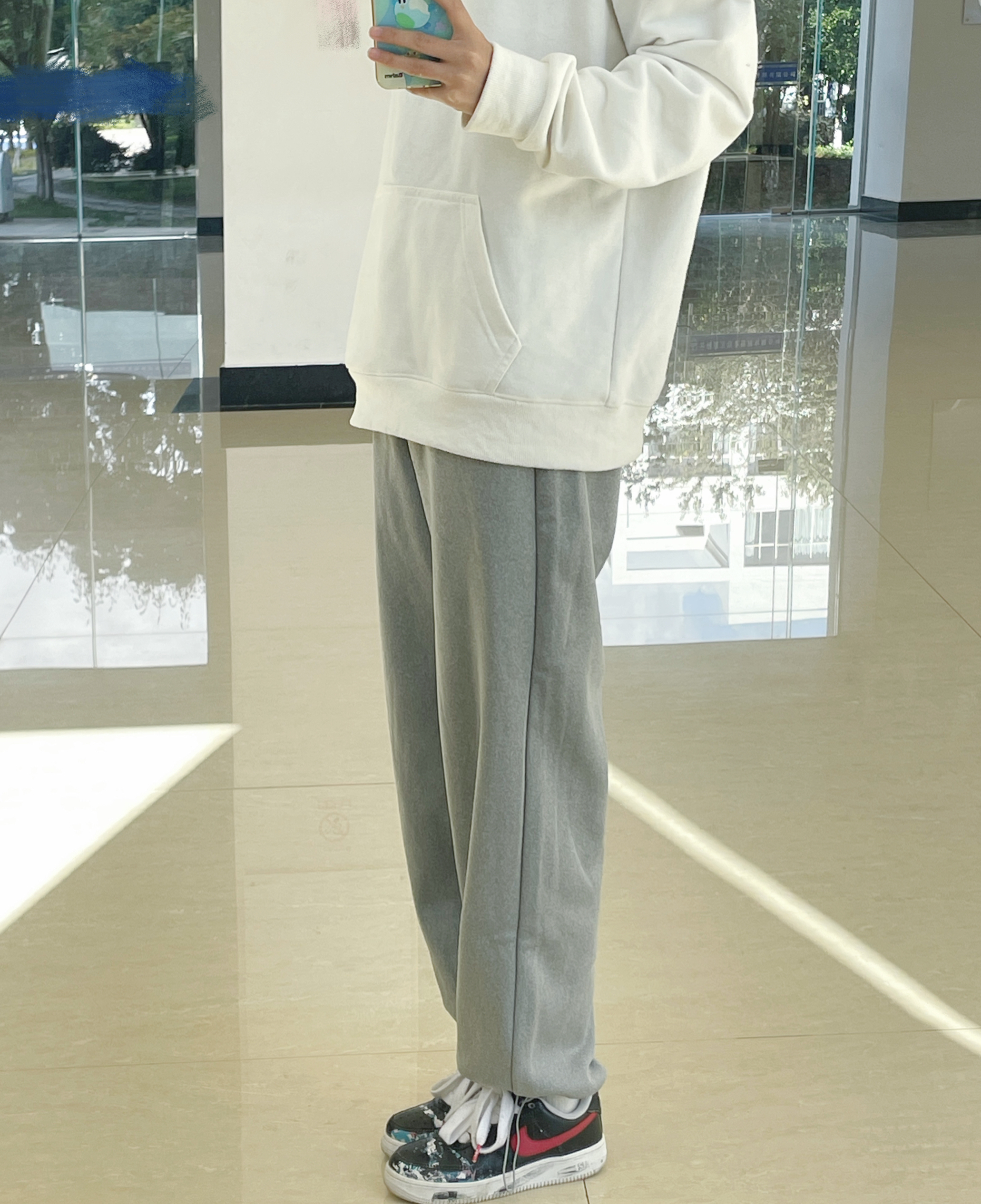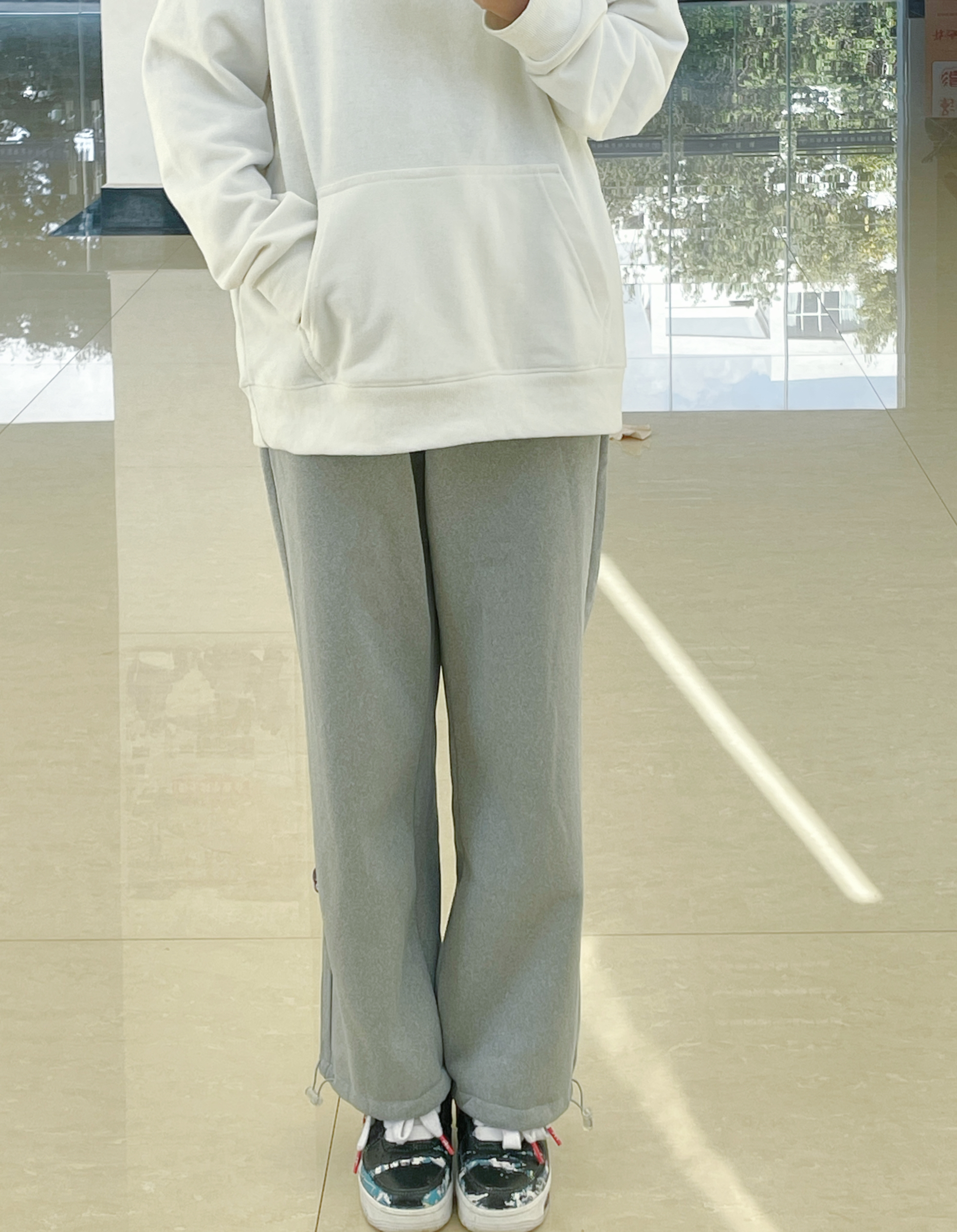 准者的这条运动裤真的好好看 花灰色 里面有层绒 穿起来很热乎 裤脚做了拉绳设计 可以自己选择束脚还是直筒 俩样都很好看!大学生体育课很推荐穿!