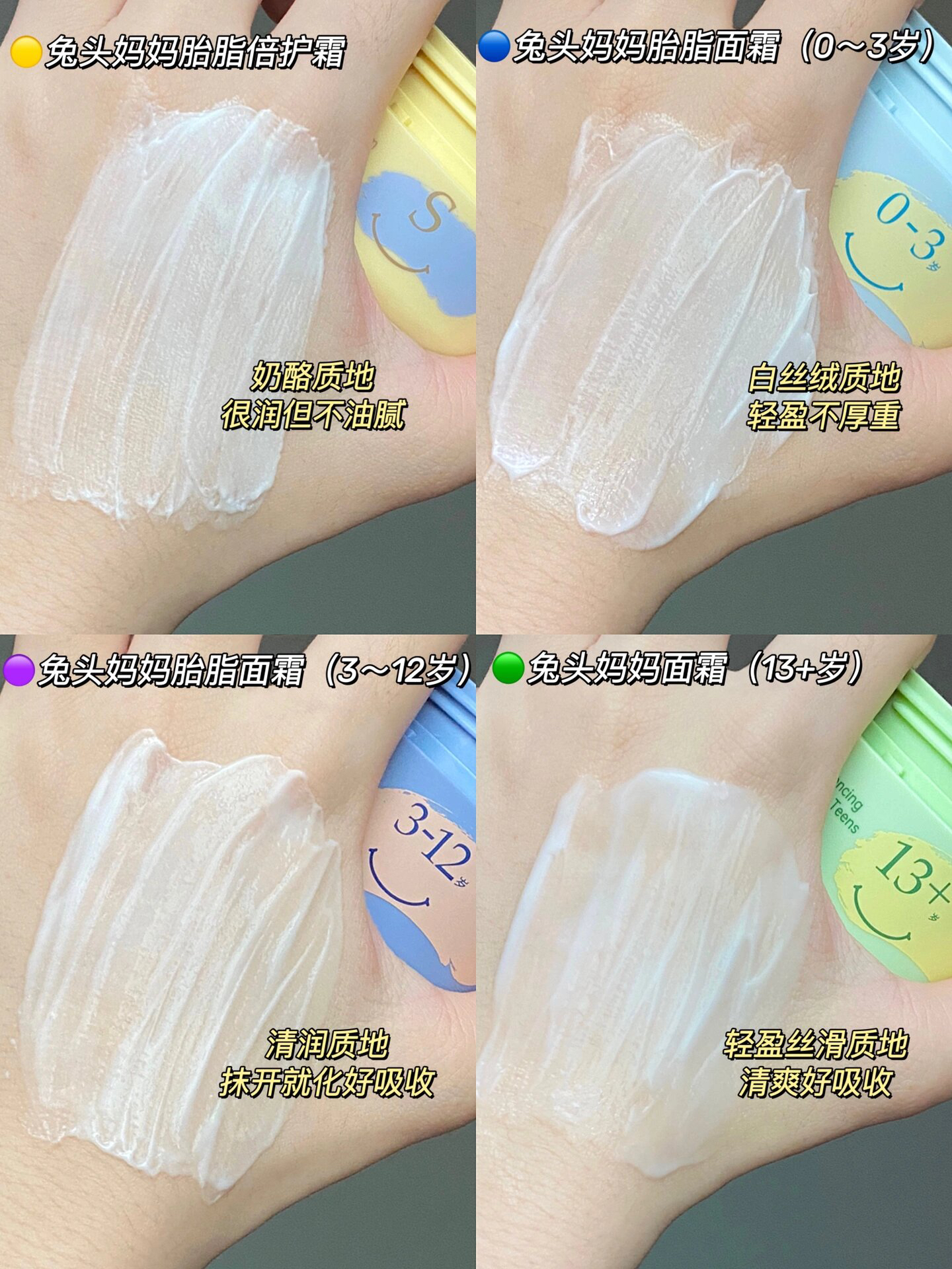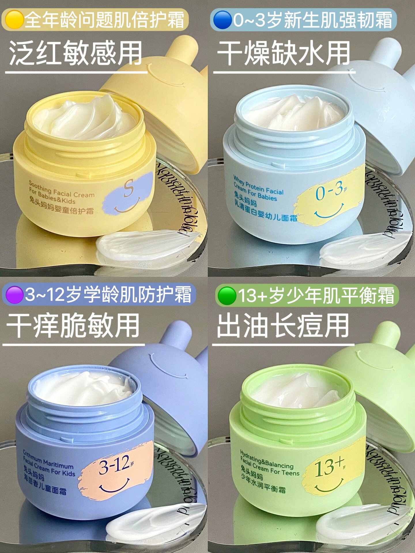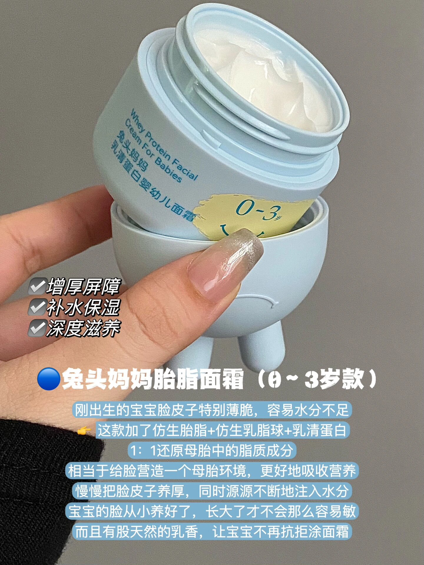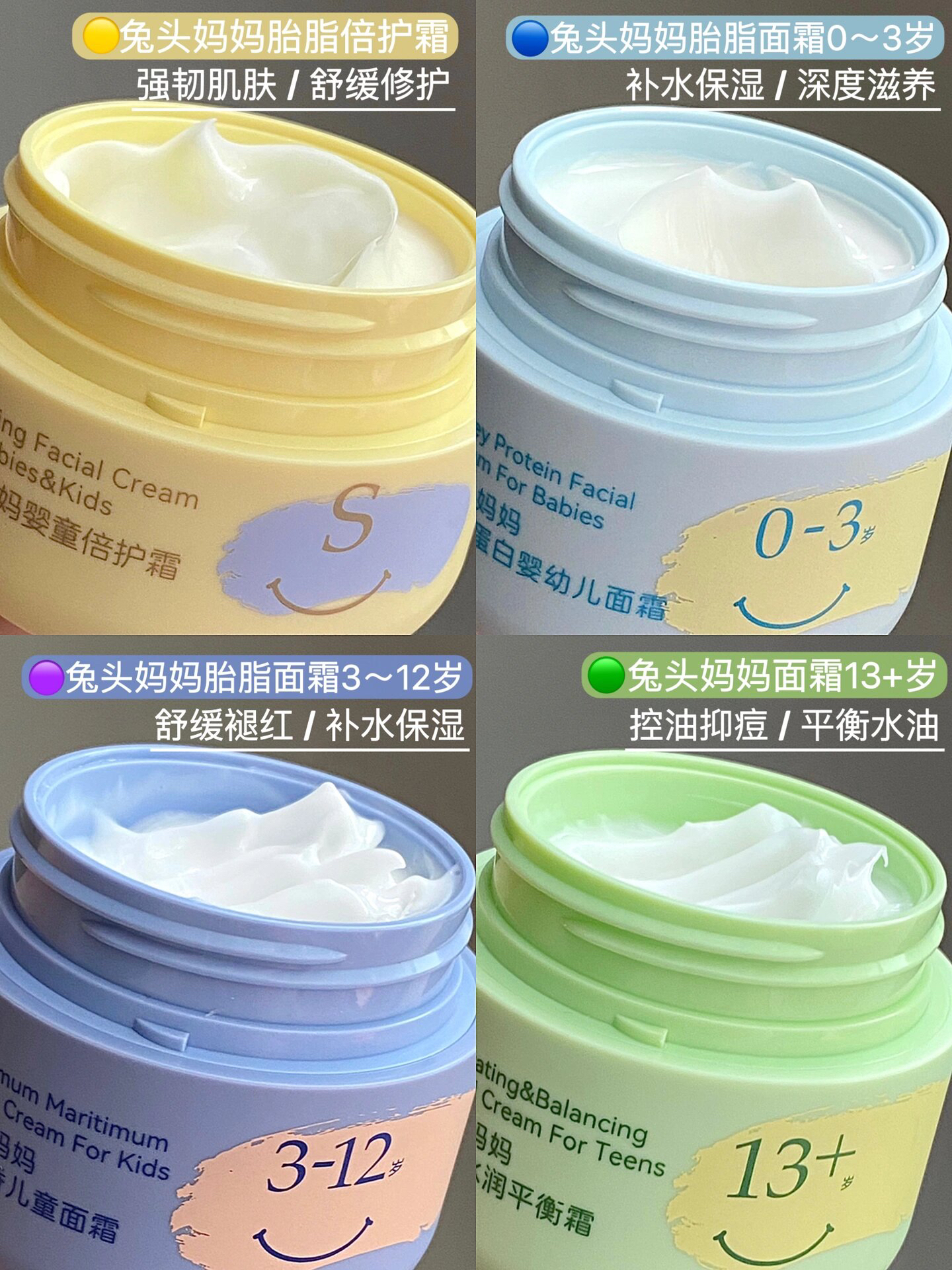 真省妈!包揽宝宝从小到大的面霜!全篇复诵|||很多宝妈宝爸对选宝宝面霜这件事很苦恼 不同年龄、不同肌肤问题要选哪个好? 其实不用想那么多!👉兔头妈妈👈都帮咱们区分好了! 它家是专门做婴童&青少年护肤品的国货品牌 与江南大学&浙江大学两所高校联合研发 每一条产品线都🔖分龄🔖分肤质 更懂每个年龄段的宝宝护肤痛点,对症下药 - 🟡兔头妈妈胎脂倍护霜 适合全年龄段的问题肌宝宝! 皮肤一敏就容易引发干、痒、...