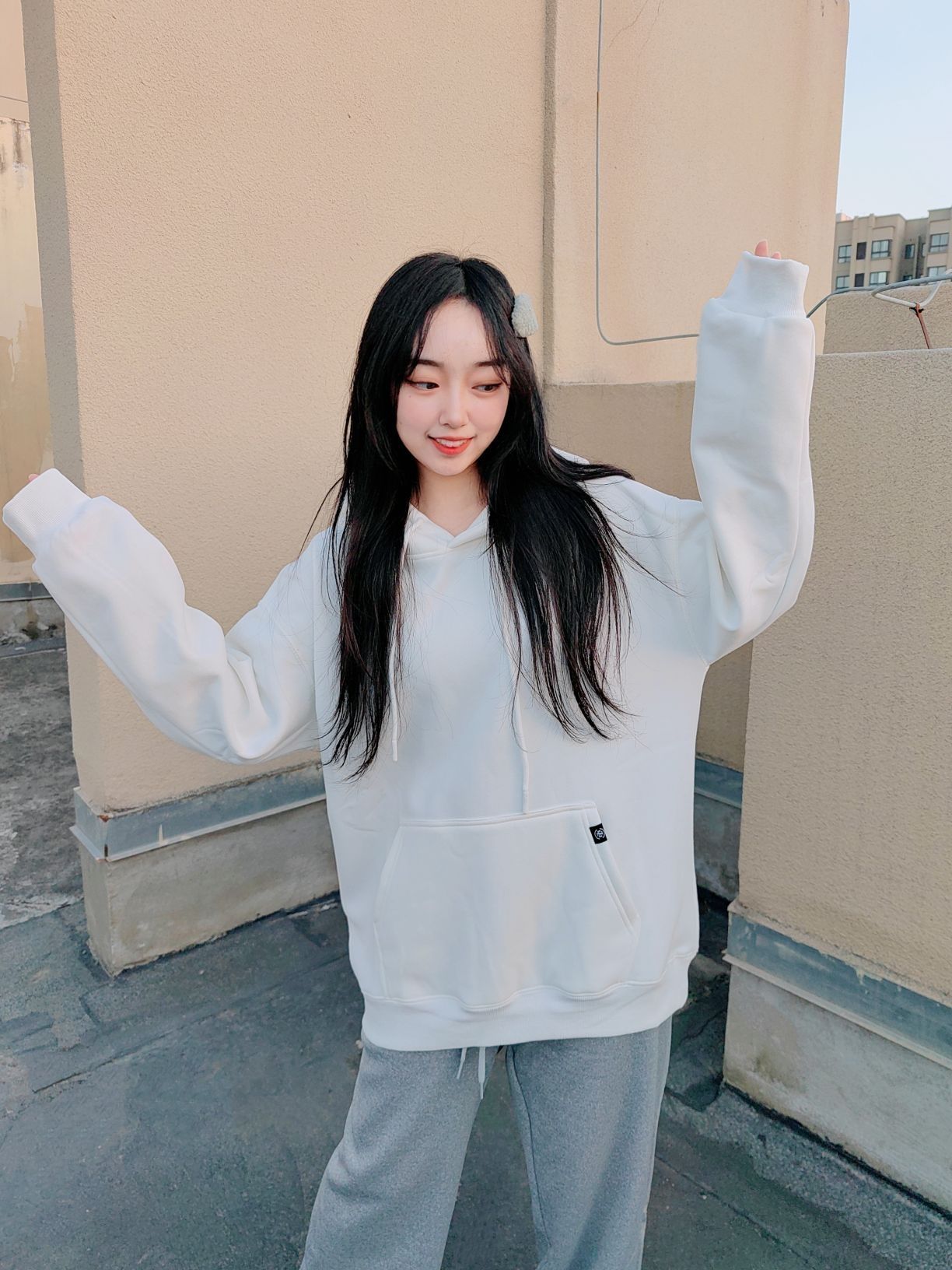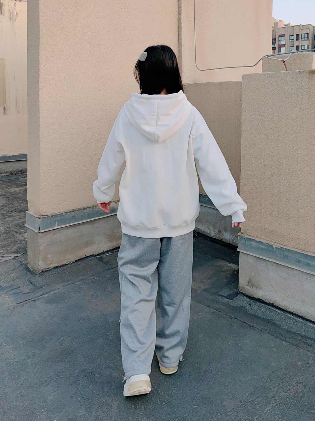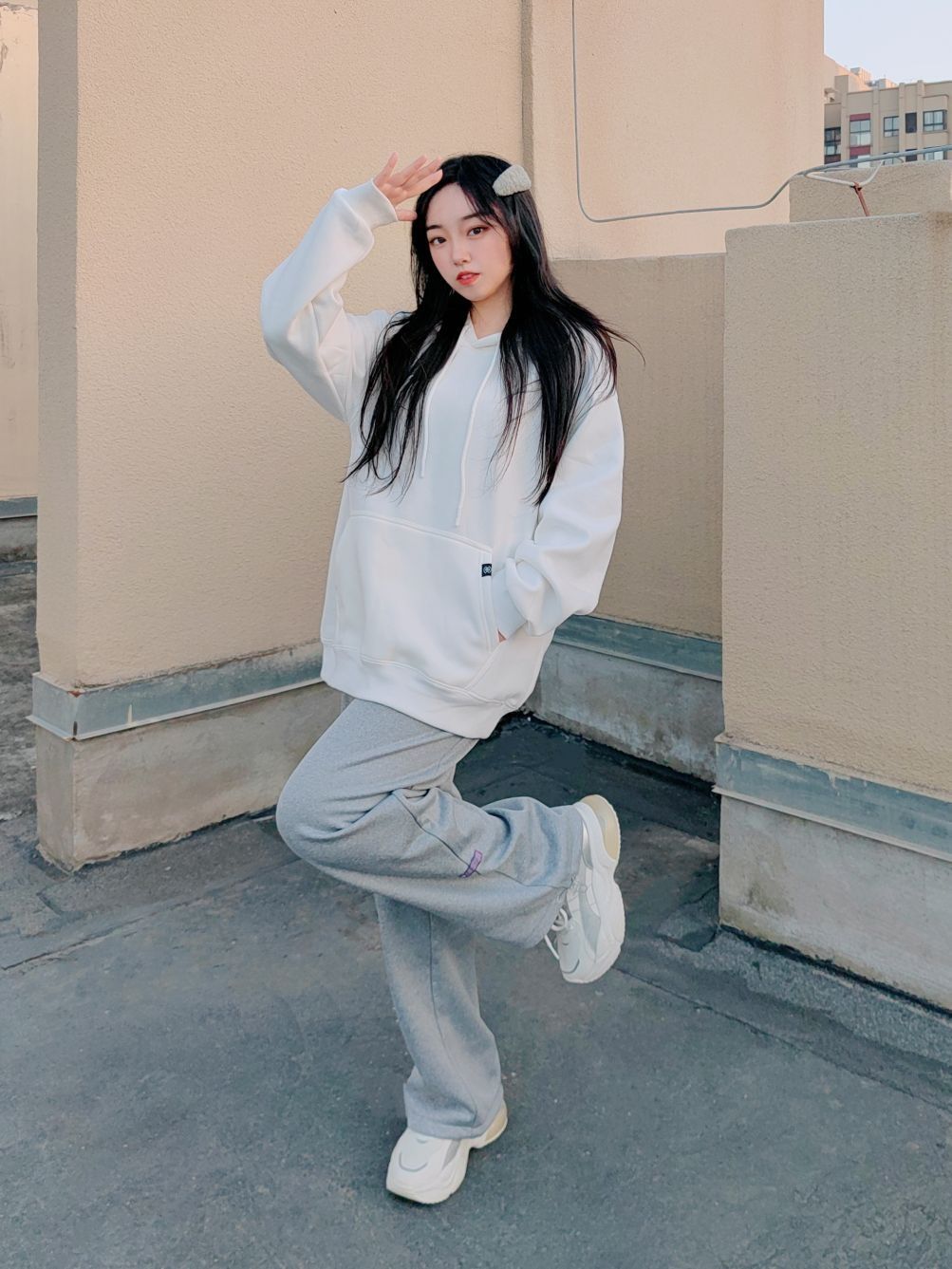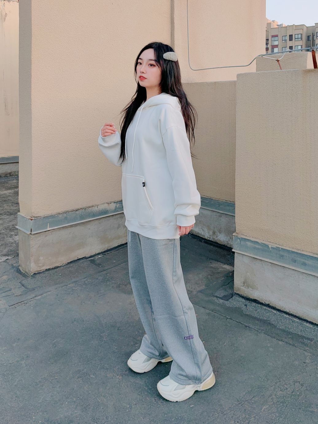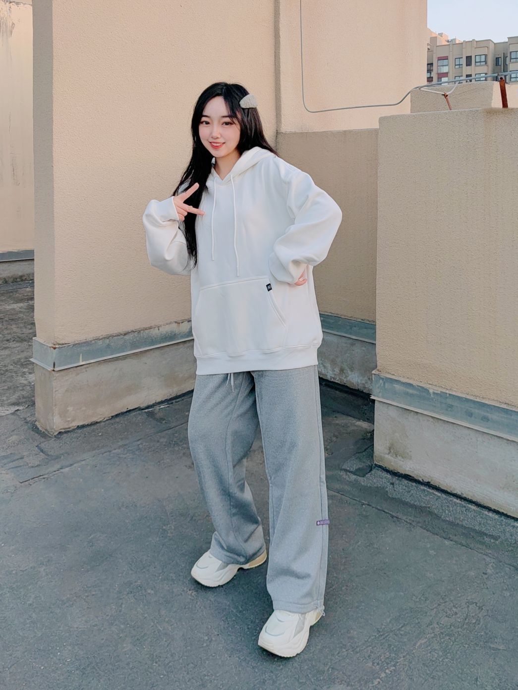 🌞160cm/48kg/L码 ↓ 哈喽,这里是小5的穿搭分享√ 不管般过几次家, 基础款在衣柜里永远有一席之地, 简单的元素和色彩给穿搭留下更多空间~ 白色连帽卫衣洋溢着少年气, 让人轻易地想到校园、操场、青春, 既运动风又很减龄! 灰色运动裤则拥有着休闲感, 不仅能和各种颜色很好地搭配组合, 而且宽松柔软的料子还很遮肉! 衣服裤子都有加绒, 所以在保暖方面也不用担心, 可以很好地适应秋冬户外运动...
