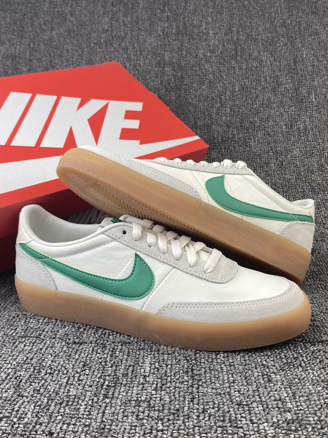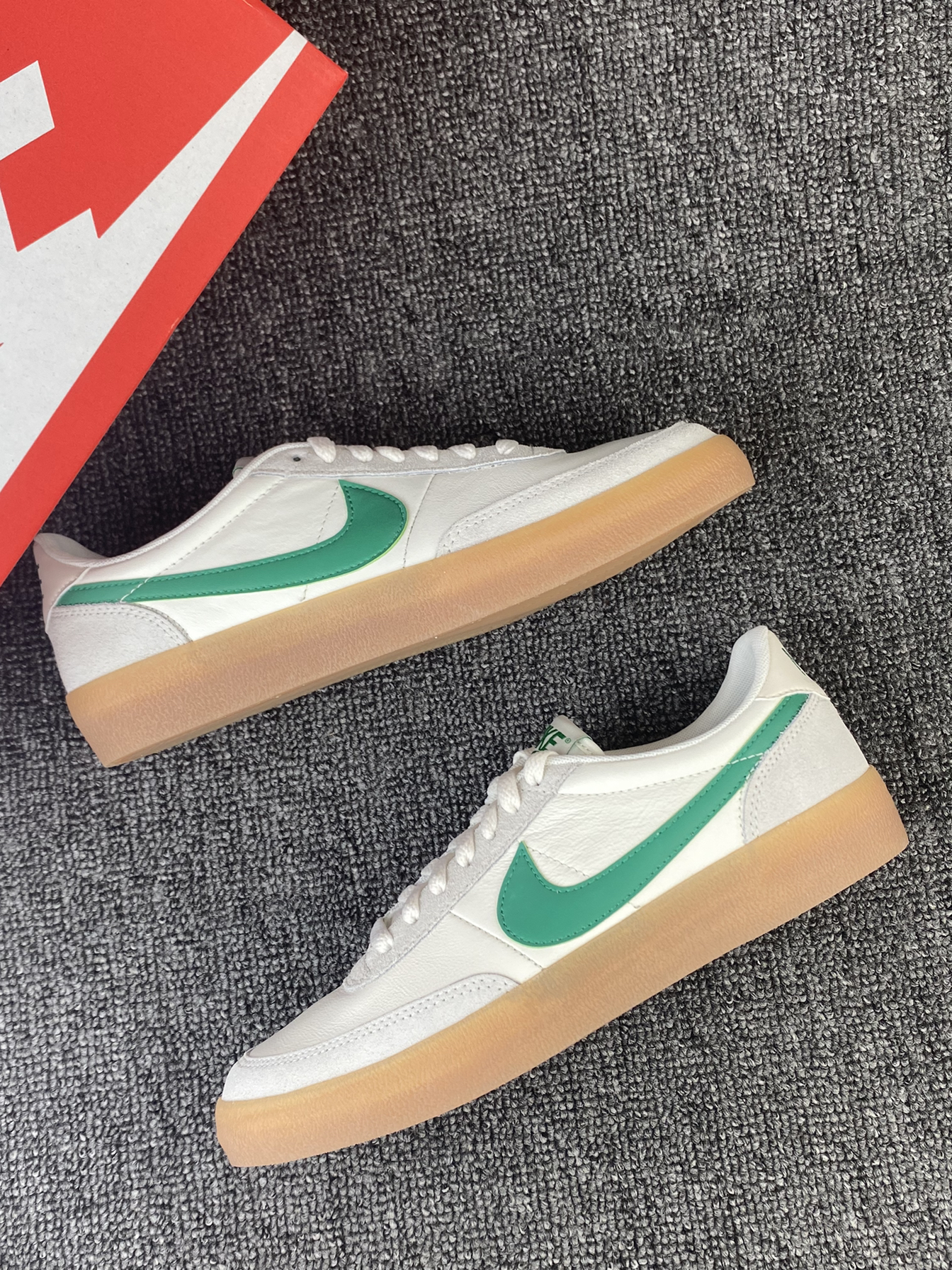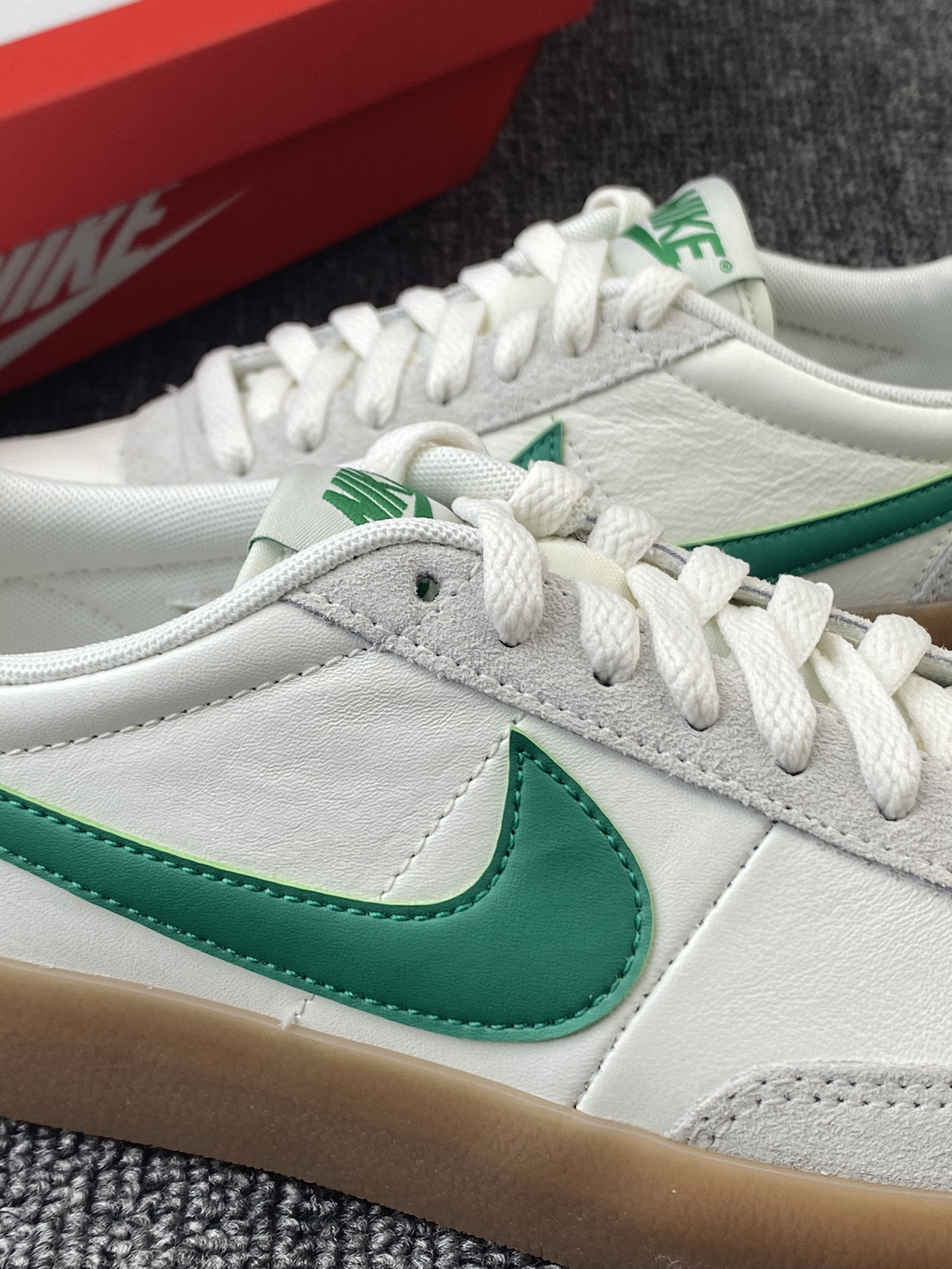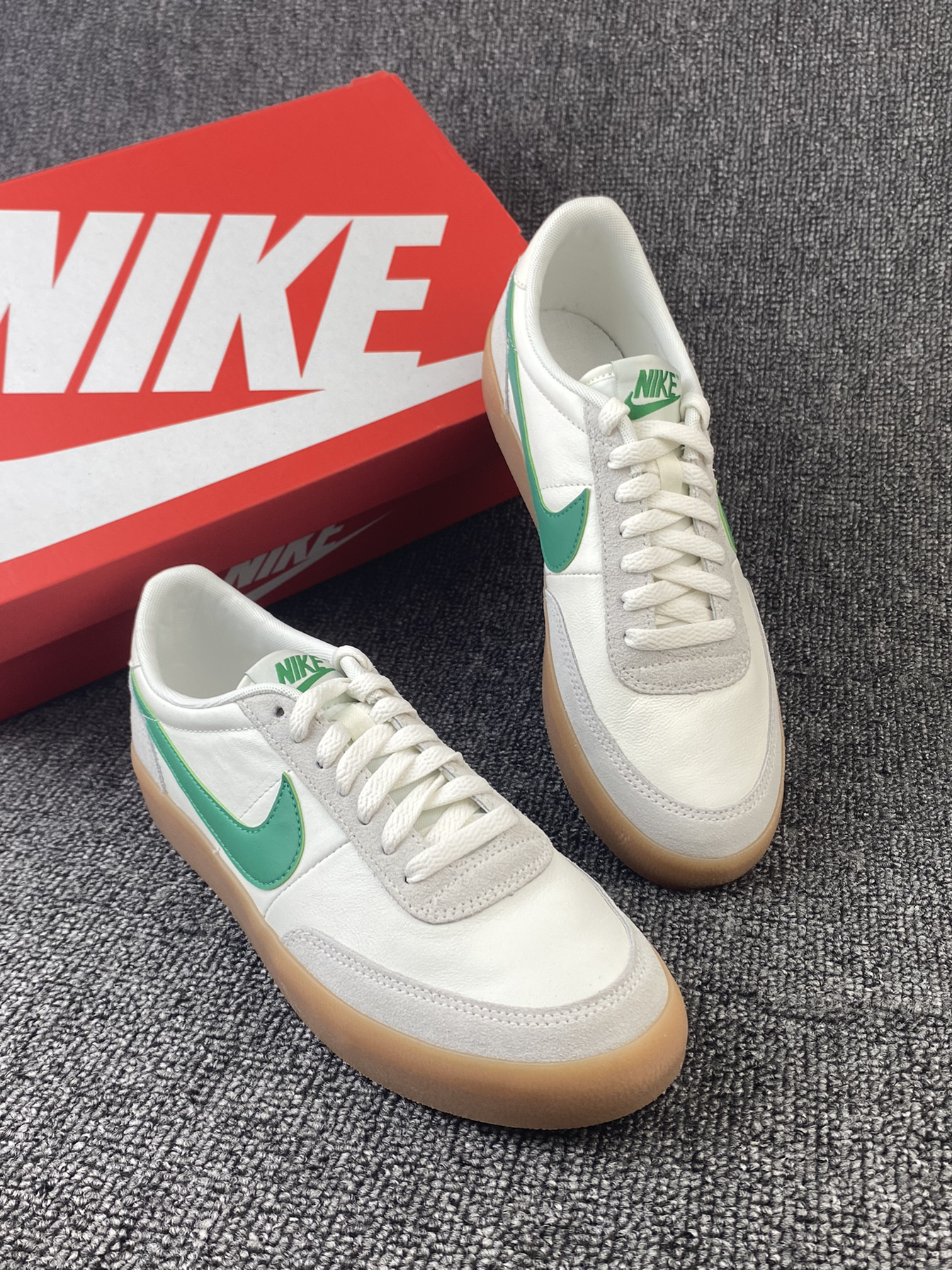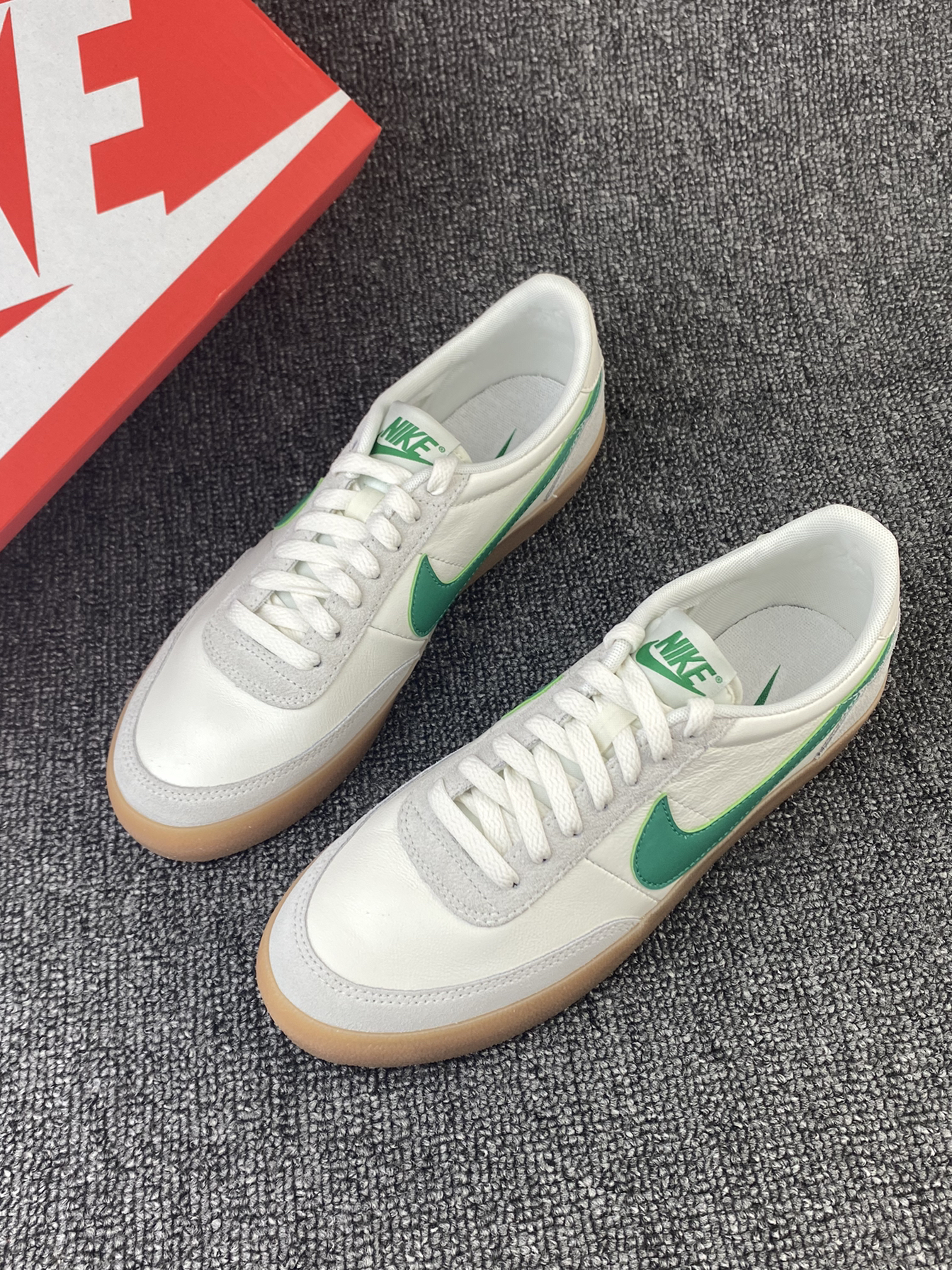 👟Nike Killshot 板鞋 ✨Nike与J.Crew的联名板鞋真的好看!鞋子整体以米白色为主,灰色搭配了鞋身框架,鞋侧的Swoosh点缀,加上生胶色的大底,整体复古感拉满。 🌸鞋面是皮革材质➕麂皮材质拼接的,皮质质感很好也很细腻,麂皮的加持也更耐磨些。中底部分脚感还是不错的,软硬适中,日常通勤、休闲等都足够。 🌟不得不说二开的联名板鞋真的很难得!日常搭配牛仔裤、休闲裤都很好看!尺码方...