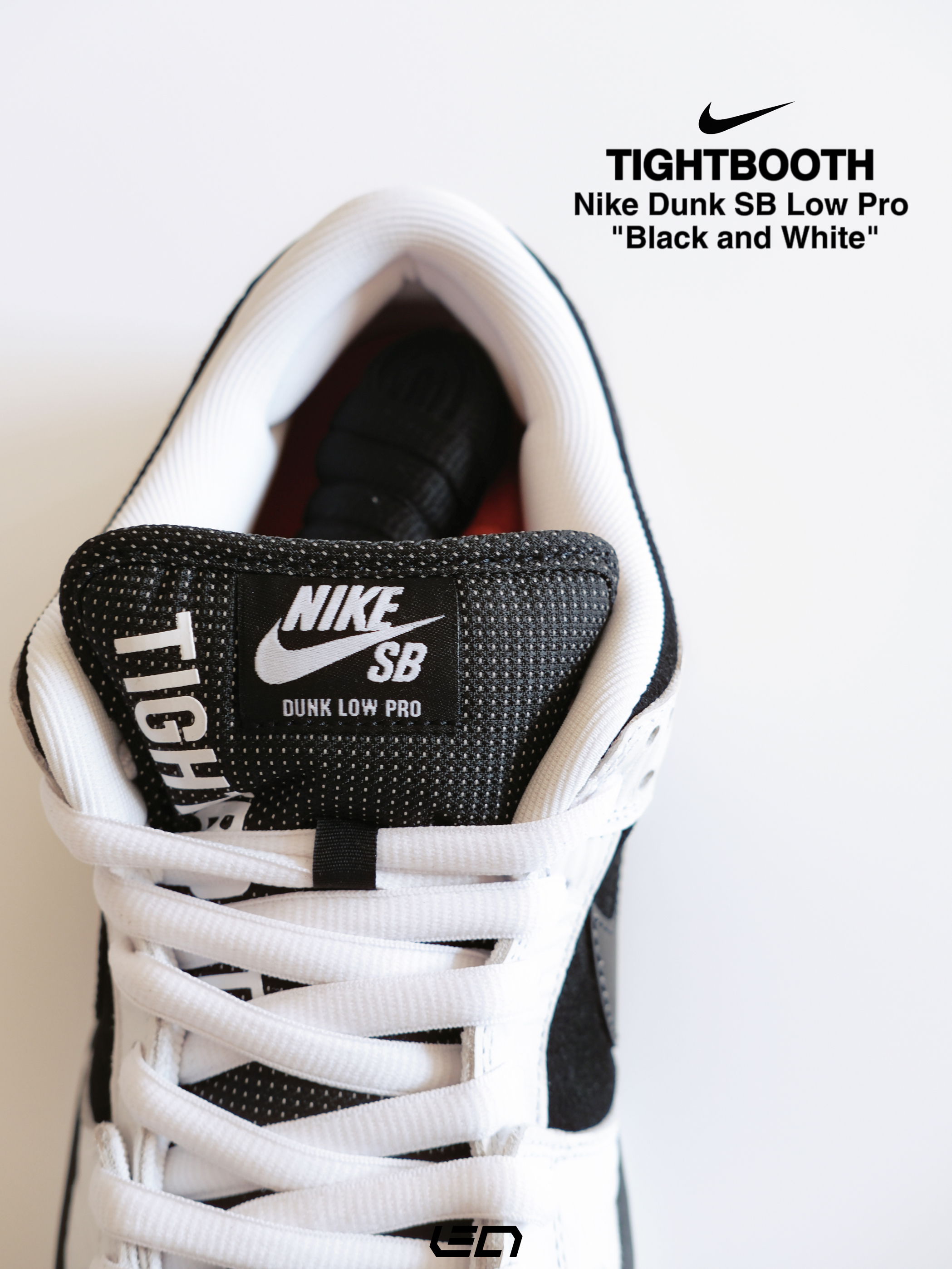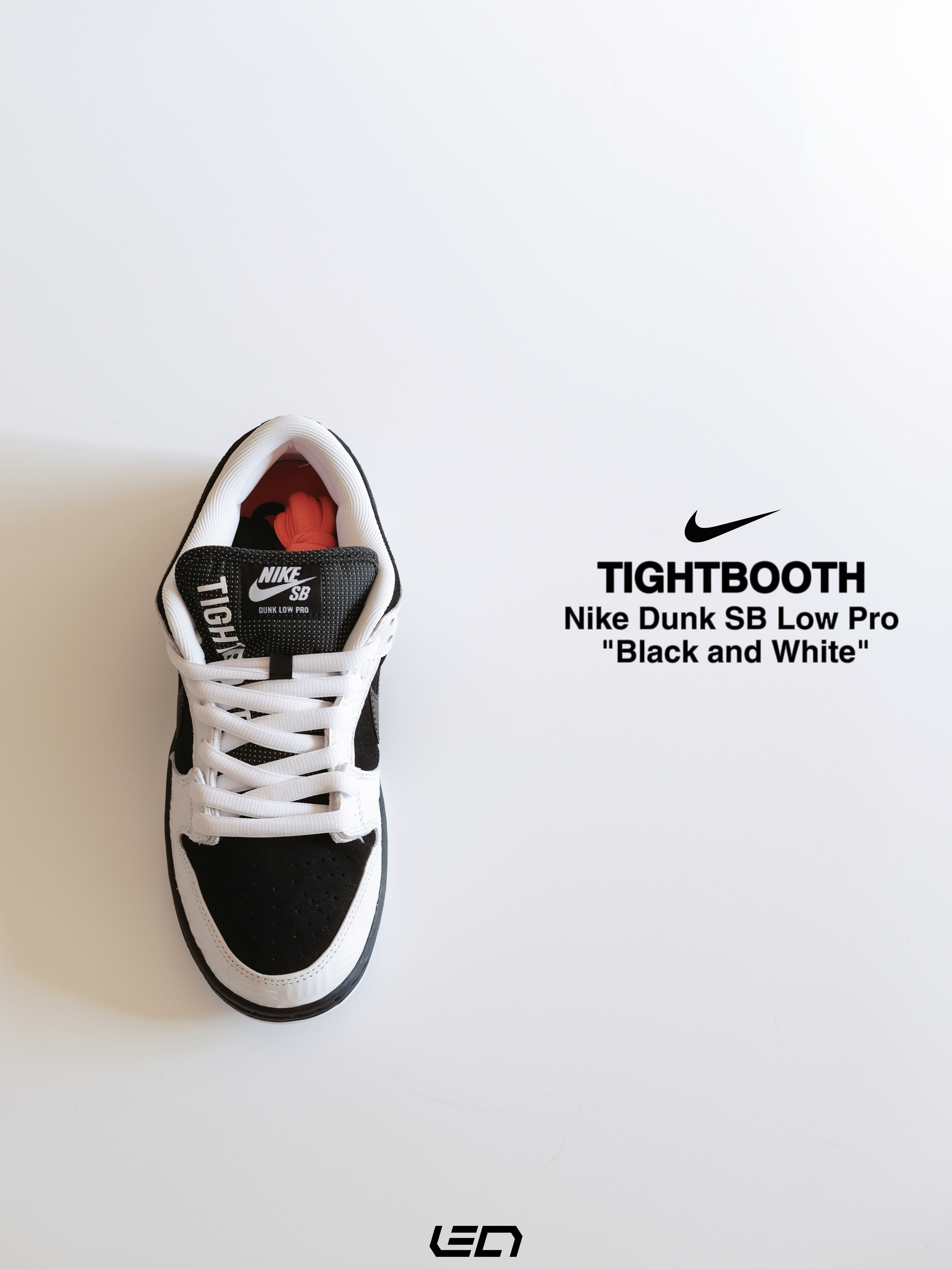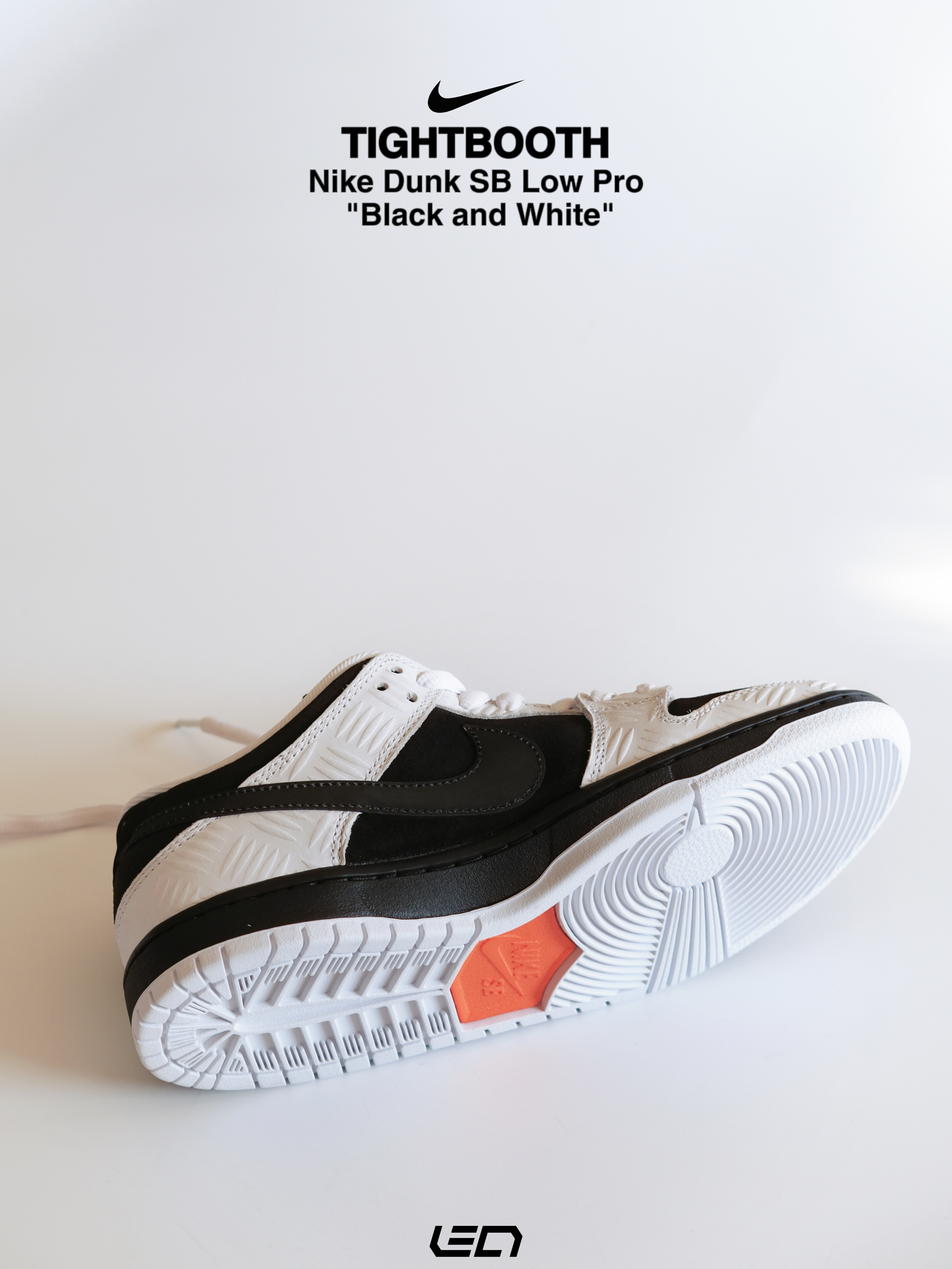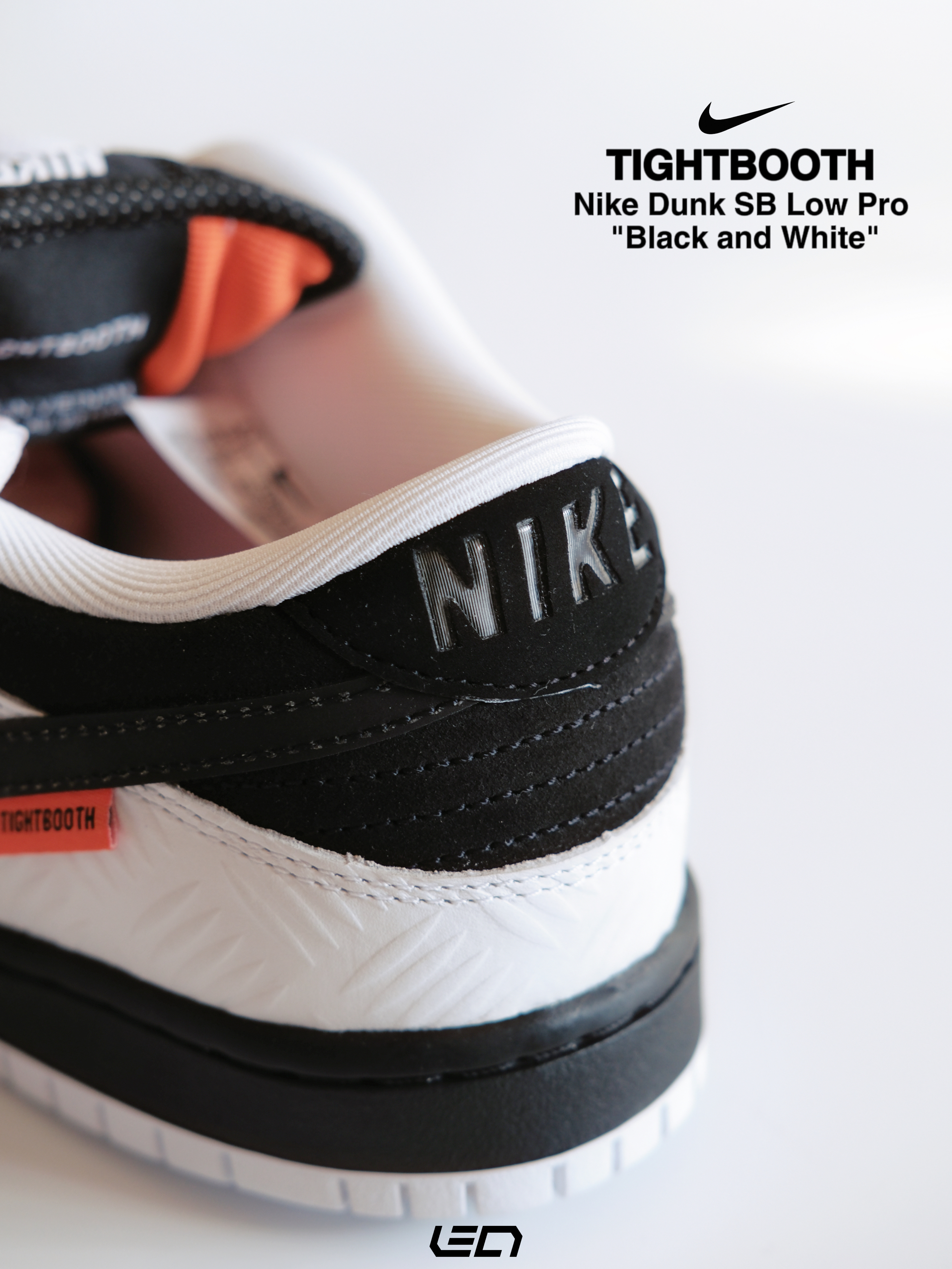 - 这双Nike Dunk SB Low Pro"Black and White"是同日本热门滑板品牌TIGHTBOOTH的联名款~ 配色是我们非常熟悉的黑白熊猫配色🐼材质方面以麂皮为底,搭配白色皮革框架设计👍🏻上方还带有压印的"划痕"纹路,营造出的视觉效果很不错。 - 设计细节上🔍 黑色的Swoosh部分,使用了特殊的反光材质,尾部则带有橙色TIGHTBOOTH标签点缀👌🏻鞋舌部分以黑色为主搭配...