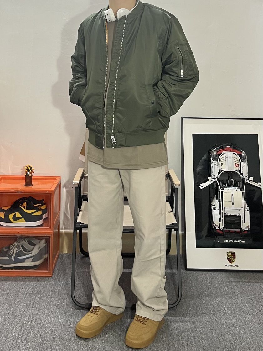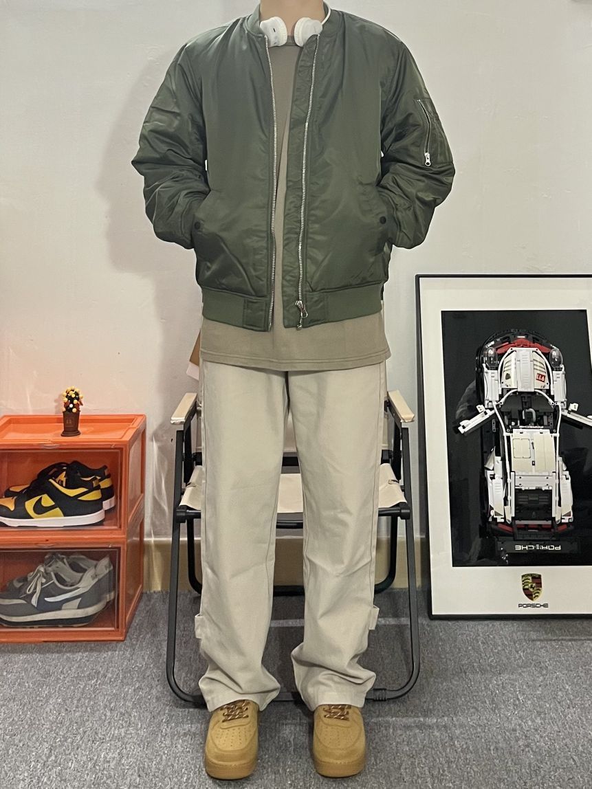 哈喽这里是pupu同鞋🏄🏻♂️ ——————————— · 👔:Jrs飞行员棒球服 军绿色飞行夹克真的显白又好看! 经典的版型完全不挑人~很帅✔️ · 👖:米灰直筒长裤 米白质感很好 宽松的版型很显瘦✌🏻 干干净净的穿搭真的很加分!! 男友穿搭男生穿得简单干净就很帅💯 白灰经典搭配也是不会过时的耐看百搭 男生选裤子想要显高裤长可以选择刚刚好 盖住鞋子的长裤 拉长身材比例非常显高❗ · 👟:空军小...