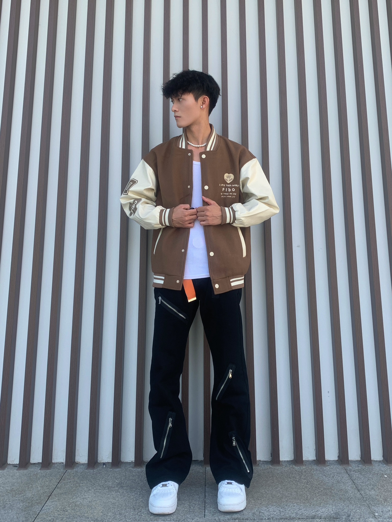 🕌秋冬通勤穿搭,休闲又百搭的棒球服搭配你必须整起来🎃 💁🏽♂️身高170|180 体重55|60接可驾驭🫵🏻 📸卡其色字母刺绣毛呢皮袖拼接棒球服➕黑色多拉链宽松微喇叭牛仔裤✅ — — — — — — — — — — — — — — — — — — 1️⃣👔 🧩FDO DIDO的秋季男女同款字母刺绣宽松卡其色毛呢皮袖拼接棒球服,宽松休闲的风格,日常通勤穿着非常的时尚百搭,上身效果特别舒适帅气,真...