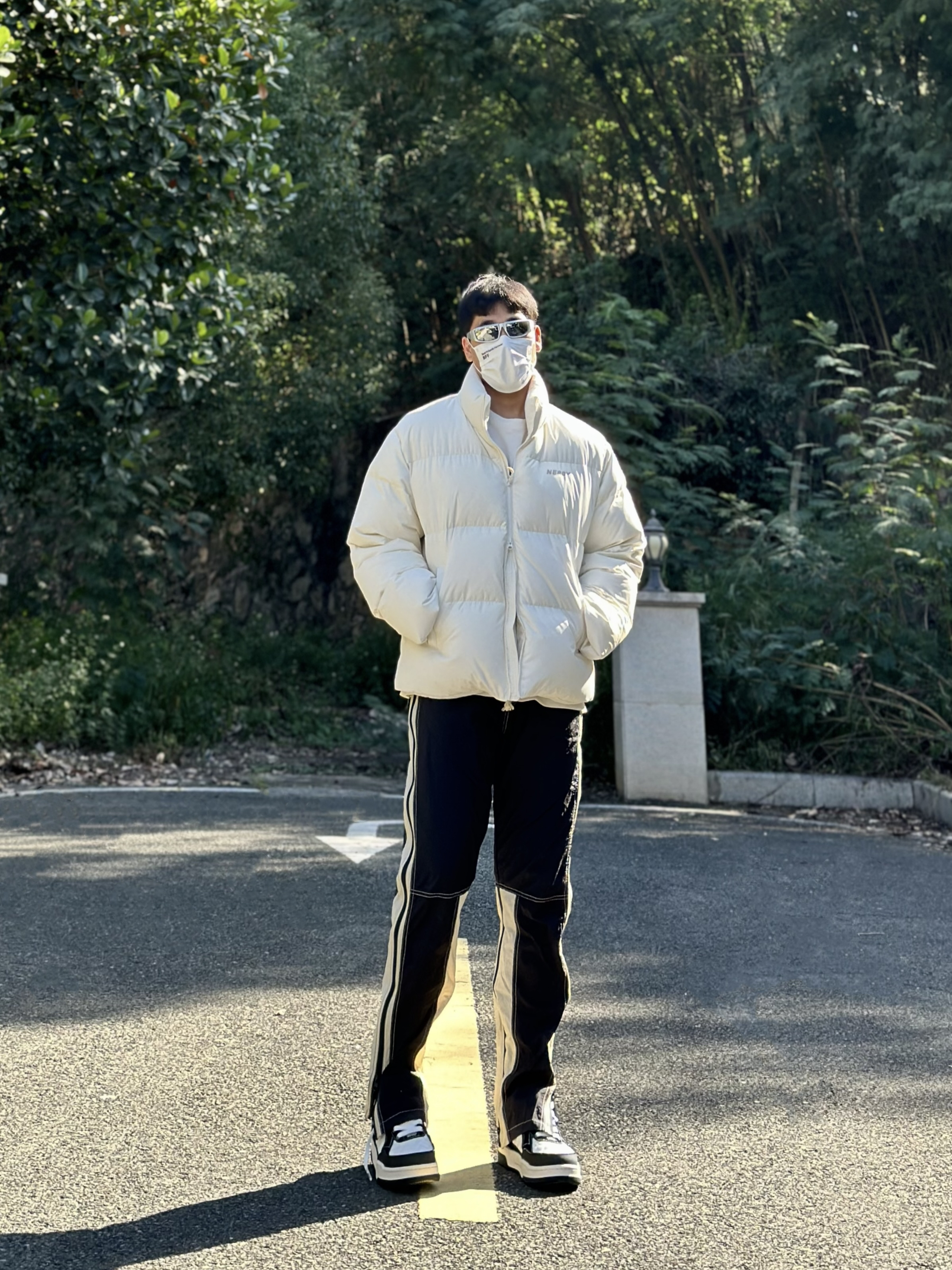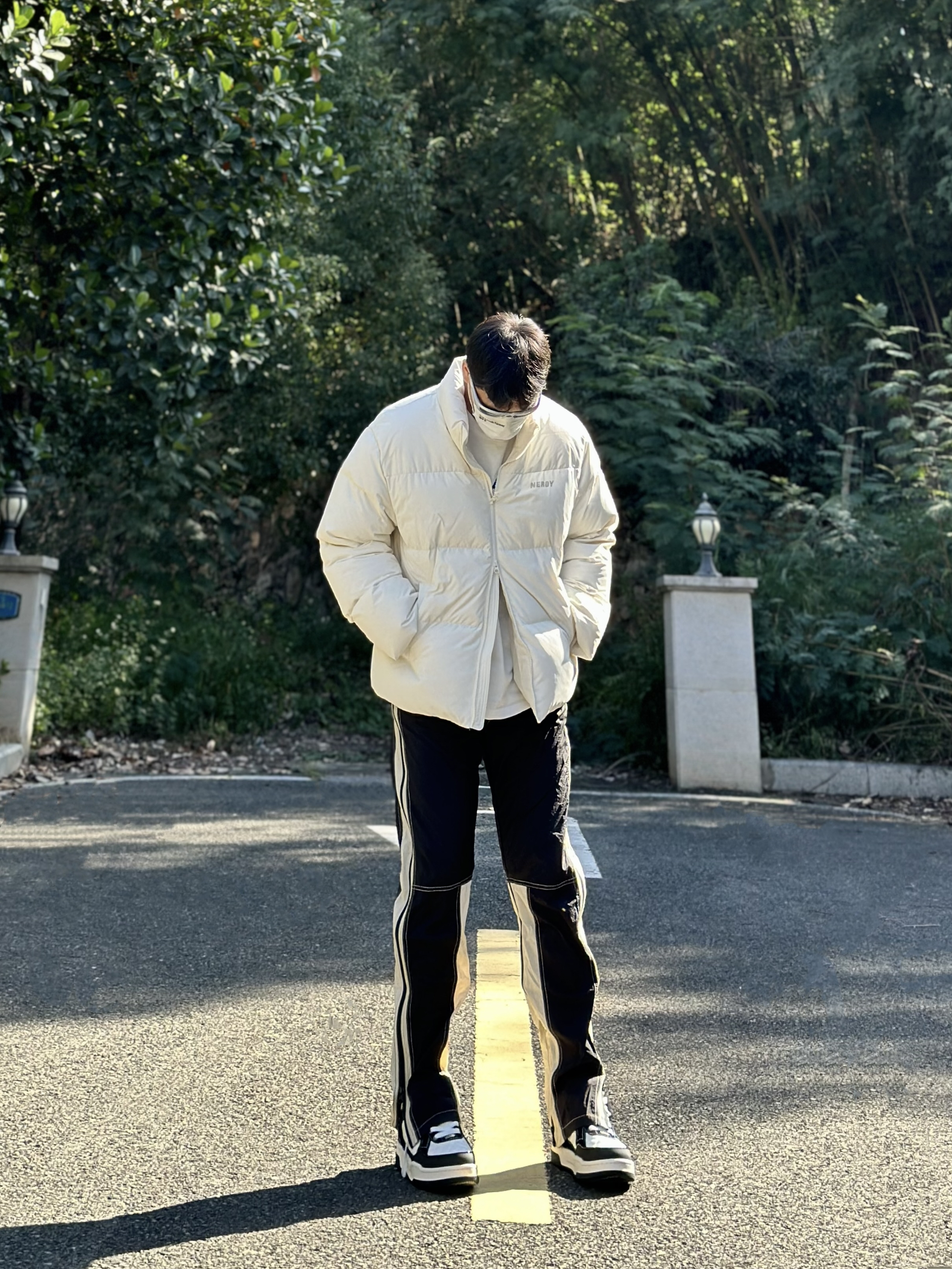 嗨咯嗨咯,大家好!我是gali呀 已经步入冬季啦!记得保暖措施哦🆒 外套是来自NERDY的经典印花羽绒服, 上身版型还是比较贴身舒适的~ 简约百搭是今年的主色调cool 裤子休闲百搭更适合日常~ 上脚的是来自good的新款华夫格板鞋✅ 脚感相比之前的面包鞋提升了很多, 鞋子质感跟颜值也是不必多说的🥰