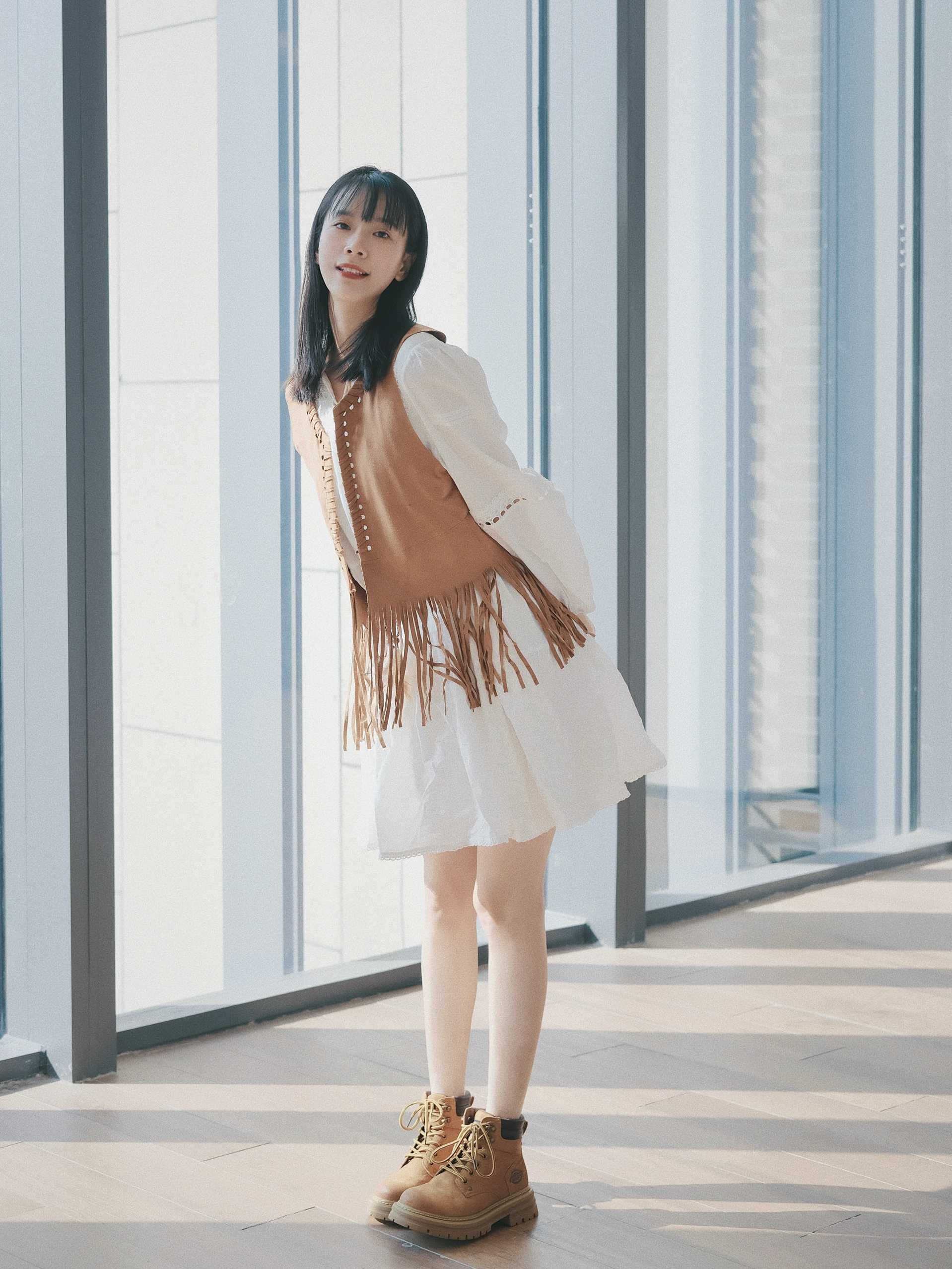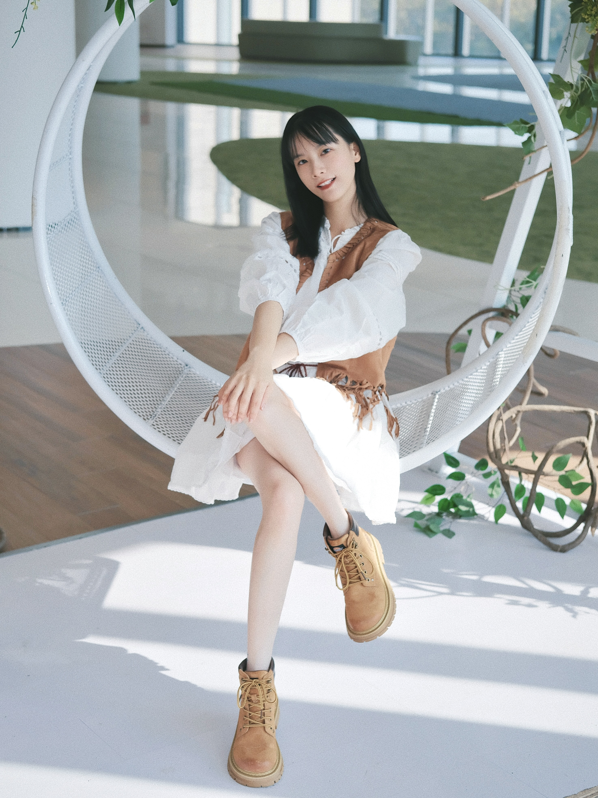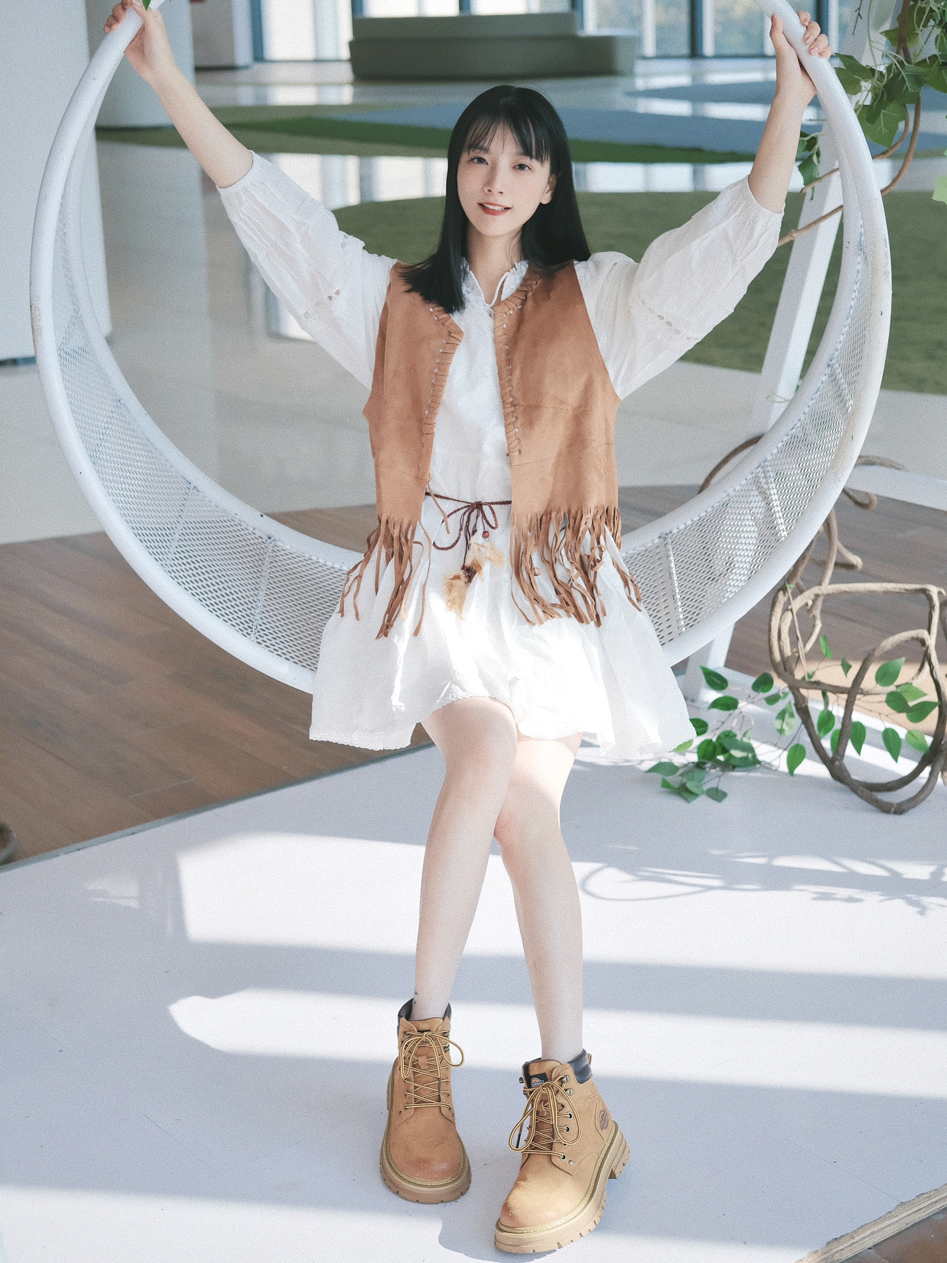 近段时间特别钟情白色穿搭 各类白色系单品都想收入囊中 白色连衣裙搭配小黄靴 再搭同色系流苏小背心 帅气里面又带了些女性化的柔美 增高鞋底可以说是个子娇小女生福音啦 视觉上拉长腿部线条 更显苗条身材 上脚特别轻盈 穿着毫无压力 走了一天也没任何不舒服哦 甜酷美少女们赶紧去get 一双吧 ----------------
