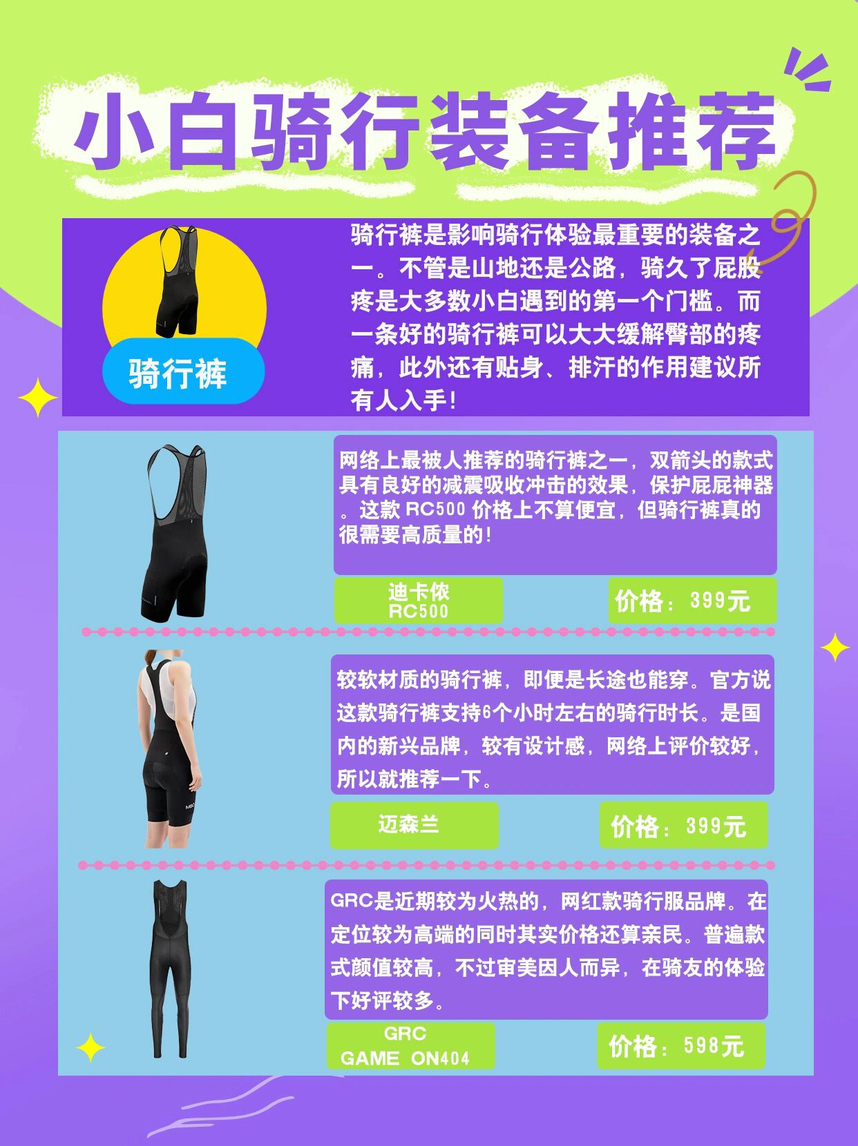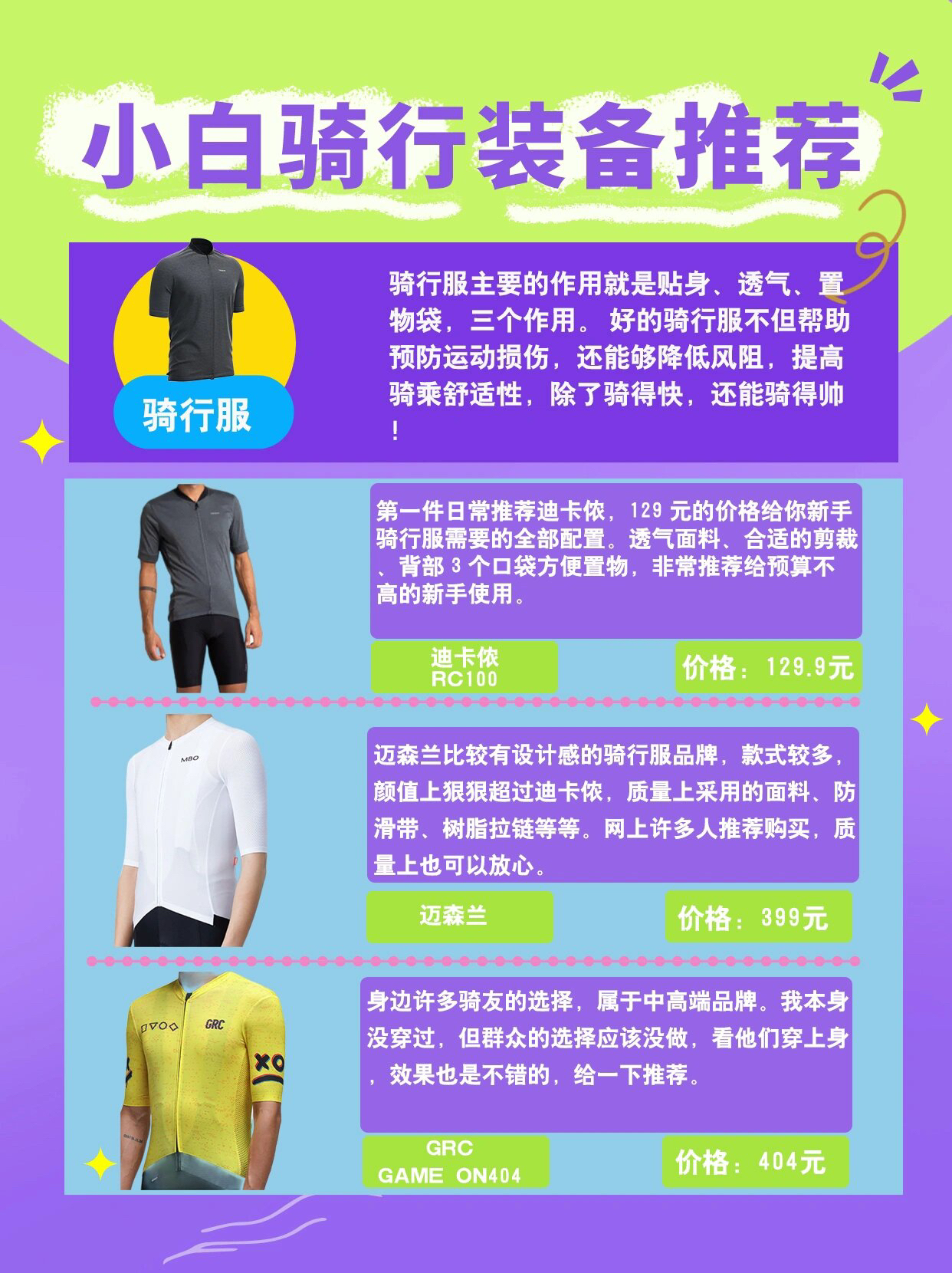 骑行科普|小白骑行装备品牌推荐,建议收藏!|||在上一篇骑行装备科普中,我把新手必备装备等级进行了排序,分别为 1️⃣必买级:骑行头盔、水壶&水壶架 2️⃣入门级:骑行手套、骑行服、骑行裤、车灯 3️⃣专业级:锁鞋&锁踏、码表、骑行眼镜 ps:对排序有疑问的可以看我装备篇的排序依据。 🔻🔻🔻🔻🔻🔻🔻🔻🔻🔻🔻🔻🔻🔻🔻🔻 而这一篇笔记以必买优先级较高的人身装备进行推荐安利,其中...