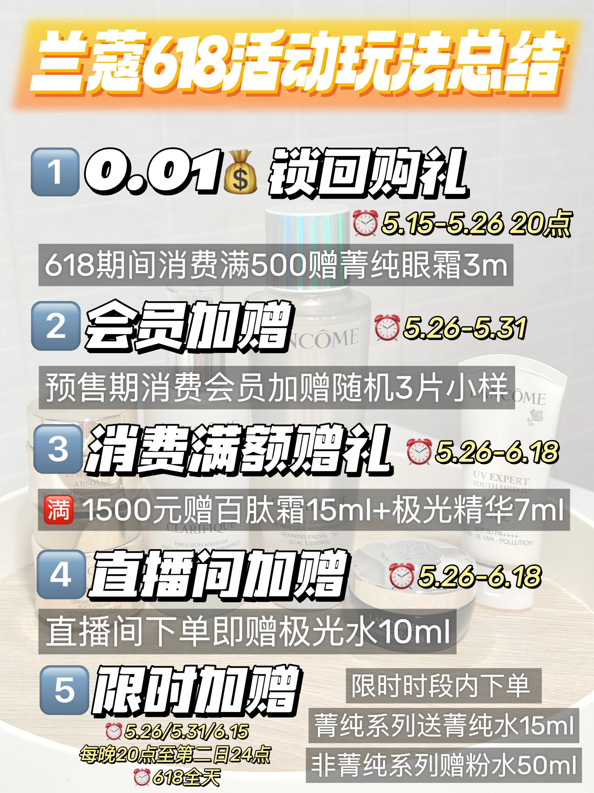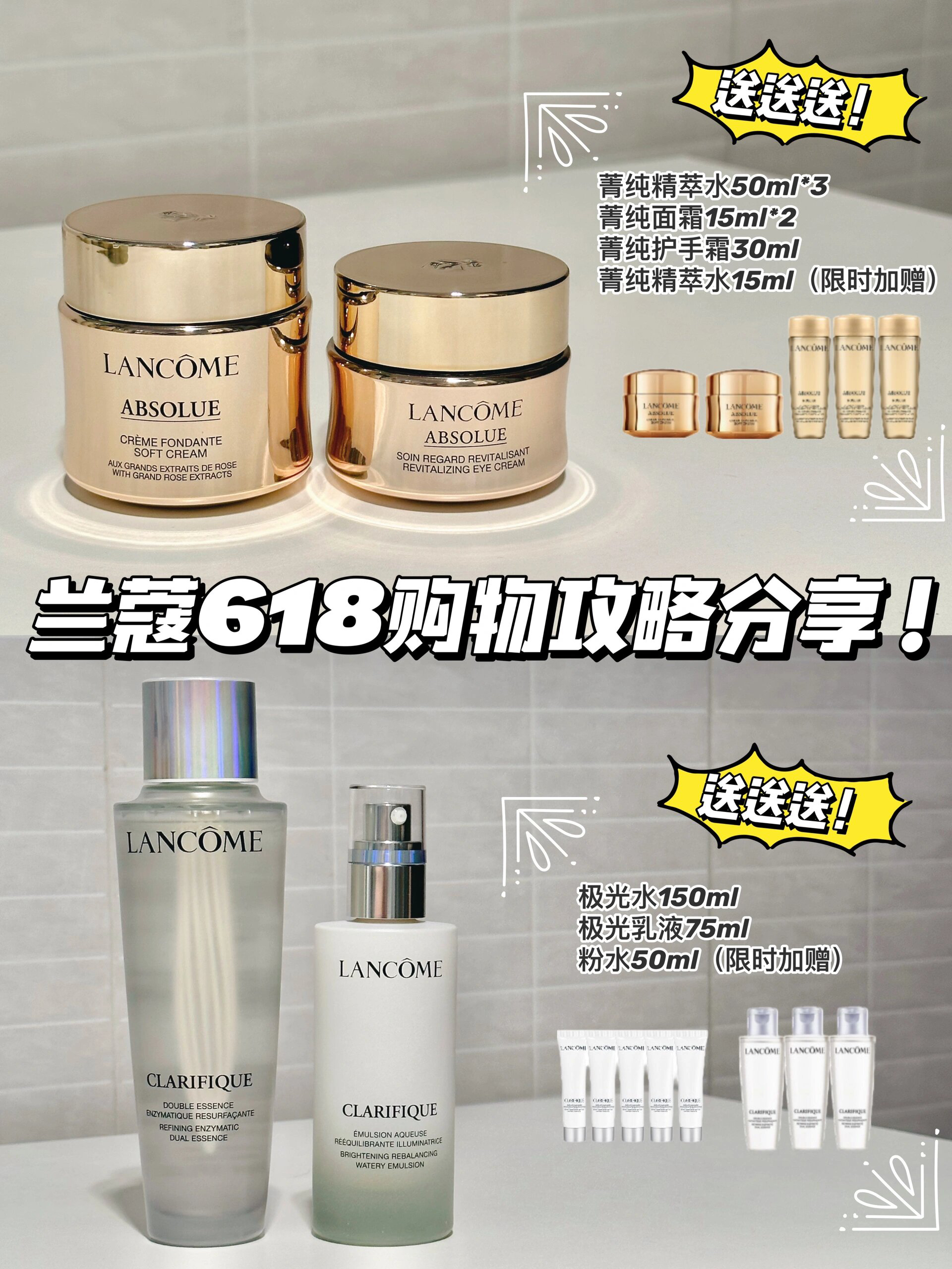 马上618大促就开始了!又该剁手了! 这种大促怎么能少了囤护肤品, 作为兰蔻老粉!当然是不能错过了! 简单看了一下活动机制!太划算了! 各种买赠相当于买一送一了好吗~ 囤这一次用到双11都没啥问题 简单总结了一下618购物攻略!姐妹们快来抄! - 🌟菁纯系列 菁纯眼霜+菁纯面霜!抗老人必备! 是真的能抗老淡纹的那种!巨好用! 如果有抗老需求的姐妹入手这对准没错! ➡️买:菁纯眼霜20ml+菁纯面霜...