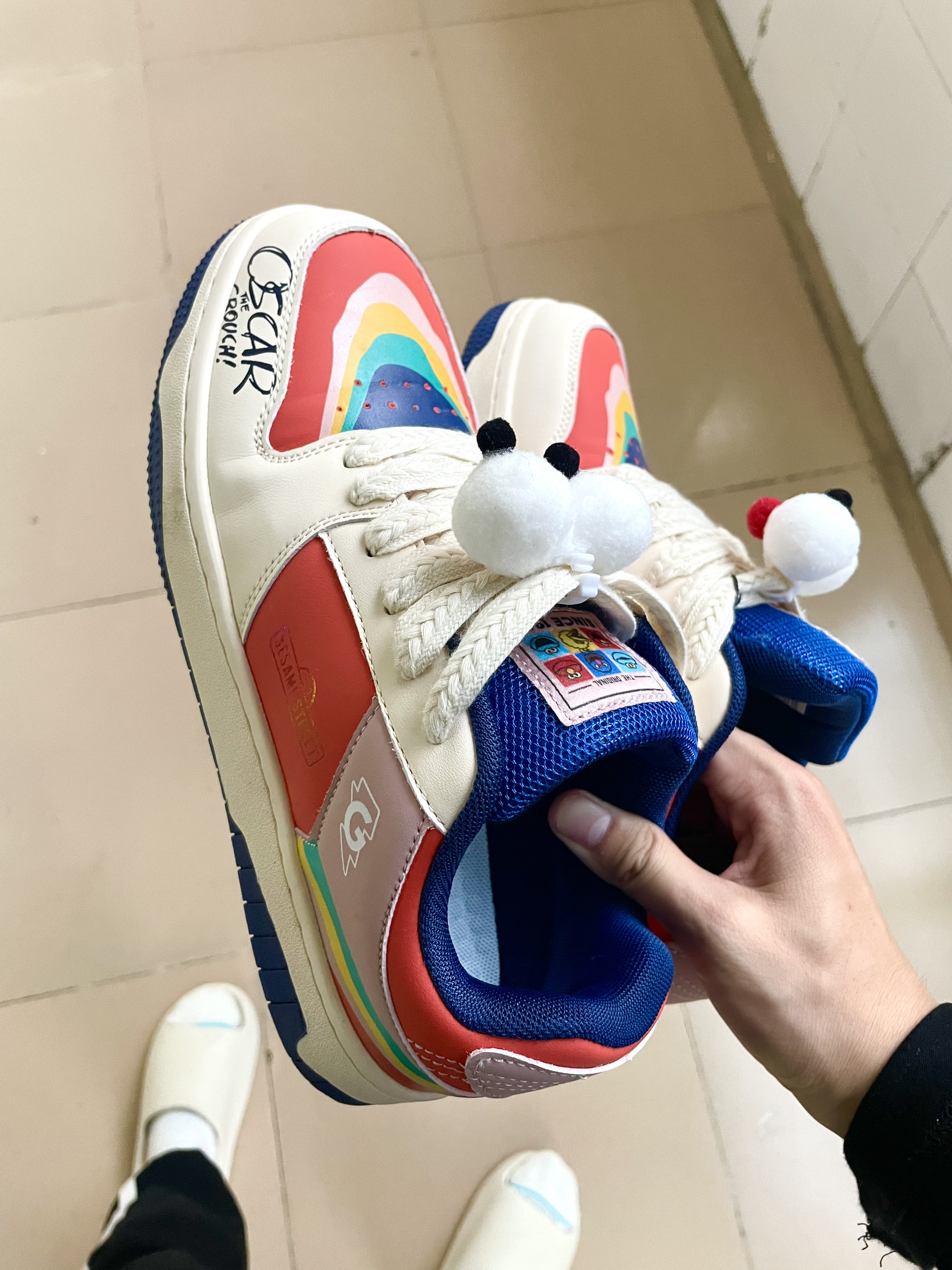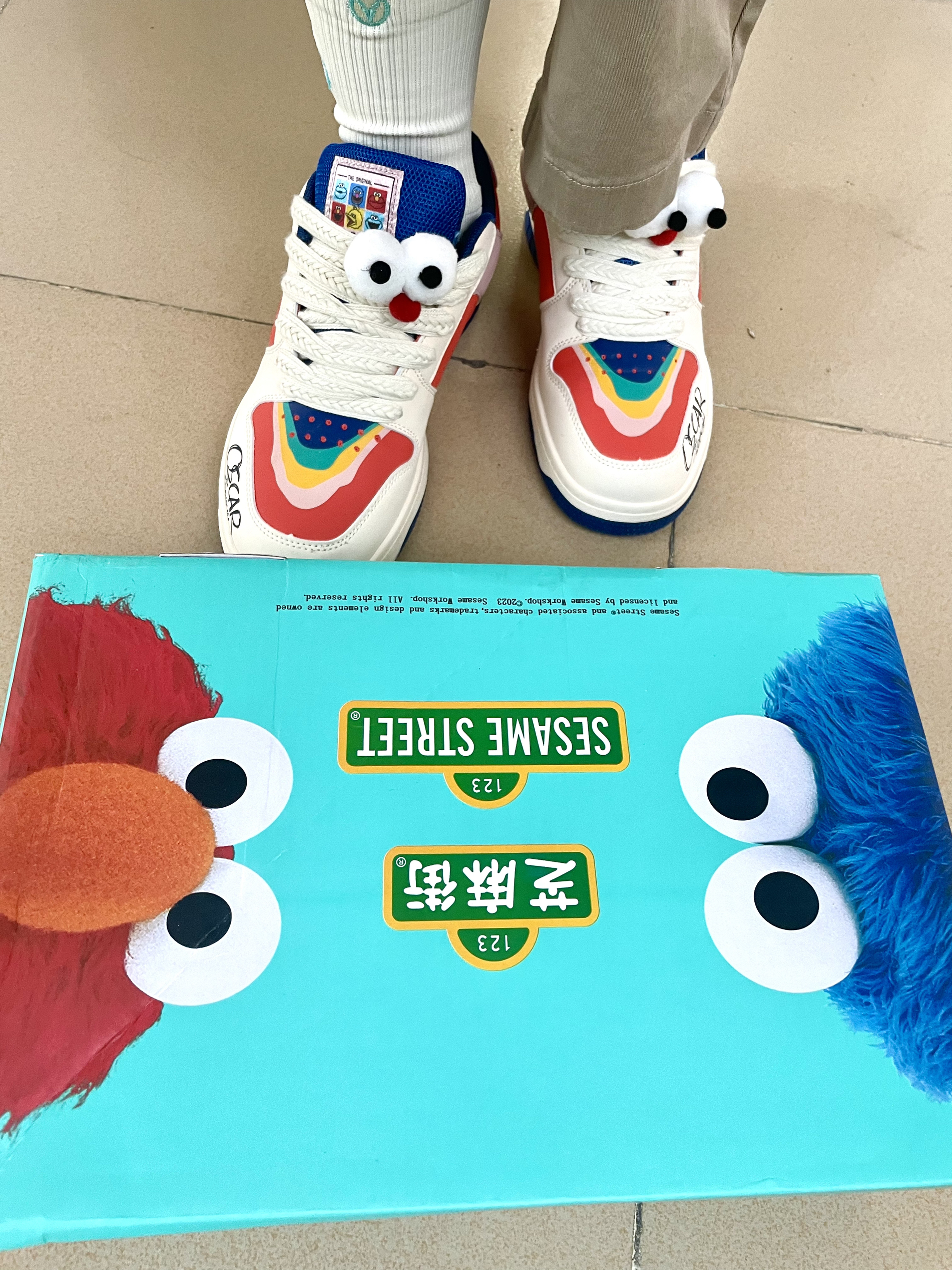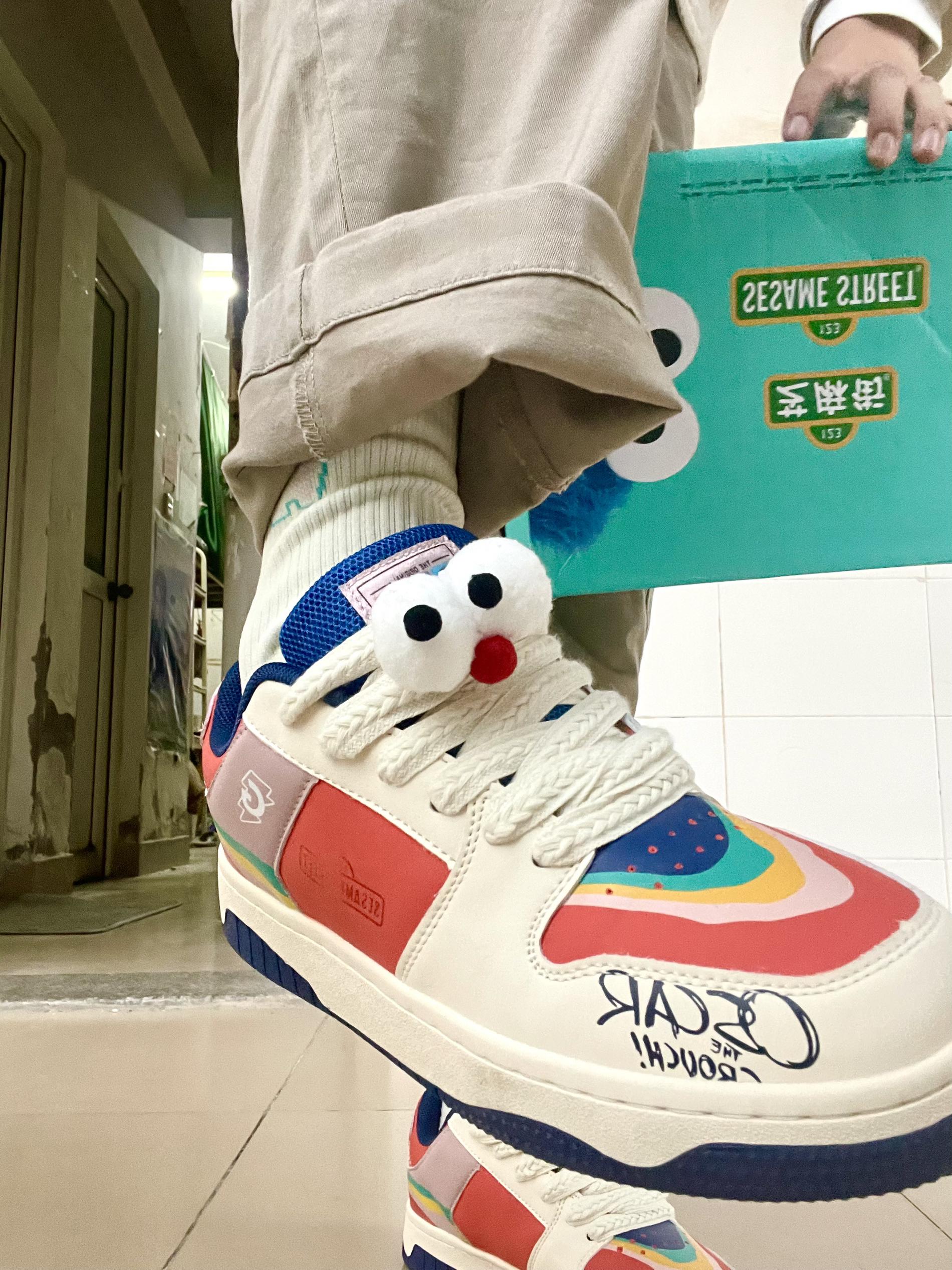 哈喽!各位宝贝们👋,今天我要给大家分享一个我近期入手的潮流单品—芝麻街皮革潮流休闲鞋👟!这款鞋真的让我疯狂,一穿上它,我的少年感瞬间就提升了好多倍! 这款鞋的设计真的太独特了,透气的鸳鸯面包造型,加上中国红的颜色,鞋带部分我搭配了两个小眼睛👀,真的是又可爱又百搭!无论是在宿舍走廊拍照,还是出门逛街,这款鞋都能让你轻松成为焦点✨。 我还搭配了优衣库的乳白色复古风牛仔夹克外套🧥,还有一条弹力棉质松紧九...