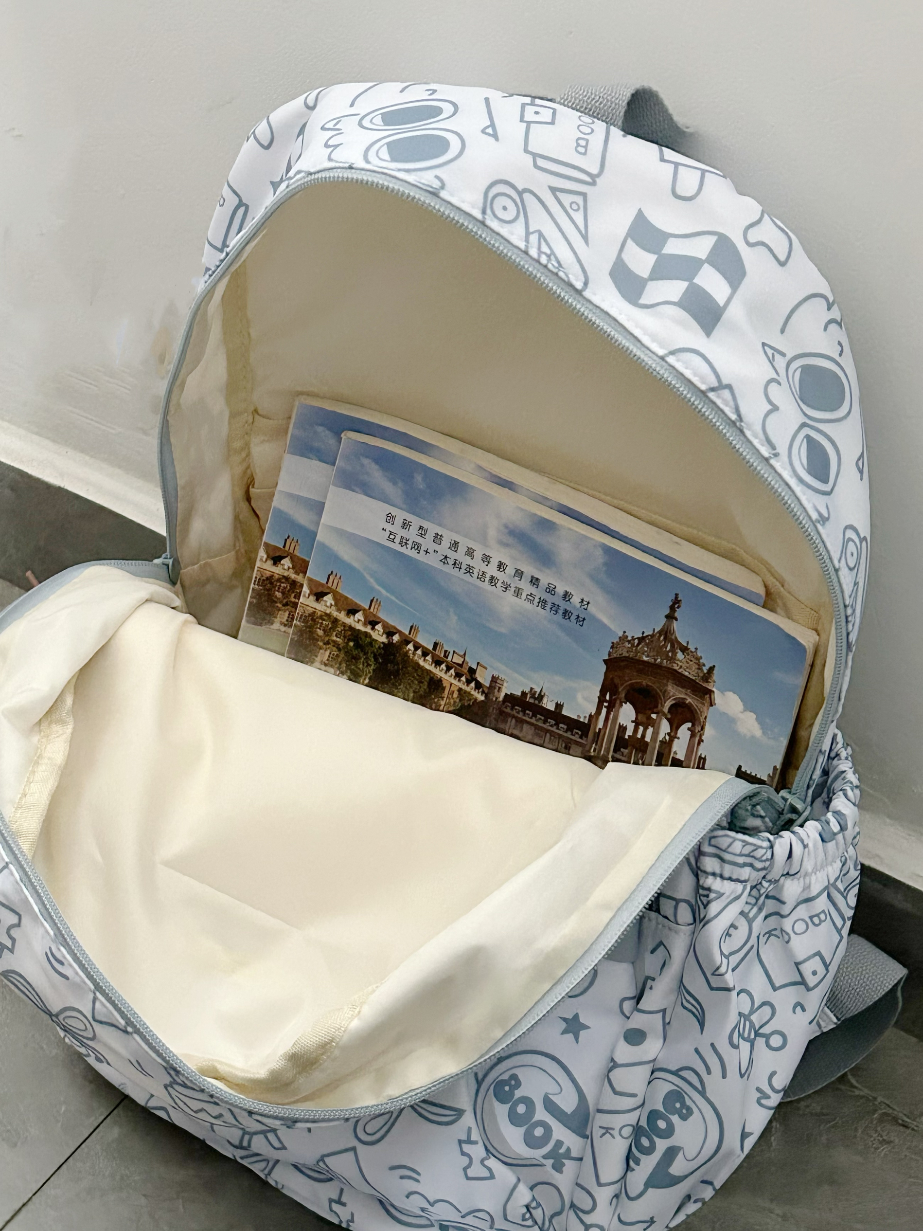 挖到宝藏书包啦 今天背什么 今天背sisea家的书包 这款是蓝色 小清新的感jiao 涂鸦设计搭配 时尚乐趣感十足哈😻 日常或者通勤还是上学 都🉑 容量大电脑也能装下呀 书包质感很好摸着很舒服呀 学生党快来一起 get