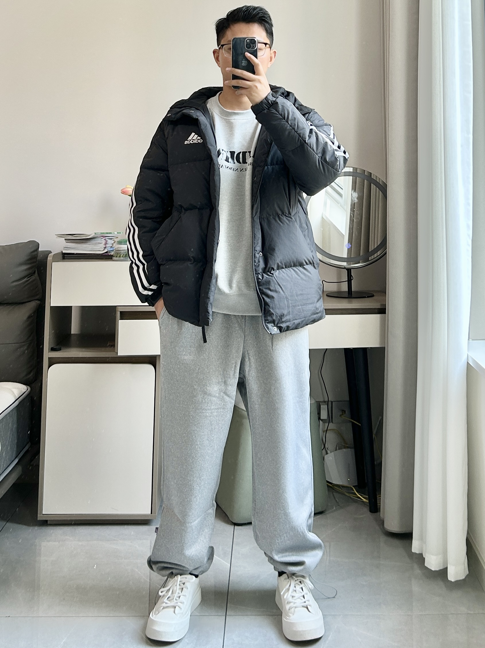 本篇笔记关联了【彭于晏同款】adidas 3ST PUFFY DWN J灰鸭绒600蓬防风连帽外套 H20754 黑、准者 加绒抽绳美式训练工装阔腿直筒束脚收口运动长裤 Z120411666 花灰/加绒等商品,为用户提供真实的使用体验和购买参考。