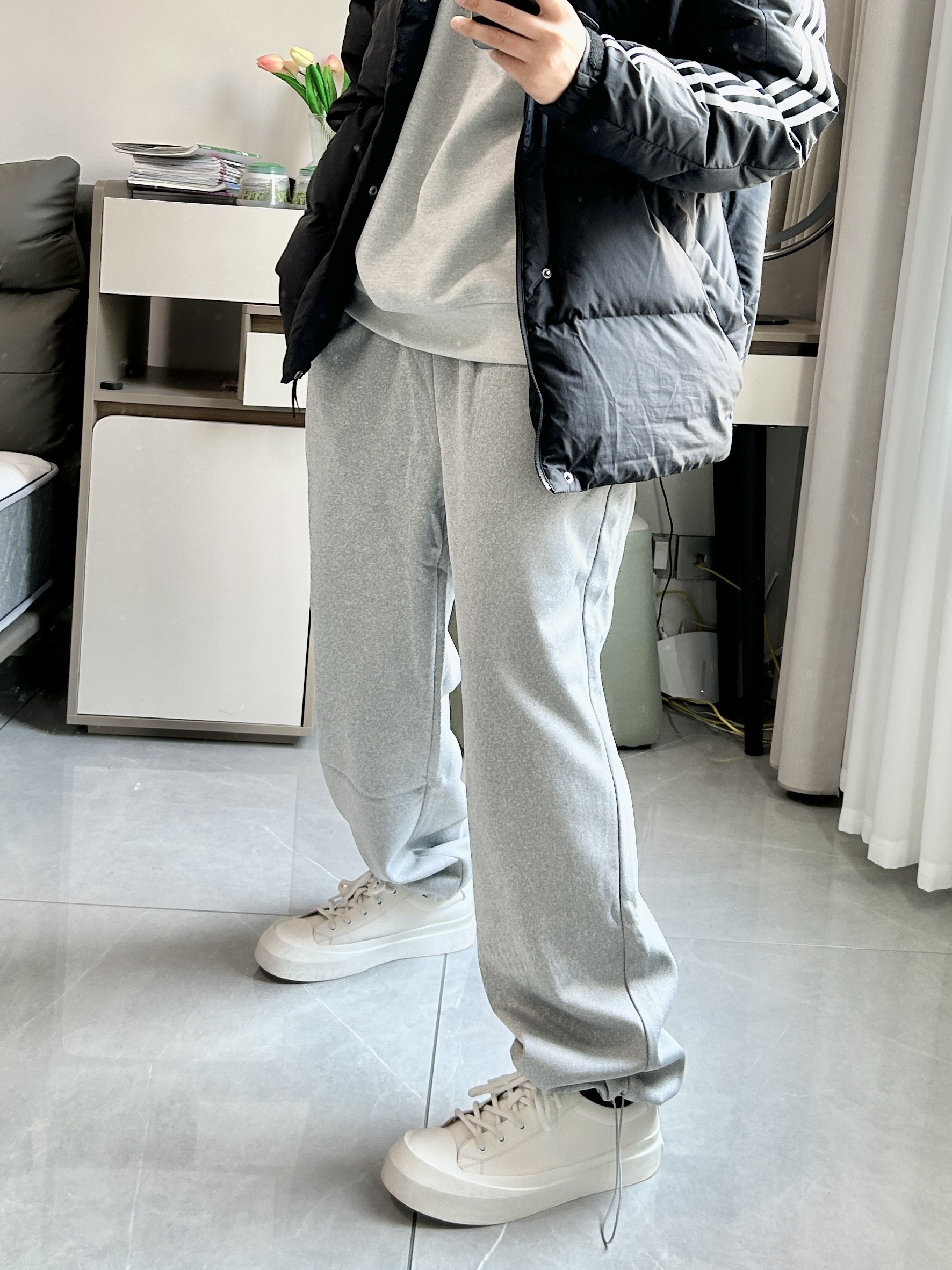 今日上身一天宽松舒适的加绒运动裤 准者家这款运动裤真的太暖和了 宽松版型 冬季运动不要太舒适 日常出行,运动都可
