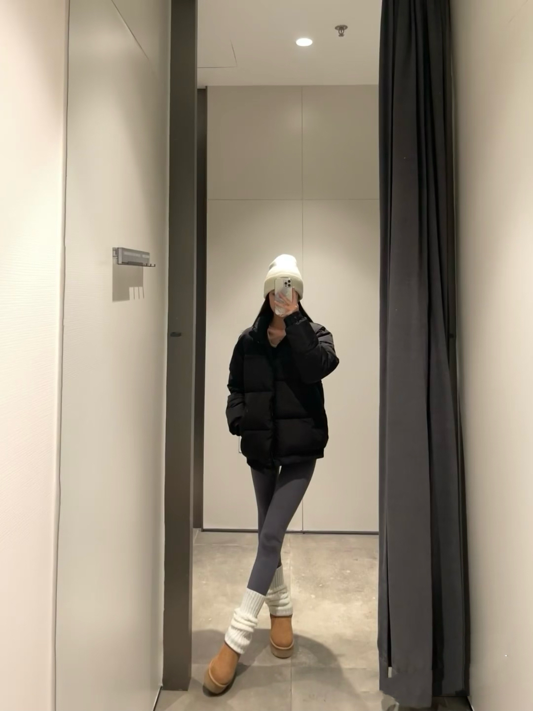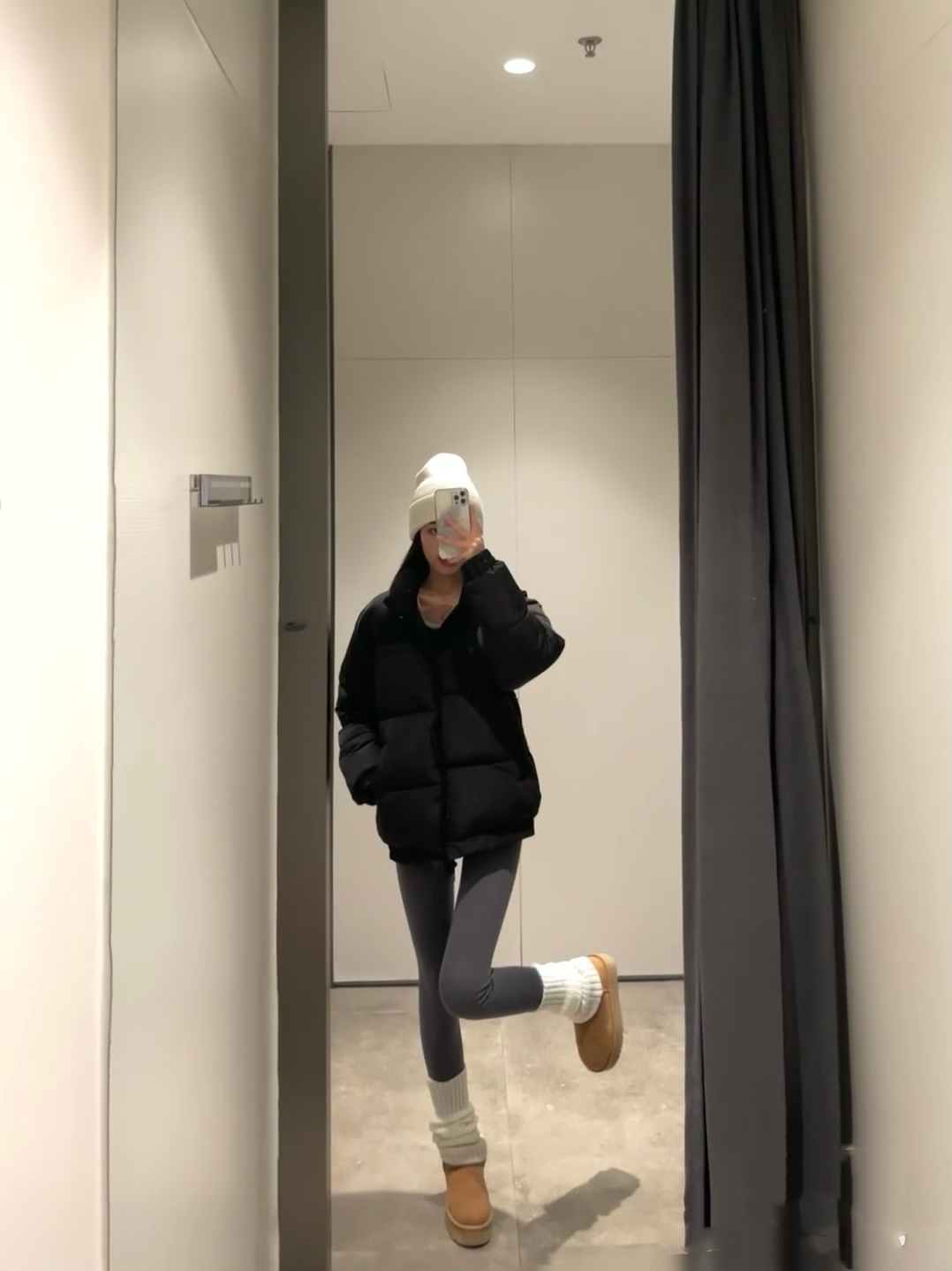 谁懂黑色 🖤穿鲨鱼裤不会尴尬的魅力衣服长度刚刚好 搭配袜套和雪地靴冬天就这么穿 保暖还舒适 厚底雪地靴+袜套+鲨鱼裤真的太显腿直腿细了!!! 厚底雪地靴大概增高四厘米,直接就是一个拉长 腿腿的效果,美女们快冲🤩🤩