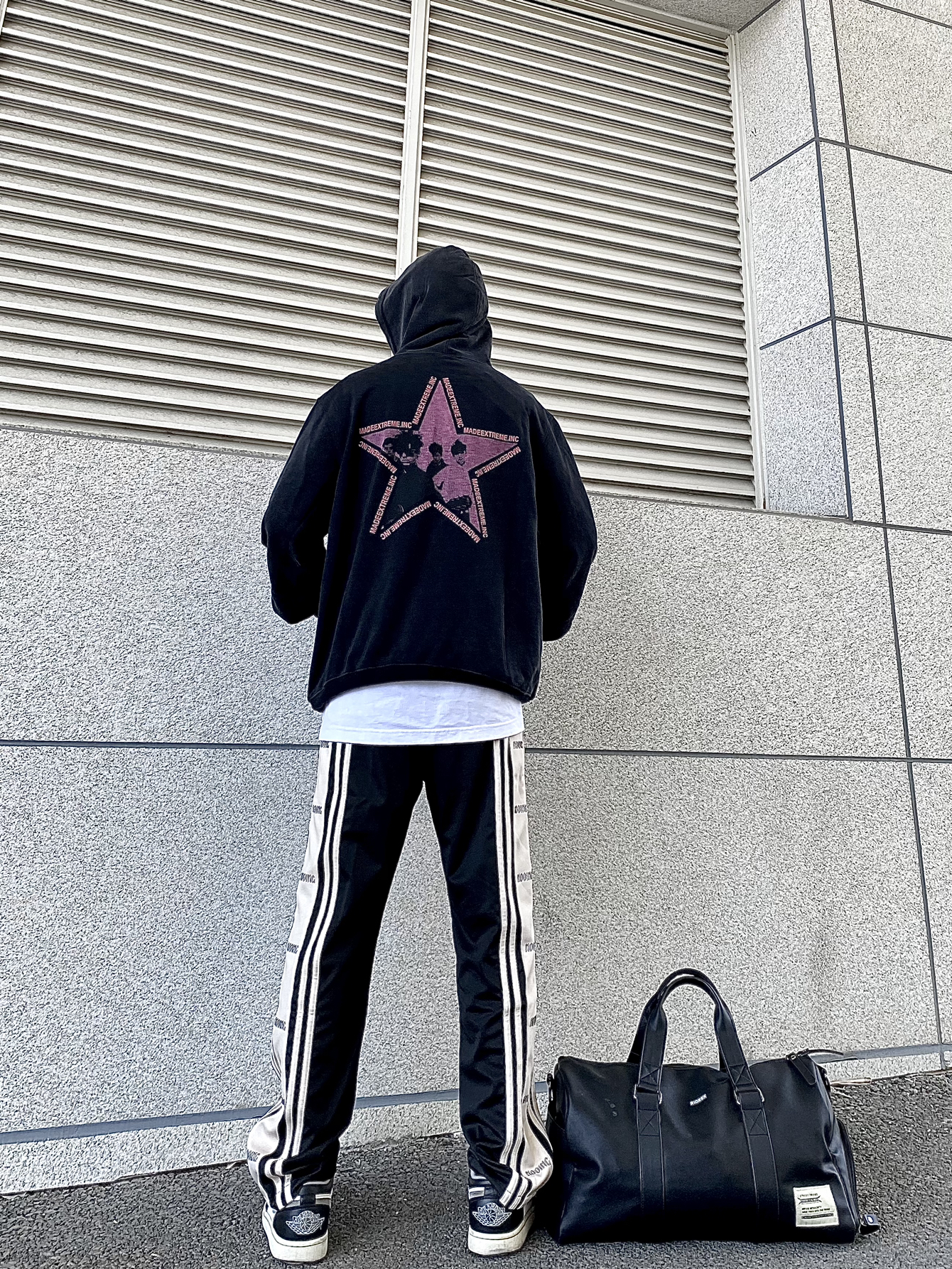 本篇笔记关联了NOOING美式直筒运动裤侧边条纹印花字母侧边字母印花织带休闲长裤 男女同款 黑色、RULE BY ME 摇滚乐队印花水洗做旧连帽卫衣 男女同款 RBM-298 黑等商品,为用户提供真实的使用体验和购买参考。