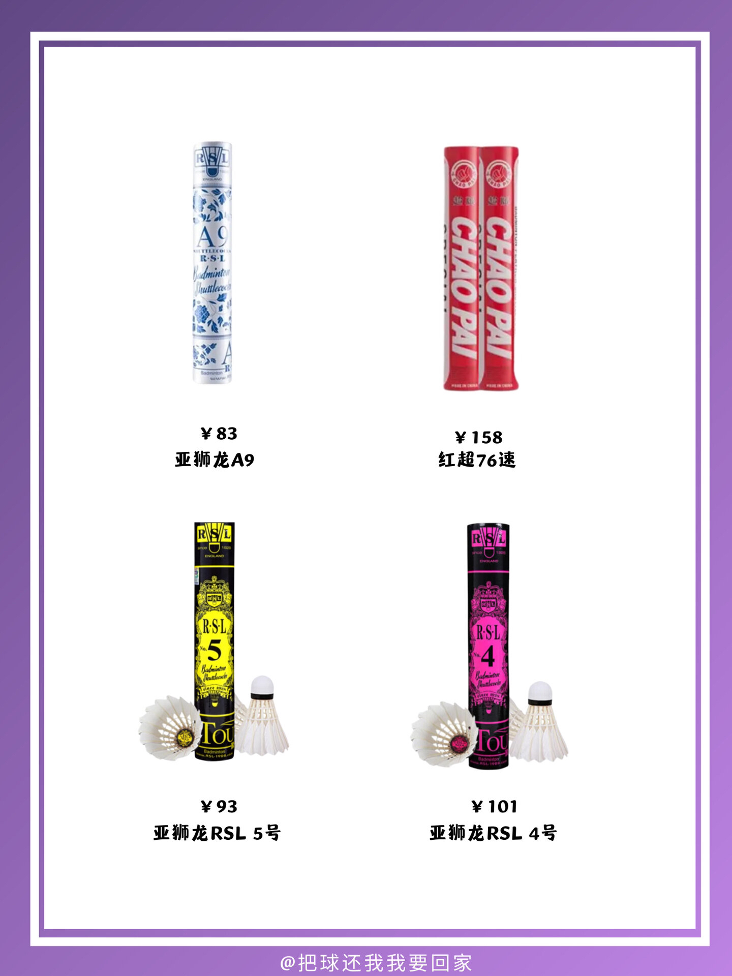 羽毛球怎么选?全价位30-100元!建议收藏‼️|||入门选手这两款:RSL 06 、胜利粉红。 中端选手这两款:RSL 05 、胜利 黄金 。 🏸️羽毛球分为五大类 全圆型:羽毛球羽重心集中在球头上,击球感非常好,适用于比赛、专业、业余高手使用。 大方型:兼顾耐打和手感,是目前市场畅销的羽毛球种类。 中方型:偏耐打,初学者用还是不错的。 小方型:很耐打,手感就不是很好,不过性价比超高 驼背型:超...
