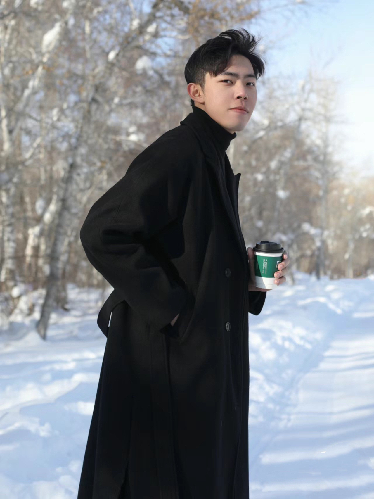不知道的🤷还以为在拍韩剧呢 黑色大衣穿搭真的永远不过时💫 这是我在新疆阿勒泰拍得一组穿搭 简约又好看‼️ 🎬没有过分装饰自己 穿上黑色大衣 🧥 手里捧着一杯热咖啡 马上就有韩剧的感觉💯
