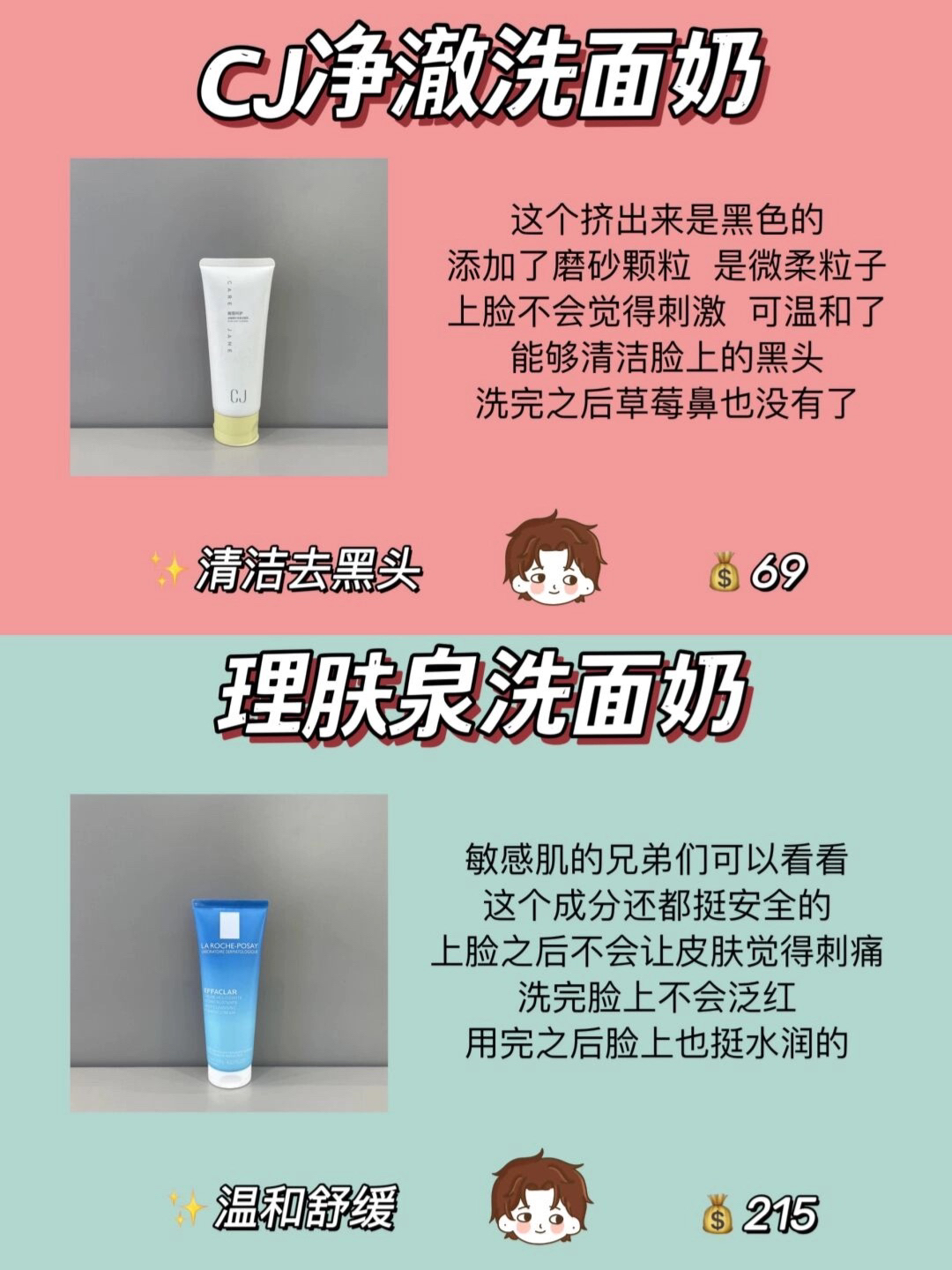 本篇笔记关联了CJ/麦科勒姆 竹炭清洁滋润洁面乳 100g、laroche posay/理肤泉 特安洁面泡沫洗面奶 补水保湿面部清洁 125ml等商品,为用户提供真实的使用体验和购买参考。