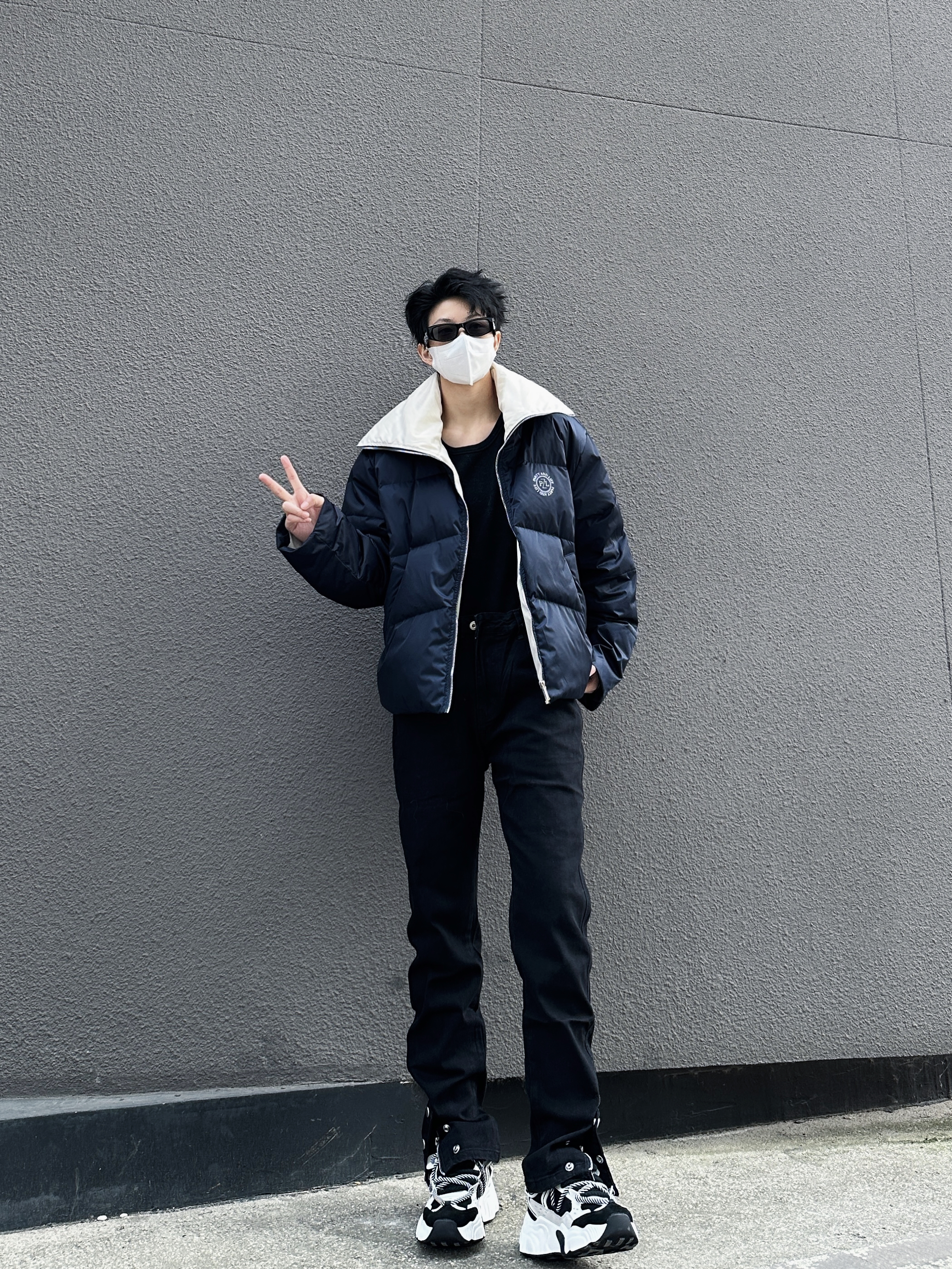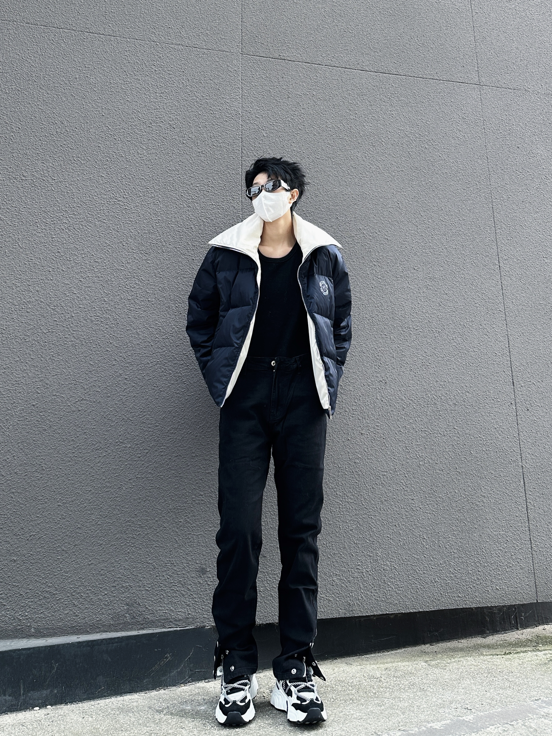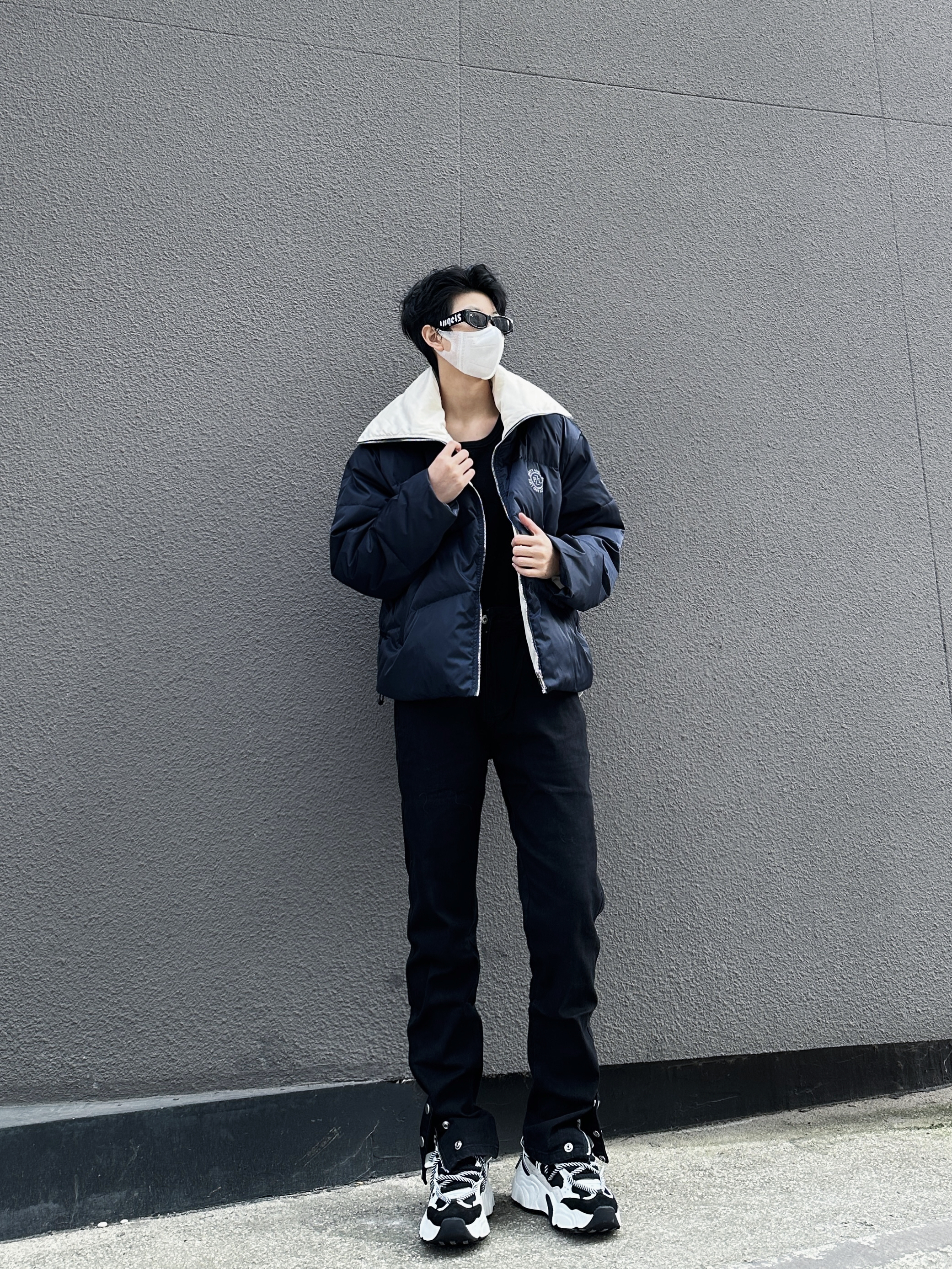 hello家人们 这里是拐子 今天拐子LOOK: 翻领羽绒服➕高街牛仔裤➕老爹鞋➕围脖 今天拐子分享穿搭显高秘籍 上短下长 从视觉拉长头身比 首先上衣可以选择短款 可以完全展示自己的腿长 裤子选择低档或者高腰的版型 提升腰线 鞋子尽量选择和裤子同样色系的 低中帮的 记住以上几点 显高穿搭你就会了一半~ 今天拐子推荐的裤子 美式高街风 这种窄版低档的裤子 会更显腿长腿细 说它是显瘦牛仔裤版型...