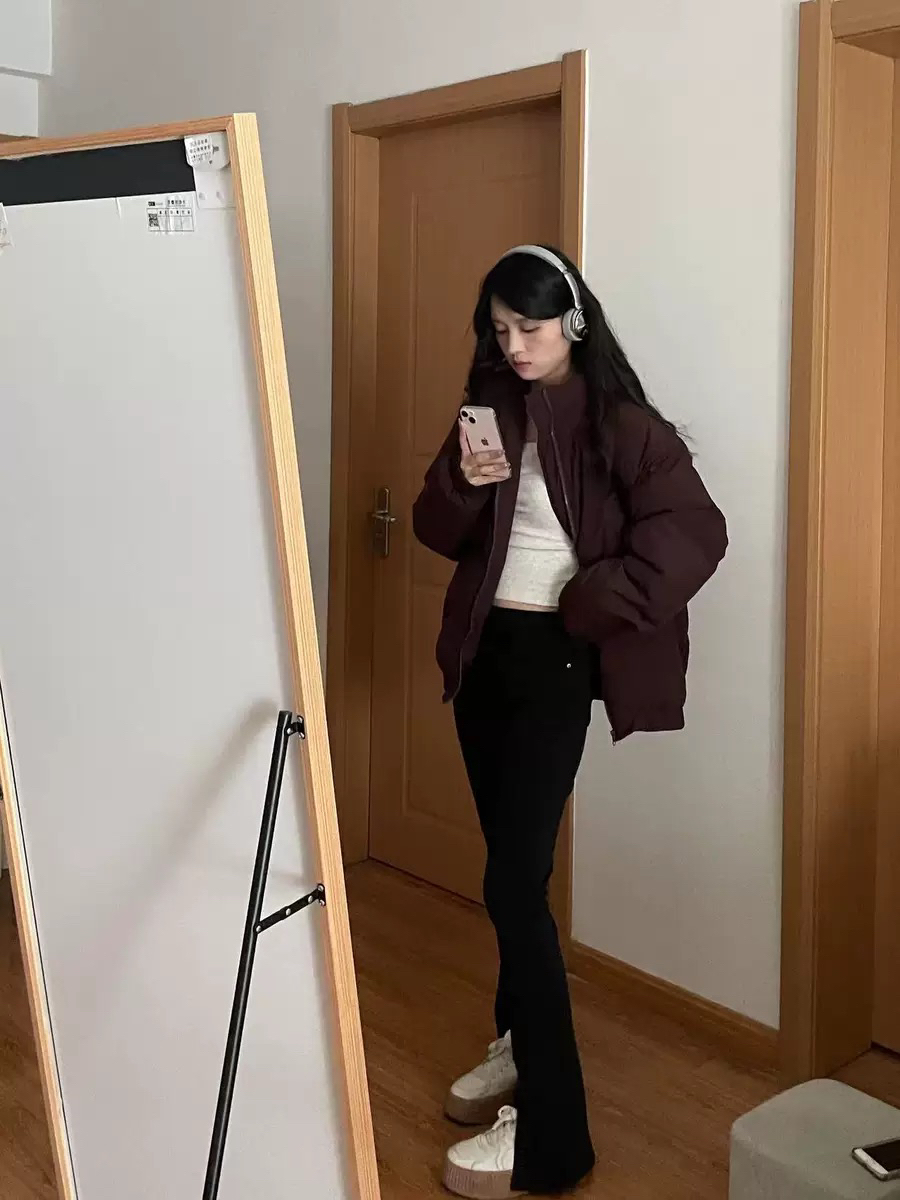 酒红色♥️真的是一直以来著名的显白颜色!可是款式不对又容易显老!这个棉服真的是年轻韩范儿的款式啦!格子的碰撞一整个爱住好嘛‼️完全不单调不老气! 整个衣服暖呼呼的啦!厚实的但是不会很重!俺觉得超舒服!今天简直冷的一匹😉这个衣服上身巨暖和!包裹的严严实实!最重要脖子不会冷!料子也是不容易脏的! 宝子们!如果新年不知道穿啥子不妨来一件酒红色的棉服吧😜喜庆又显白!又很大方!哈哈哈 穿上整个人心情都好啦!